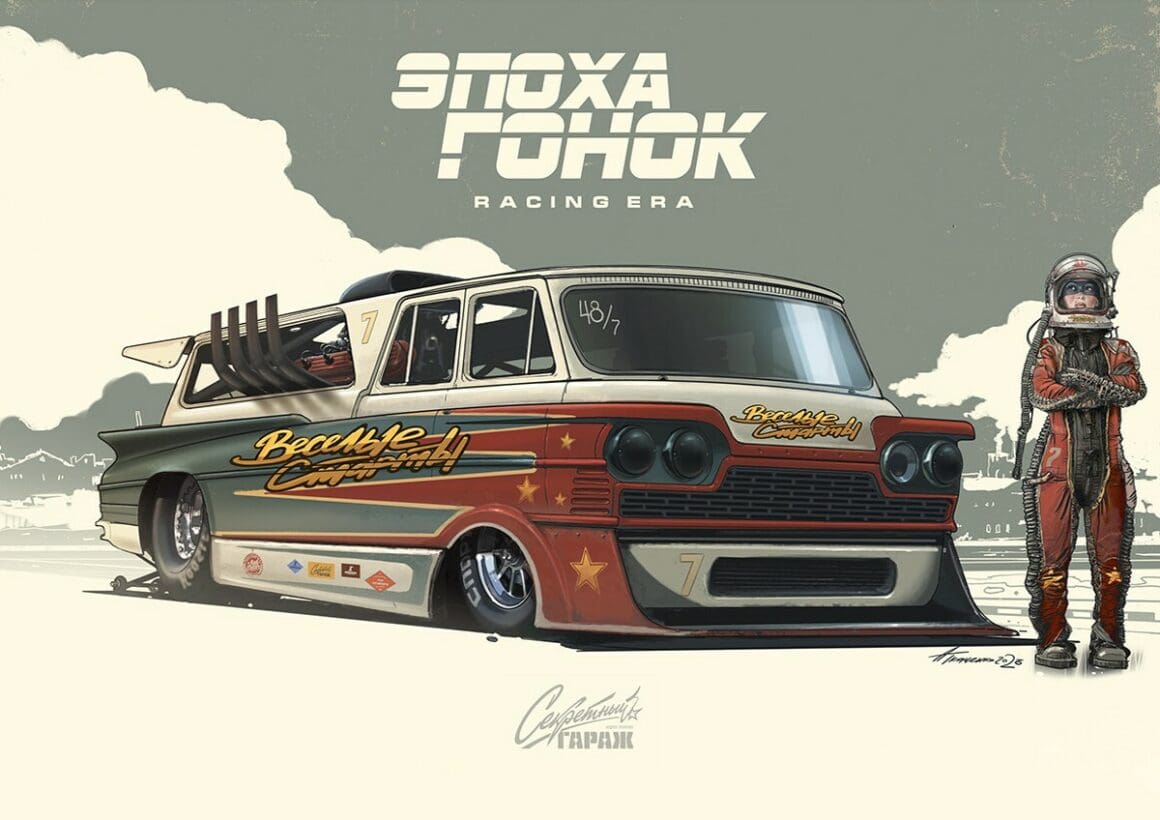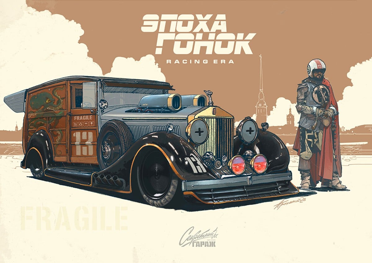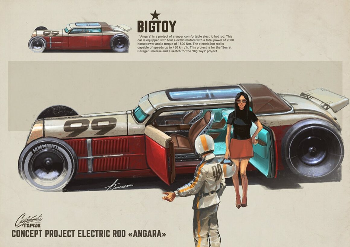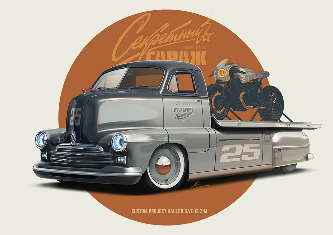 Il a dirigé la construction de fusées en URSS. Sur toutes les photos le présentant, on y voit une table discrète recouverte d’une simple nappe, un téléphone et une lampe : “Aujourd’hui, les oligarques ne font que vendre ce qu’ont construit nos prédécesseurs : l’héritage de nos héros”, déplore Vladimir. Le plus important, selon lui, est de faire comprendre à la nouvelle génération des designers Russes qu’à elles seules, les ventes et consommations ne mènent nulle part : il faut impérativement proposer du nouveau et aller de l’avant… Ce sera après l’atomisation de l’Ukraine.. Voilà… Reste à vous souligner que les illustrations de cet articles sont de Evgeny Grigoriev, Russe sans complexe, artiste et inventeur, passionné de Chopper’s et de Hot Rod’s…