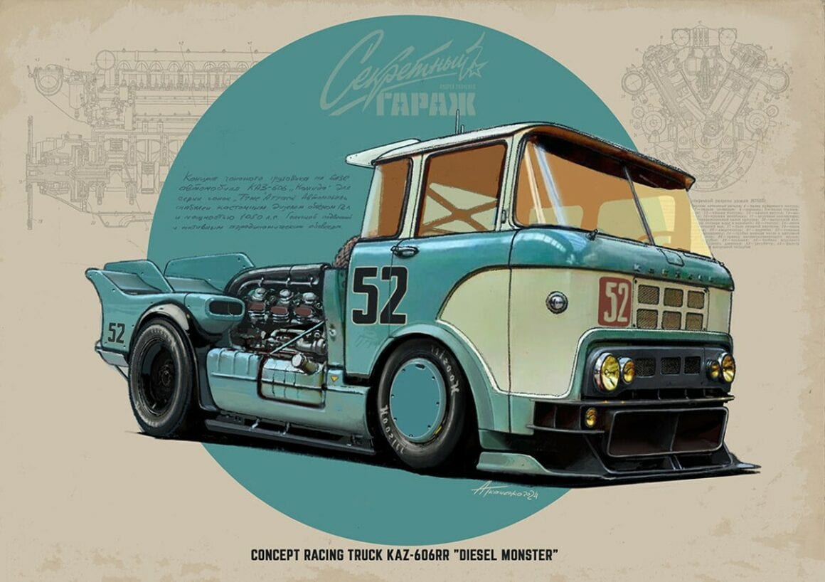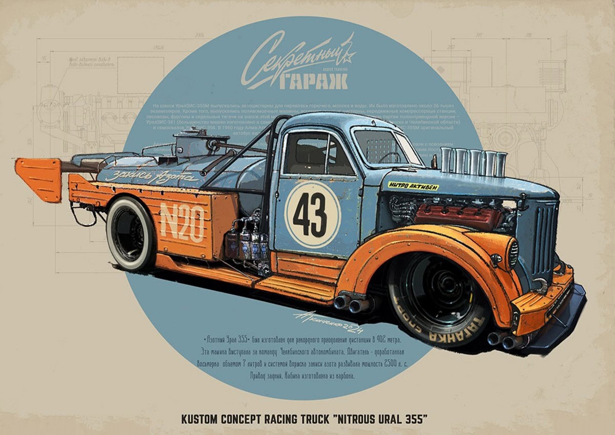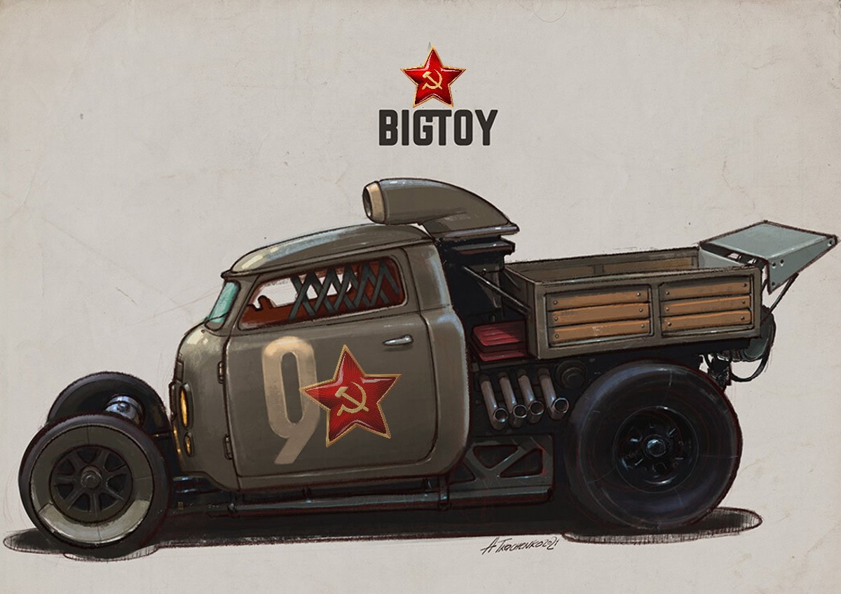 Il a dirigé la construction de fusées en URSS. Sur toutes les photos le présentant, on y voit une table discrète recouverte d’une simple nappe, un téléphone et une lampe : “Aujourd’hui, les oligarques ne font que vendre ce qu’ont construit nos prédécesseurs : l’héritage de nos héros”, déplore Vladimir. Le plus important, selon lui, est de faire comprendre à la nouvelle génération des designers Russes qu’à elles seules, les ventes et consommations ne mènent nulle part : il faut impérativement proposer du nouveau et aller de l’avant… Ce sera après l’atomisation de l’Ukraine.. Voilà… Reste à vous souligner que les illustrations de cet articles sont de Evgeny Grigoriev, Russe sans complexe, artiste et inventeur, passionné de Chopper’s et de Hot Rod’s…