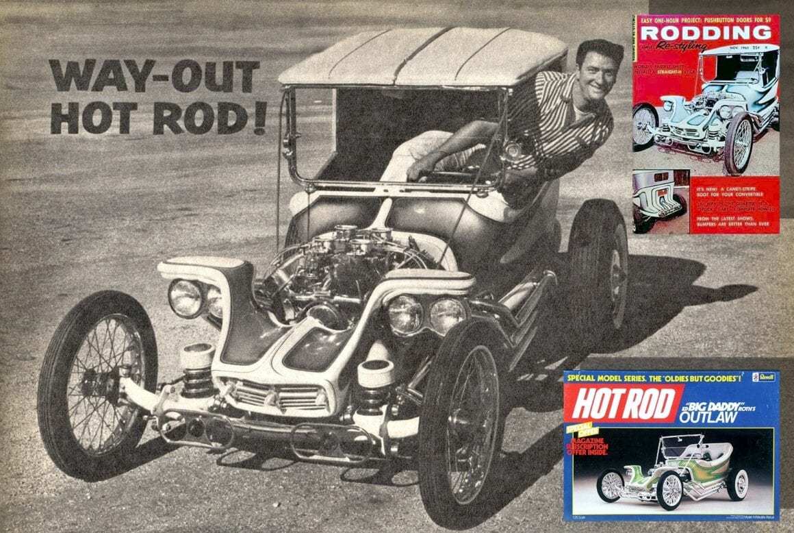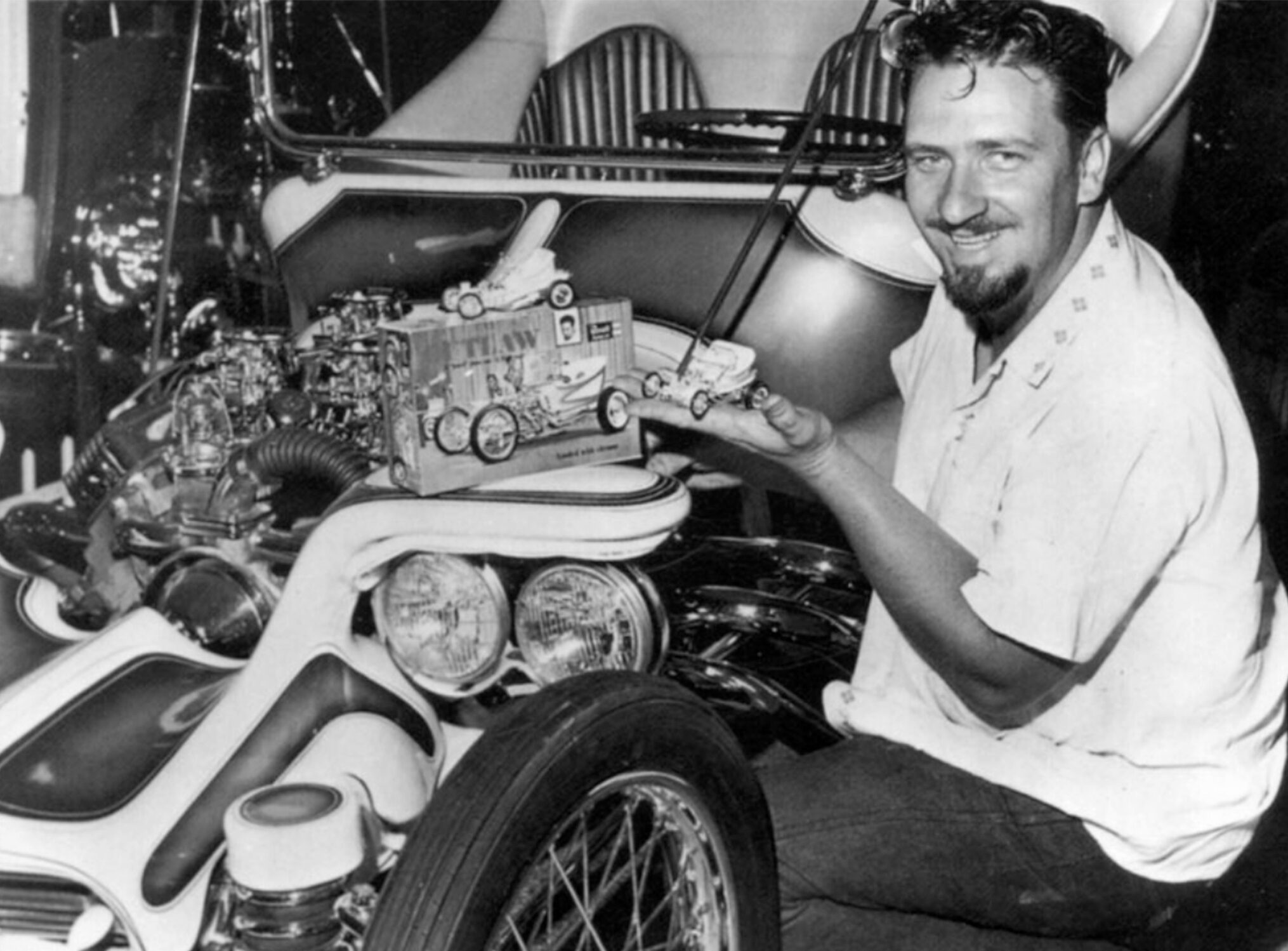 La chance miraculeuse est intervenue directement venue du ciel car les gens de la “Revell Model Company” ont demandé à Ed Roth s’ils pouvaient fabriquer et vendre une maquette 1/8ième du Outlaw… Ed était ravi et a accepté l’offre. Lorsque Revell a commencé à fabriquer puis diffuser le kit de modélisme, il ont vendu 100.000 kits, donc Henry Blankfort a appelé Ed dans son bureau et lui a dit que Revell avait besoin d’un coup de pouce pour les kits. Ed a accepté et a dit à Henry qu’on l’avait toujours appelé “Big Ed” à Bell High… Revell a suggéré qu’il devrait suivre le mouvement et s’appeler quelque chose comme “Spider”.