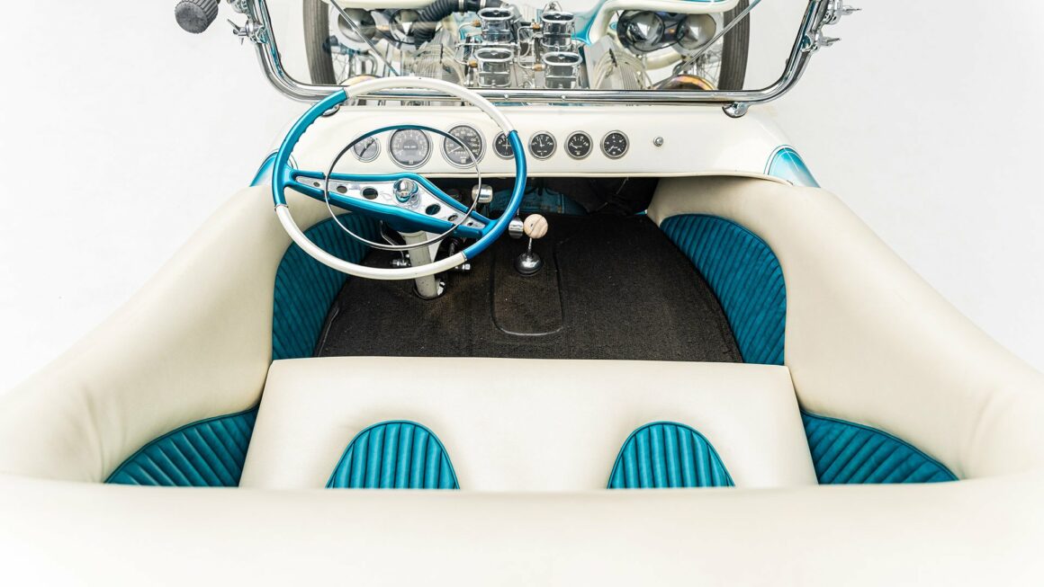 Elle était flambant neuve et Ed a préféré ne pas s’en soucier et a décidé de fuir le plus loin possible car retourner et reprendre le toit qui avait été détruit dans le choc aurait amené à ce qu’il doive payer les frais de remise en état de la Cadillac… Le sensationnel Outlaw a fait peu après la couverture du magazine Car Craft en janvier 1960, avec toujours un couvre-tonneau cachant l’intérieur non réalisé et des jantes en acier Mercury aux quatre coins car le proprio des jantes Mercury était passé par hasard et avait récupéré ses jantes volées…