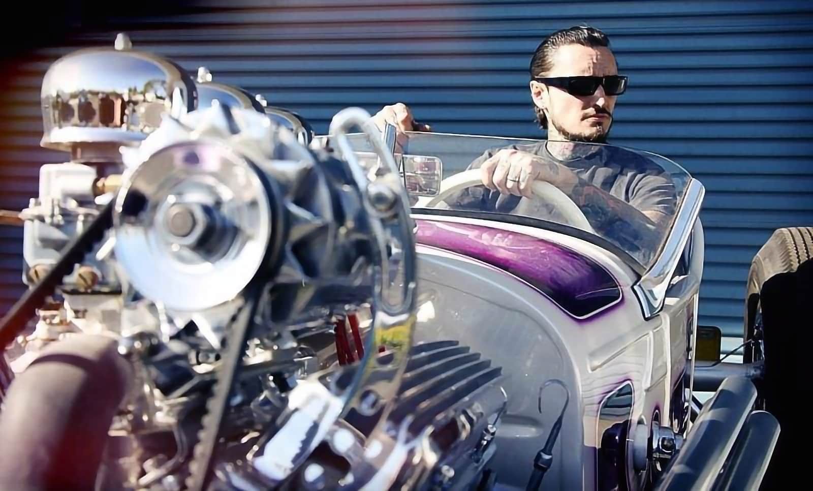 N’allons pas trop vite dans la narration de cette histoire, revenons en 2005 : Dan Collins saute le pas gaillardement et se lance dans l’aventure avec sa femme Tiffany, pas besoin d’un high-concept, cher aux exécutifs-types, pour lancer leur projet : Dan et Tiffany Collins ont leur propre high-concept en tête… et, doté de leur vécu, de leurs expériences, de leurs opinions profondes, ils comptent tout deux faire passer un message crucial au monde entier via leur Hot-Rod, en donnant de leur personne ! Comment faire autrement ? Dan, assez macho-man, est en outre persuadé être le seul à pouvoir prendre le contrôle de la situation d’une dépendance mécanique irrationnelle qu’il va se créer, en luttant contre sa dépression chronique et ses obsessions pour la mort et l’amour, lui qui jusqu’alors passait ses loisirs à crapahuter nu dans les montagnes rocheuses du désert du Nevada (son épouse étant alors sur le point de demander le divorce persuadée que son mari batifolait avec une créature du désert)…