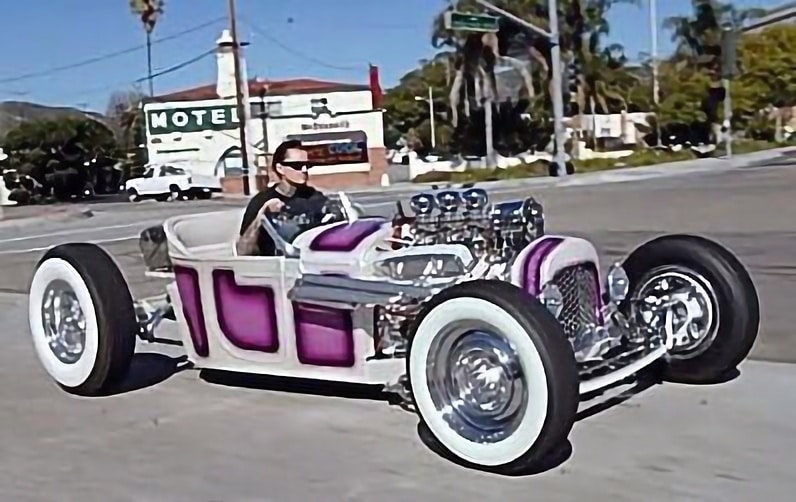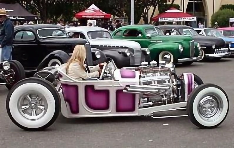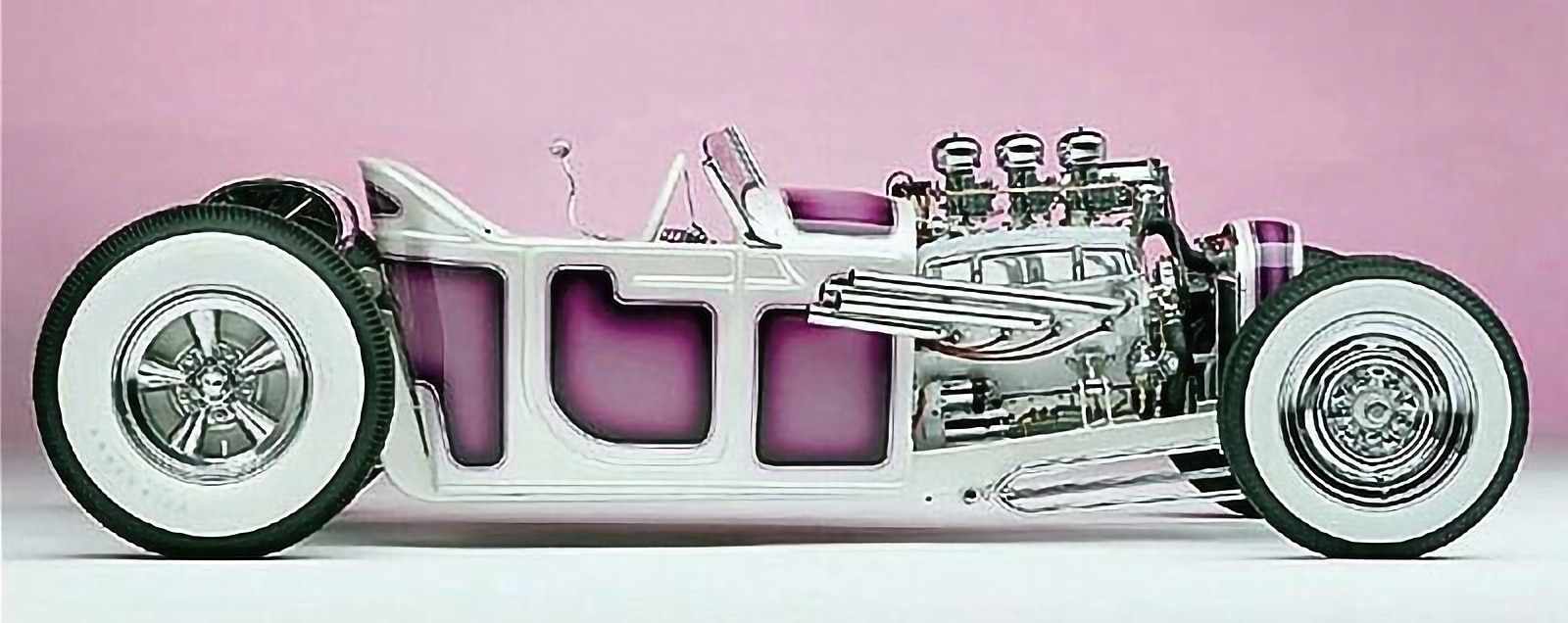 Je suis le premier étonné de ne pas être encore lassé de 50 ans de Hot-Rodding dont plus de 30 ans de magazines Chromes&Flammes “papier” à l’international, chevauchant, au tiers, 30 ans de Web avec mes sites pionniers créés avant même les réseaux asociaux, tels SecretsInterdits, puis GatsbyOnline et l’éternel ChromesFlammes en locomotive de divers autres titres. La liste est longue, sans fin et je m’étonne même de continuer à tapoter des textes, des souvenirs, des visions d’avenir et même encore diverses pulsions de renouveau qui s’imbriquent dans un “ras-le-bol” de l’humain et de ses gnagnardises. Putain ! Du temps de l’édition “papier”, Chromes&Flammes en 5 langues/éditions mensuelles, diffusait de l’Espagne à la Sibérie jusqu’au Canada et les USA… Le fisc est passé suite à délations et c’est reparti en numérique, planétaire, en un click partouze, maintenant au départ de Saint-Tropez sans même plus avoir besoin d’une armada de reporters qui sillonnent le monde comme aux vrais temps de Life, Paris-Match et PlayBoy, dont je suisse partenaire dans l’euphorie de la glandouille avec les mêmes recettes d’histoires intellectuellement déjantées au centre desquelles seins et culs s’exposent au masturbatoire… L’humain est basique dans ses complications. En ce jour de pleine nuit alors qu’en Ukraine se prépare une nouvelle fin du monde d’un cycle chiant et mortel, je vous présente un p’tit Rod en couleur bonbon, pas trop mal shooté pour en réaliser un reportage… La cuisine à en fabriquer un article cohérent à l’autre opposé de la planète est d’en mixer les folies pour espérer en tirer une histoire pas que visuelle ! A déguster…