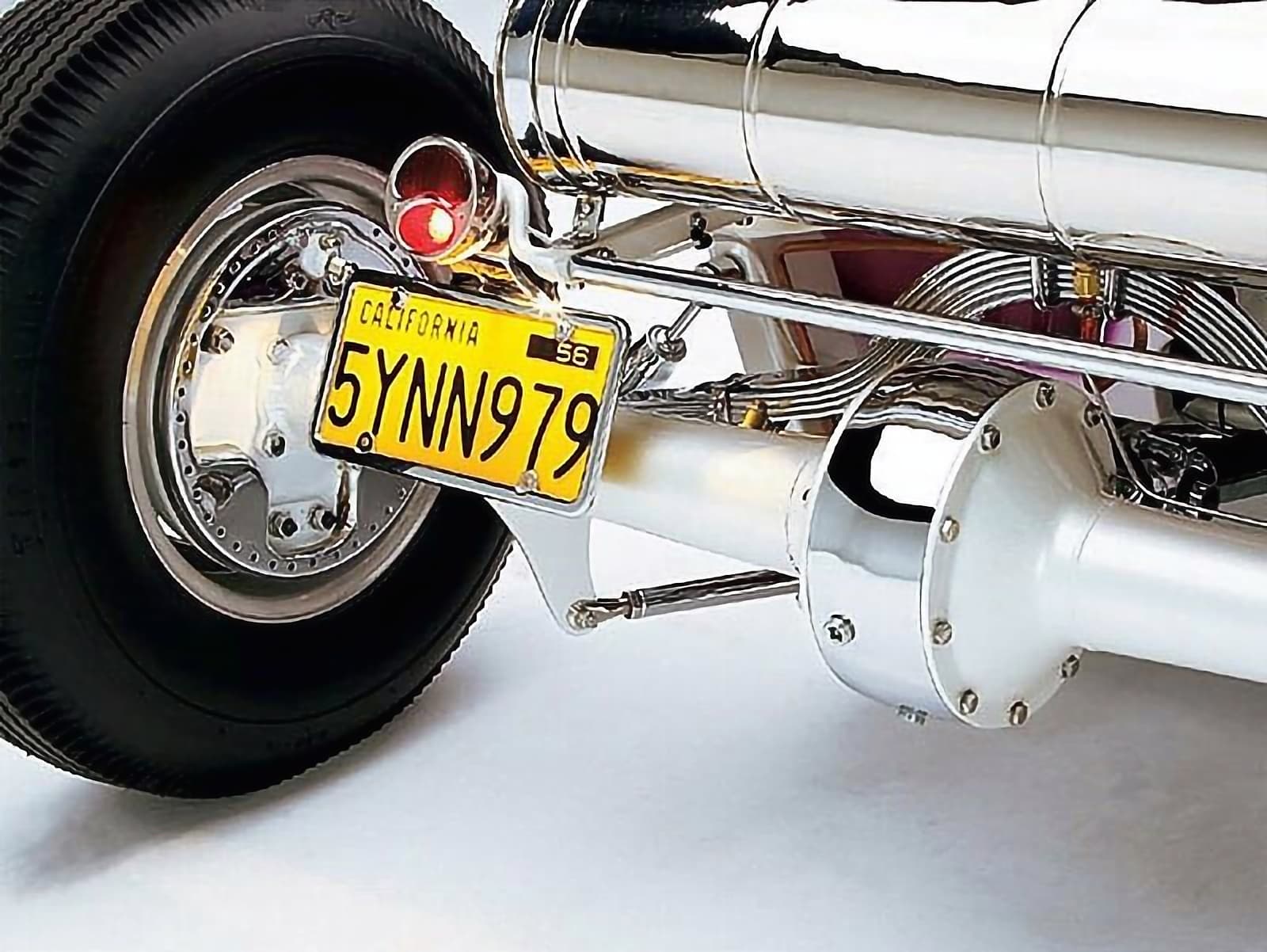 Tirer encore des lignes et des lignes de ce machin roulable devenant au dessus des forces des journaleux de sévices (commandés), je vous laisse le soin de lire directement ce qu’il en reste et ce qu’il en fut (ce qu’il va en devenir est une autre histoire), l’article du magazine de Hot-Rod commençait par une description technique du châssis et la mécanique, avec, pour en retirer des dollars de pub’s, les mentions des firmes ayant fourni des pièces et/ou des “services” pour la finalité de ce chef-d’oeuvre :