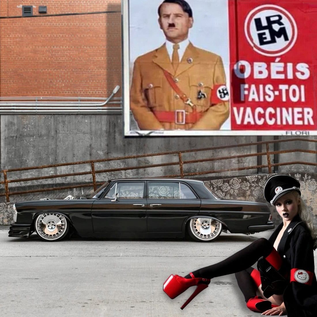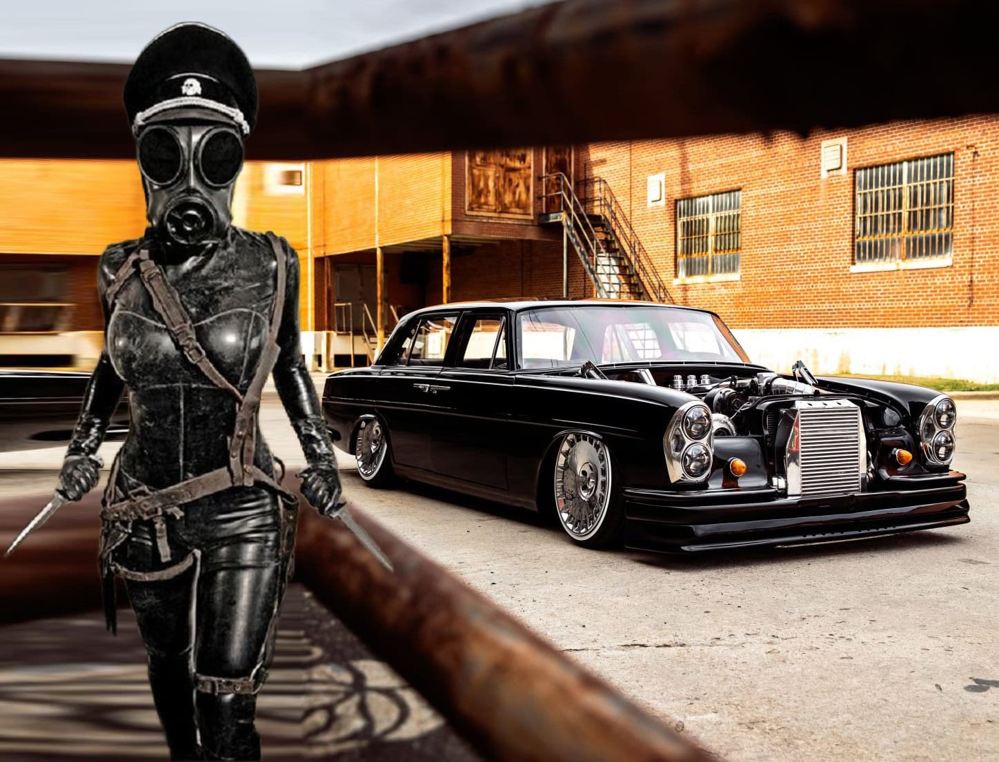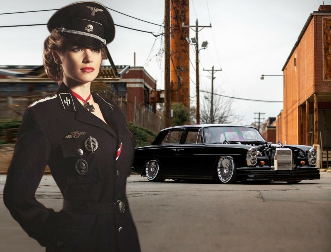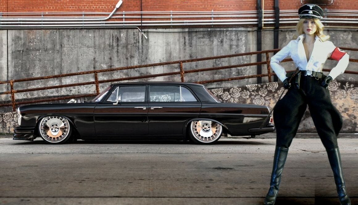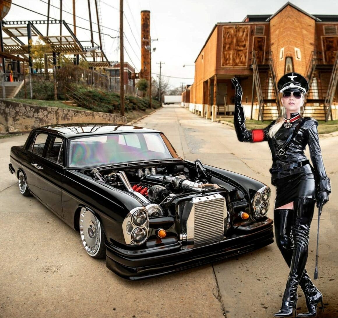 Ce qui fait de cette Mercos W108 la star suprême dans le camp des stars converties avec un charme classique à vos yeux éberlués, c’est la somme de nombreuses modifications effectuées à la perfection absolue, changement de moteur avec conversion turbo (Chevrolet V8 de 650cv), suspension pneumatique, portes suicides, toit surbaissé (Top-Chp), design intérieur et bien plus encore. Jetez un coup d’œil aux images puissantes qui sont assorties du symbolisme nazi adéquat selon les normes européennes et demandez-vous : Qui offre le plus ?