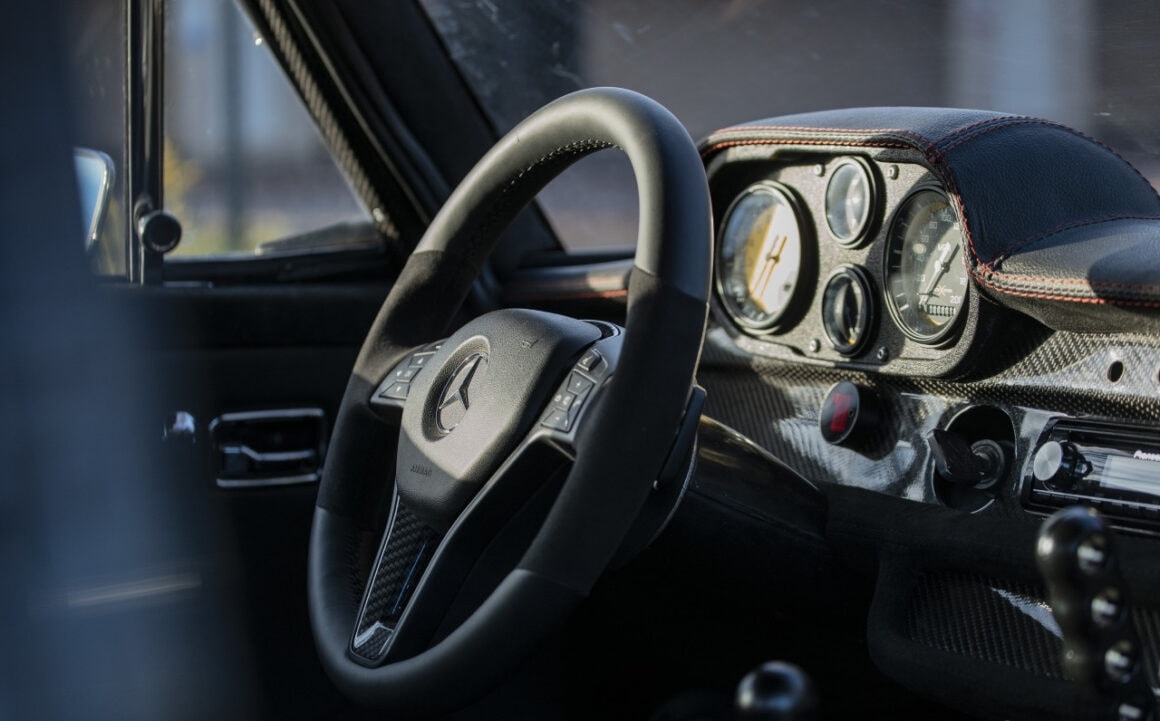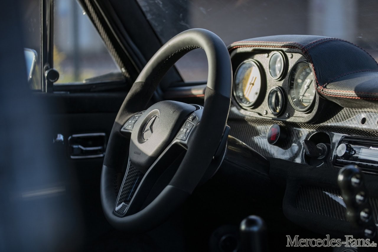 Les nouvelles housses, qui sont faites d’un mélange de matériaux nappa / daim, sont rendues plus attrayantes par un matelassage hexagonal. Le tableau de bord est fini en carbone. Le cockpit du compteur de vitesse abrite une collection de montres au look Ferrari 458. Autre nouveauté à bord, un volant AMG C63. Il vaudrait probablement la peine de mentionner beaucoup plus de choses qui ont changé dans et sur la Mercedes-Benz 280 S de 1969. En fin de compte, cependant, je me dois de fixer des priorités pour mes reportages.