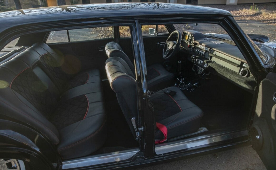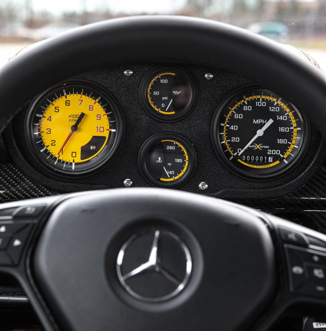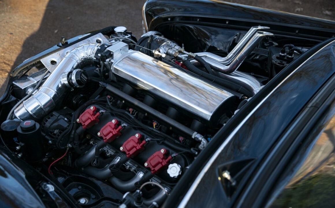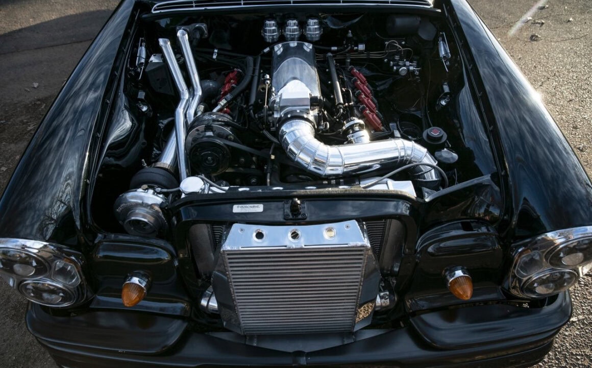 Il a même remporté la moitié de la bataille pour le facteur “wow !” de la carrosserie. Pour parfaire le look tueur, Mike a décidé d’équiper la Benz de portes suicides. Cependant, cela s’est avéré un peu délicat, car des charnières spéciales étaient nécessaires à l’arrière des portes arrière et un nouveau mécanisme de verrouillage a dû être installé à l’avant. Les ampoules de phares d’origine de la Mercedes W108 ont été équipées de quatre phares/projecteurs pour élever la qualité de la lumière à un niveau contemporain.