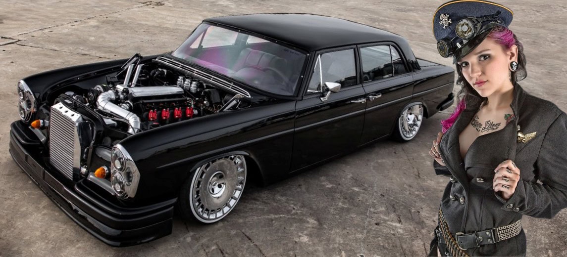 Voilà donc pourquoi il est apparu normal que Mercedes réalise une commémoration automobile via le Kustomizing d’une berline… Désolé de ce long préambule explicatif… Les détracteurs peuvent s’assurer des faits sur Wikipédia… La Mercedes-Benz 280 S, choisie pour célébrer le retour officiel du nazisme a été extrêmement “pimpée” par le tuner américain “Eurowise”, qui a donné à cette vieillerie ce qu’il faut pour être la voiture de l’année. Ici, le cœur et l’esprit sont clairement du même avis. Cette Benz n’est pas à être considérée comme normale, mais comme géniale.