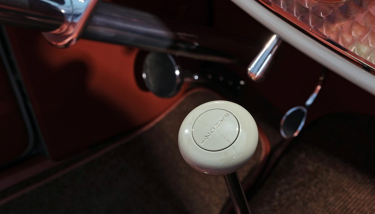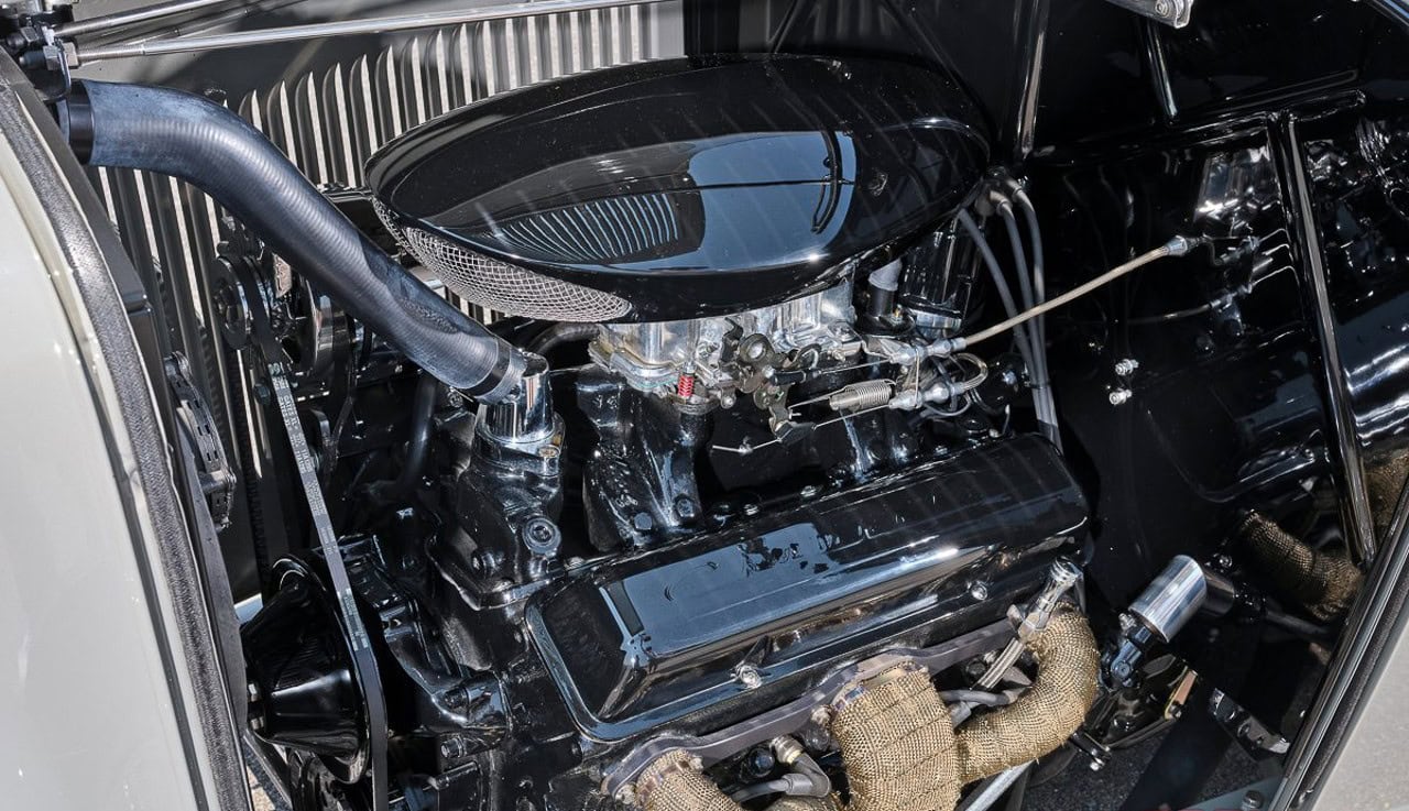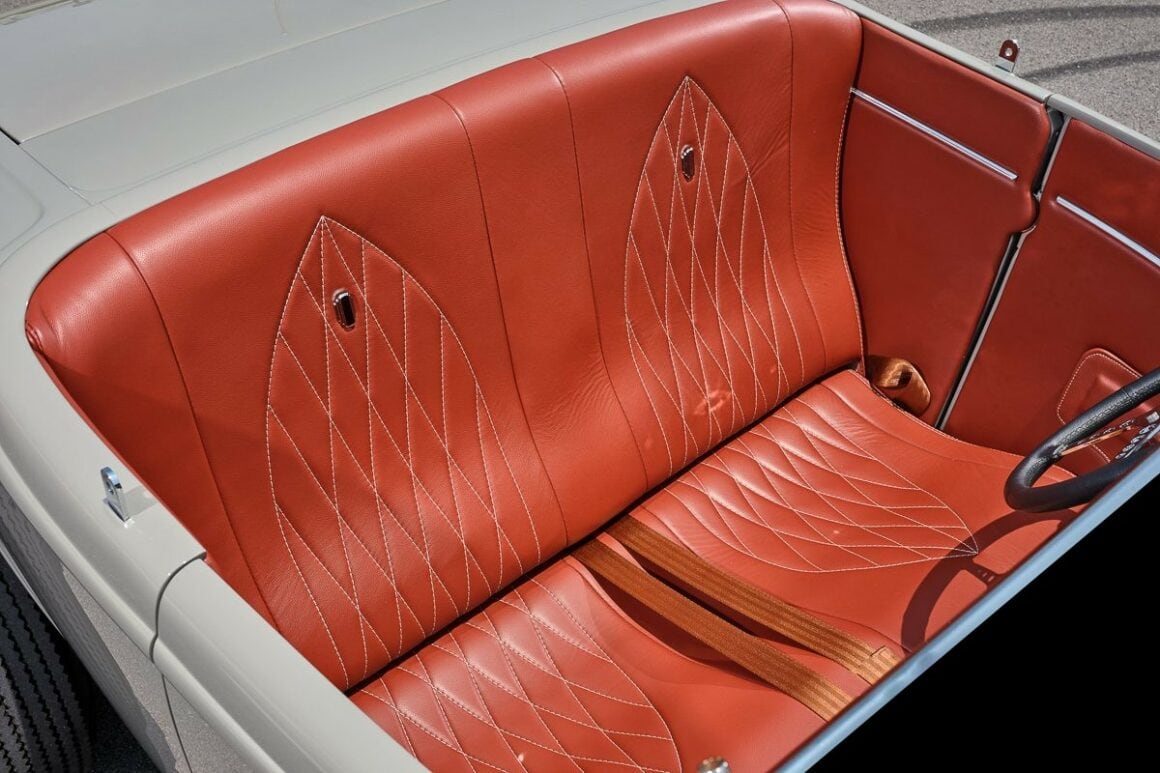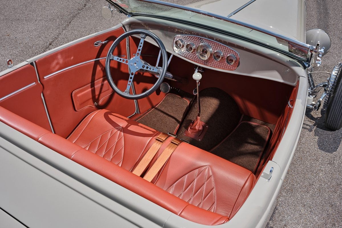 Les freins à disque à l’avant (cachés dans des tambours de style Buick) et les tambours arrière ont été assemblés derrière des roues en acier Wheelsmith de 16×4 et 16×6 pouces enveloppées de caoutchoucs à plis diagonaux Firestone. Ni Shane ni Chad n’ont ressenti le besoin de faire quoi que ce soit d’exotique pour la puissance, donc un V8 350c.i. fiable et solide a été installé dans le châssis et soutenu par une transmission TH350. Un carburateur Holley gère le dosage du carburant, les collecteurs de bloc expulsent les fumées, et tout est joliment détaillé et peint en noir brillant. La carrosserie en acier de Brookville a reçu l’ajustement et la mise au point nécessaires pour obtenir des espaces uniformes et un alignement précis des panneaux. Chad et Shane se sont ensuite mis d’accord sur une teinte beige de style vintage appelée “Classic Clay” qui a été appliquée à l’aide de matériaux PPG.