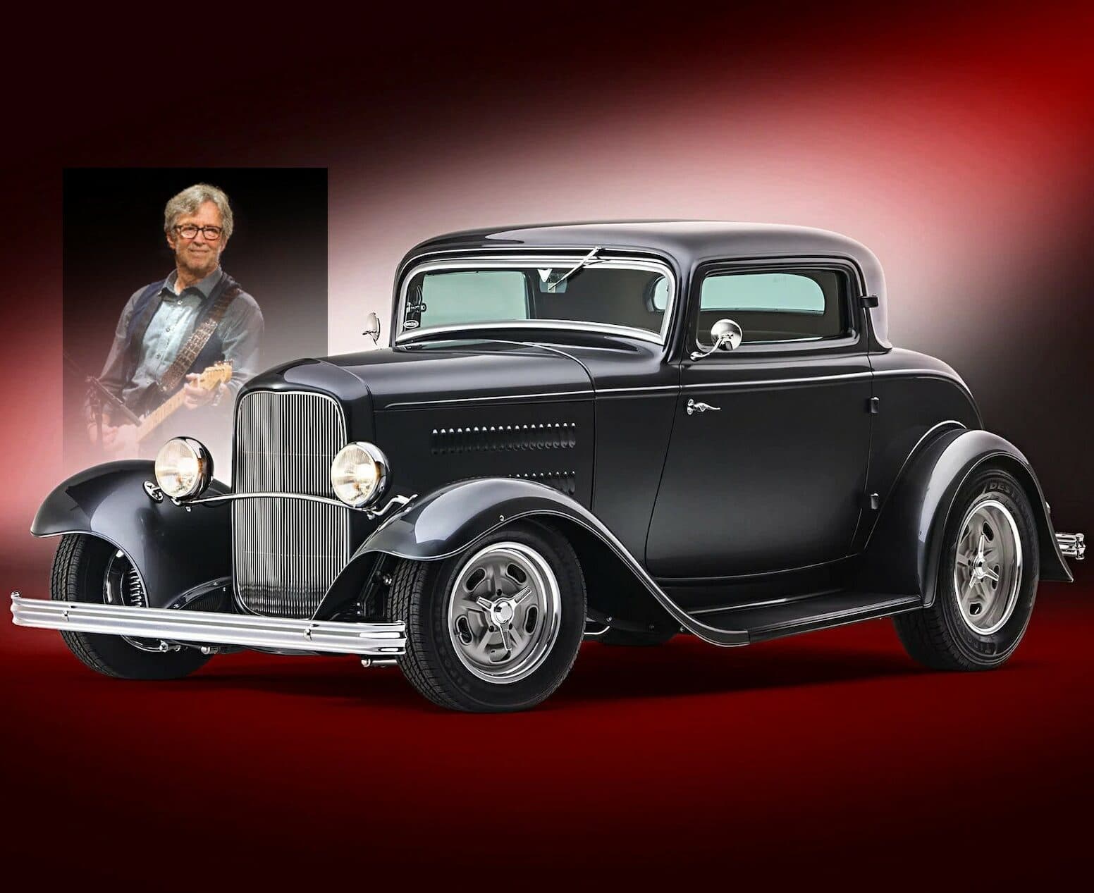 Et un sextuor de Classic Instruments fournit une instrumentation complète, tandis que le plateau d’emballage recouvert de cuir abrite l’unité principale Kenwood installée par Sid Chavers Company de concert avec des haut-parleurs Pioneer dissimulés et un amplificateur Soundstream ; Remarque : il n’y a aucun panneaux de protection perforés. Le coupé Ford ’32 d’Eric Clapton construit par Brizio a fait ses débuts au Grand National Roadster Show 2016 à Pomona, en Californie, et n’a cessé de rouler et de culbuter depuis… J’en ai terminé… Vous connaissez maintenant tout ce qui était nécessaire, quoique je suis quasi certain que vous n’en ferez pas grand chose sinon rien, pas même re-écouter Eric Clapton… Pffffffffffffffff !