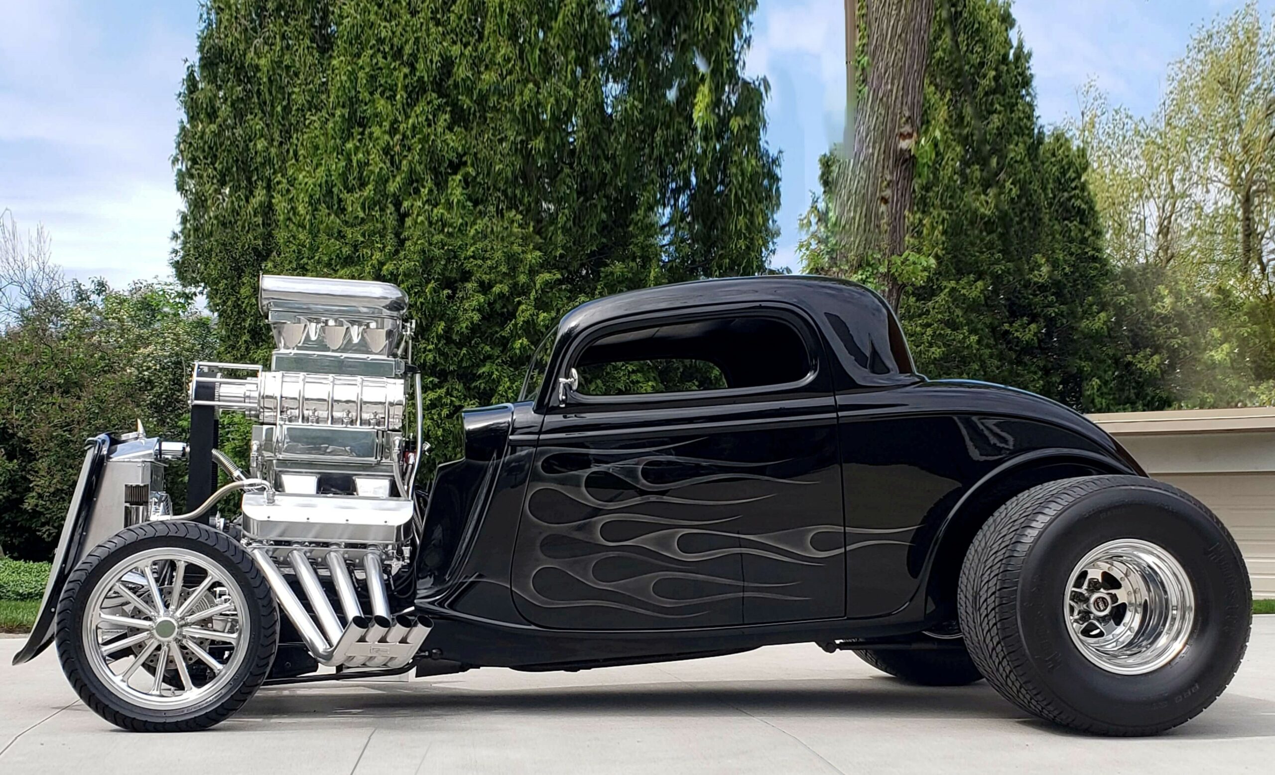 Son intérêt, malgré la variété de voitures américaines modernes dans son environnement, est toujours resté fidèle aux coupés Ford ’30 à ’34. Même enfant, il gravitait autour des Hot Rod’s lorsqu’il parcourait l’allée des jouets Hot Wheels. En vieillissant, Eric est resté le même. Il rêvait d’un coupé légendaire, noir comme la nuit, équipé de jantes chromées et d’un énorme moteur chromé a compresseur (Blower).