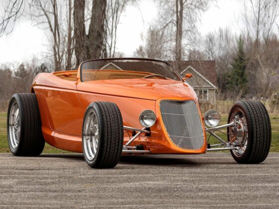 La carrosserie fabriquée “à la main” est en aluminium avec des ailes et des marchepieds en acier formés martelés par Craig Naff ! Ressemblant à une Ford de 1937, elle est finie en jaune vif ! La luminosité utilisée est absolument à couper le souffle, non seulement en termes de réflectivité, mais aussi d’exécution. L’idée semble que la retenue et l’utilisation l’emportent sur l’excès. Prenez par exemple les embouts d’échappement qui imitent les jantes en aluminium poli conçues sur mesure. Derrière la superbe calandre se trouve un moteur V8 Chevrolet LT1 à injection avec une transmission 700R.
