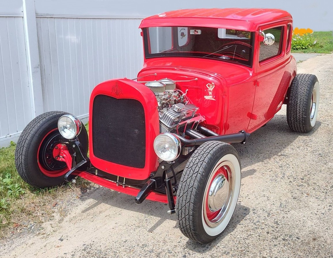 -Hot Rod modèle A 1931 avec calandre de Modèle B 1932, carrosserie Coupe, rouge.