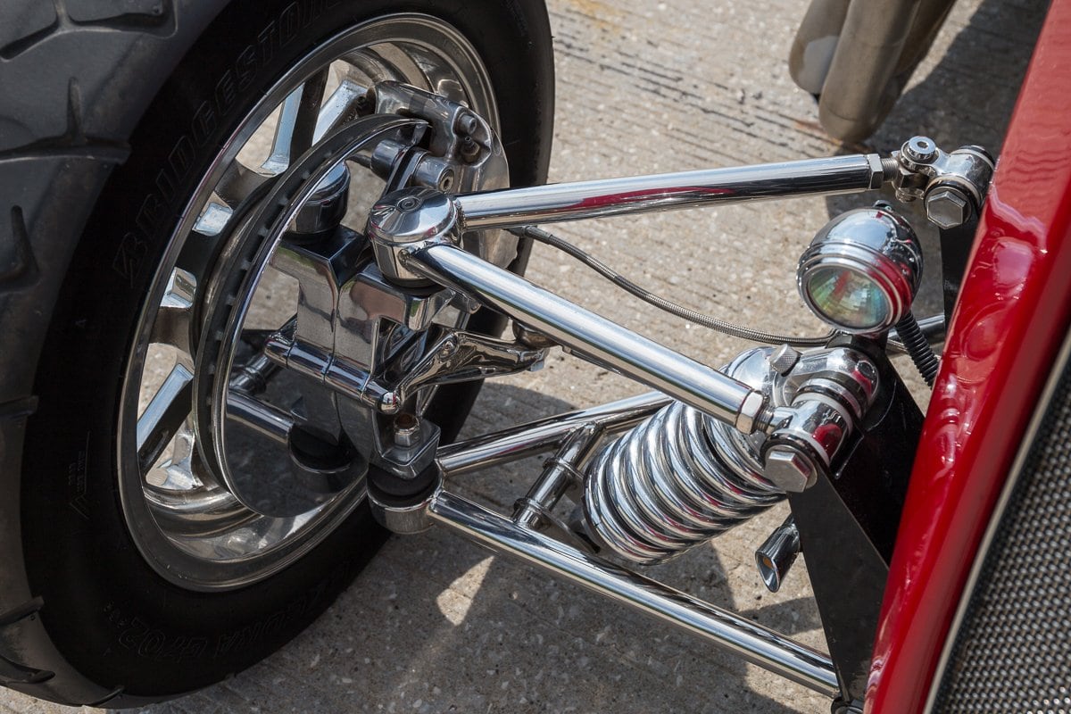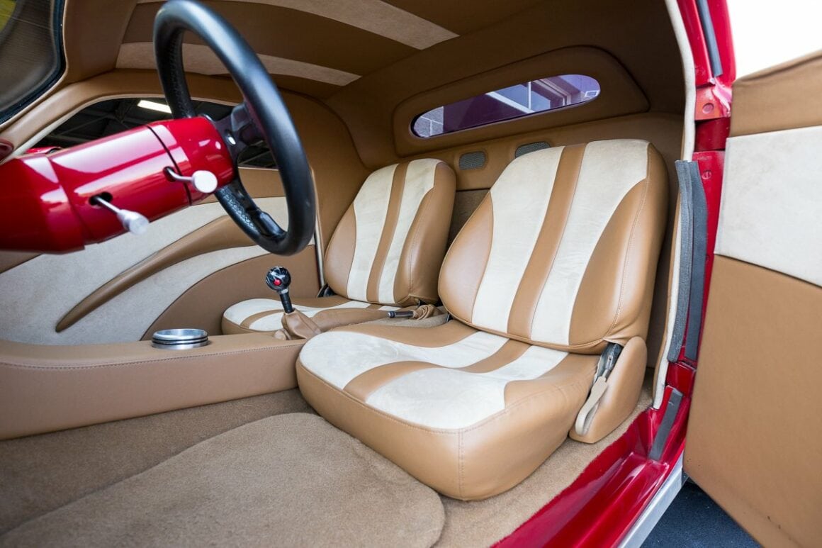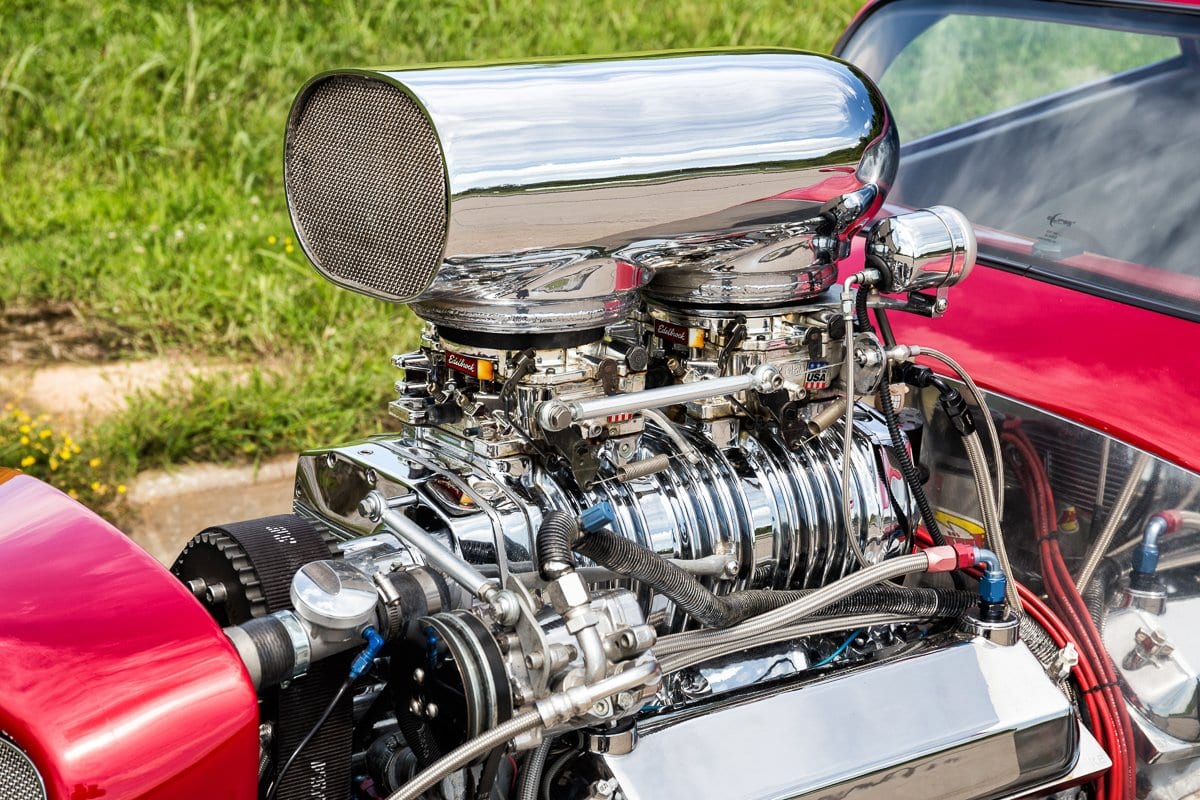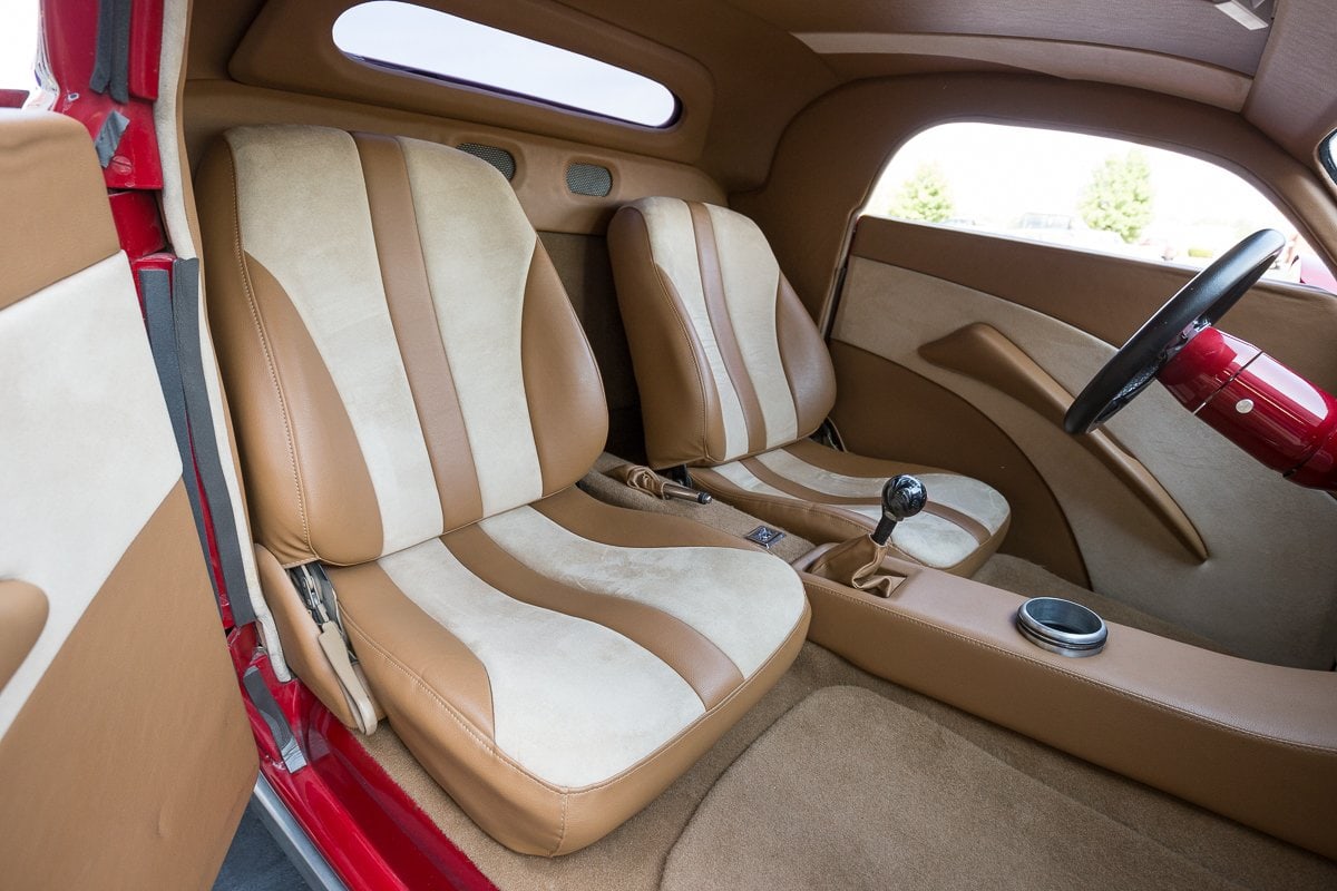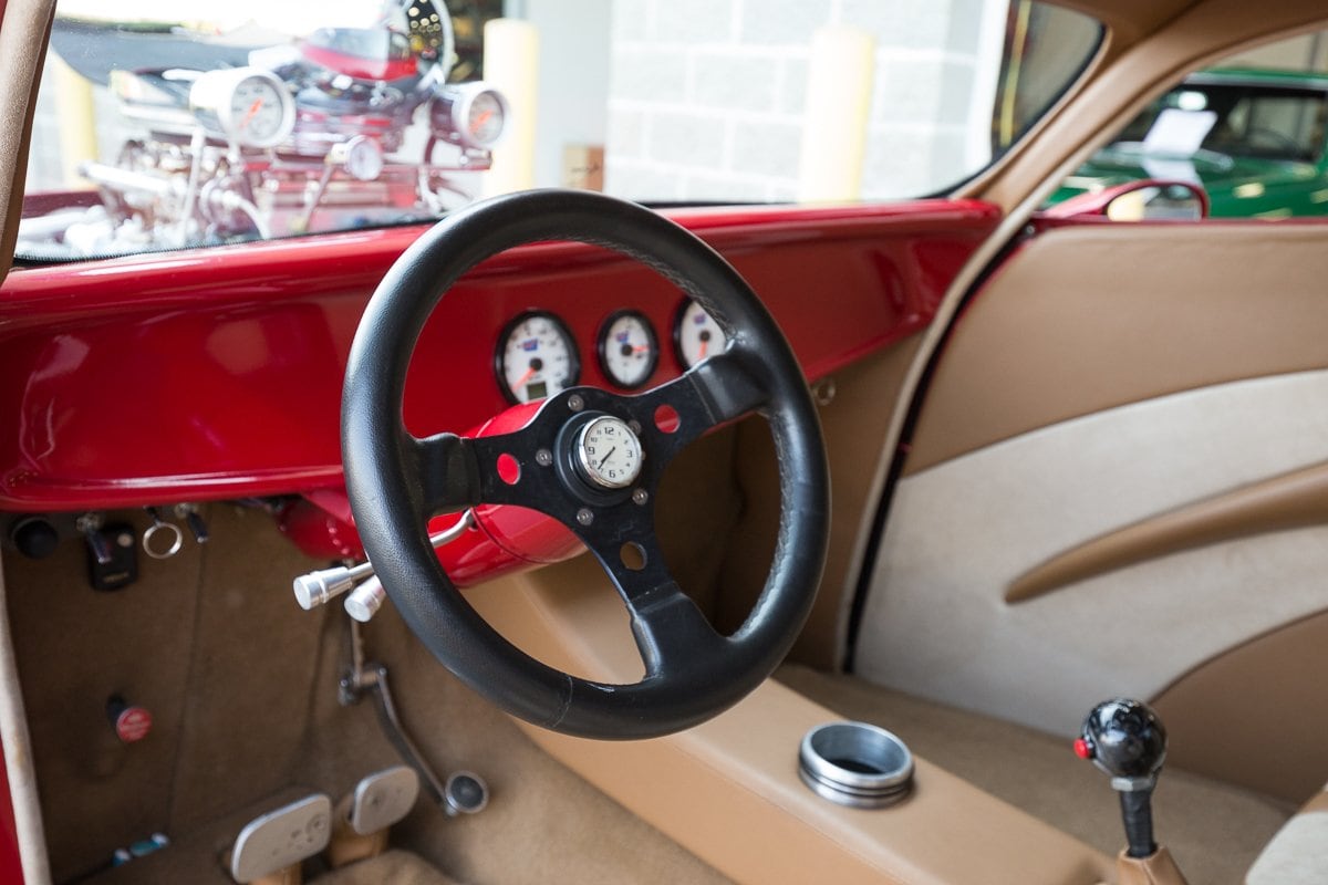 Chrome Front Suspension w/ Coil Overs, Auto Meter Oil Pressure & Water Temp Gauges, Walker Radiator w/ Electric Fan, GPS Speedometer, DOT Glass Windshield, Leather/ Suede Interior w/ Custom Roof & Door Panels, Custom Squared Side Exhaust, 4 Wheel Disc Brakes, 15” Rocket Racing Wheels in Front w/ Bridgestone Tires, 15” Centerline Wheels in Rear w/ Mickey Thompson 33×22 Tires…