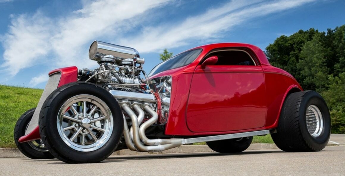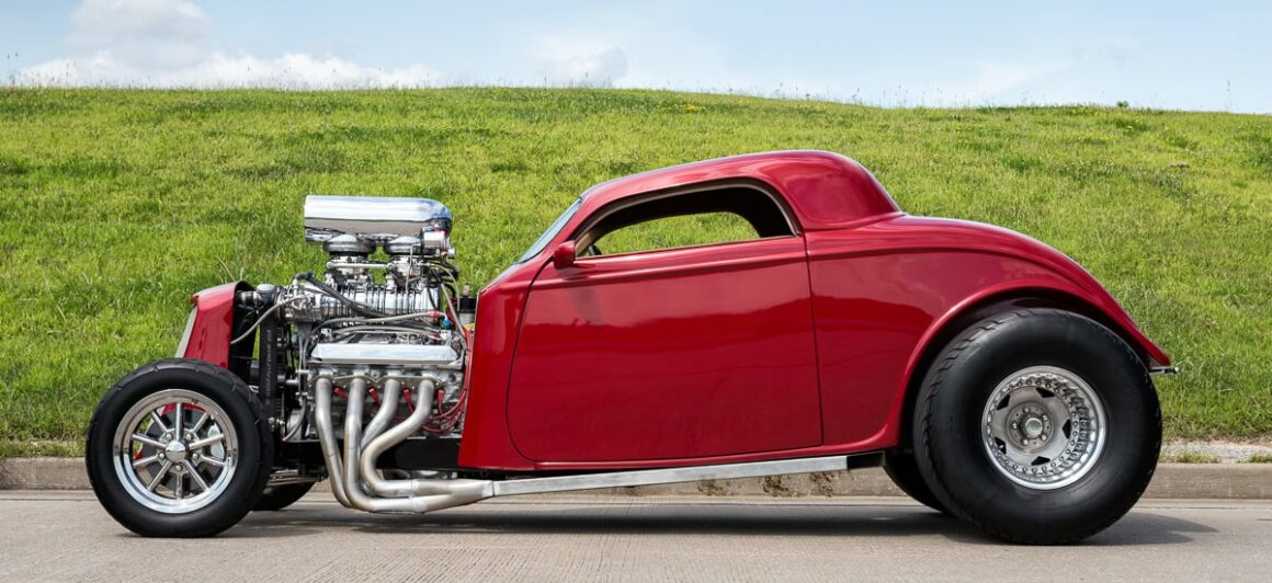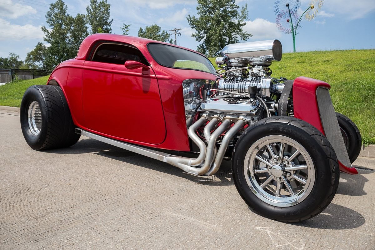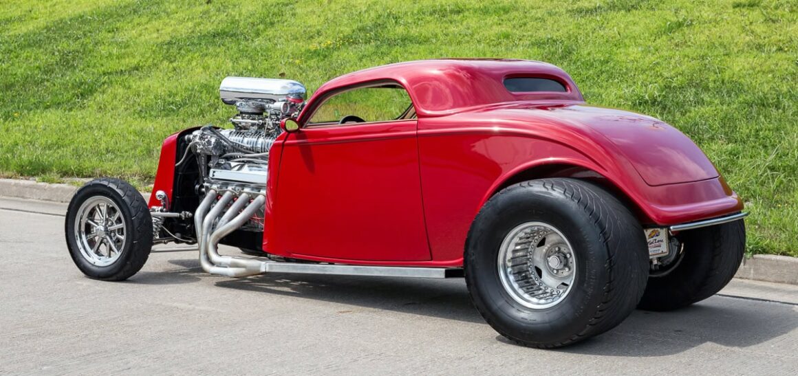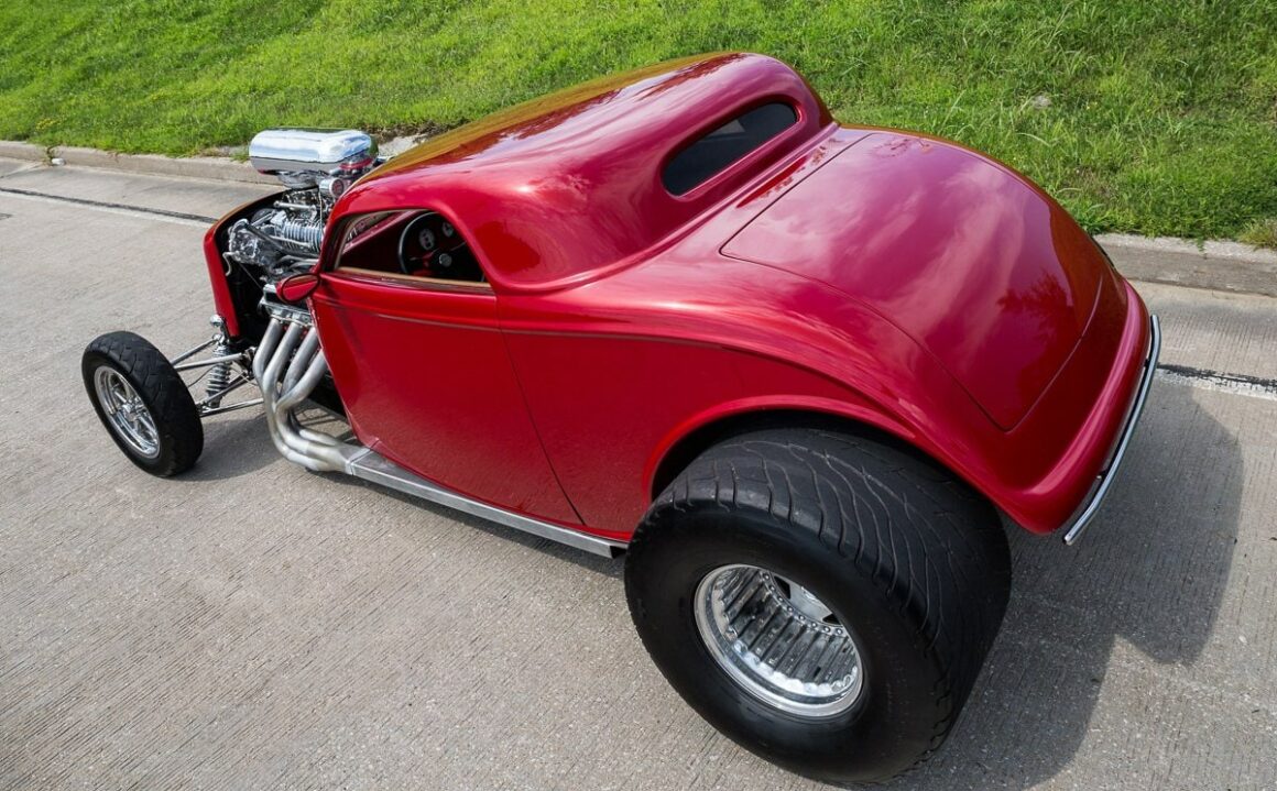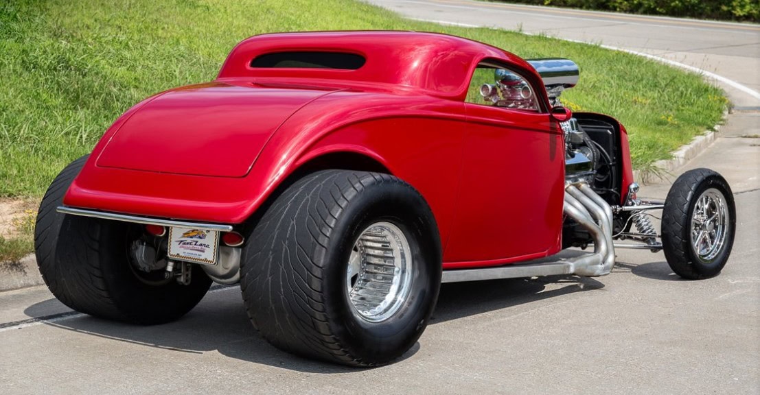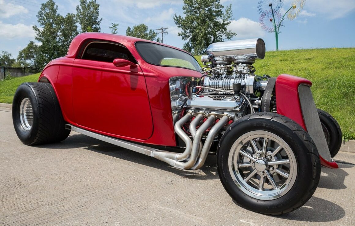 Voici une notice explicative de ce qu’est le Hot Rod qui est présenté dans cet article déjanté… Je le laisse en patois Yankee pour rester dans le style local… This 1933 Ford 3 Window Coupe has a 462 C.I. Supercharged Big Block V8, Dual Edelbrock 4BBL Carburetors, Tremec 6 Speed Manual Transmission, Rat’s Glass Body, Rear End has been Tubbed 6”, Ford 9” Rear w/ 3.00:1 Ratio, B & M Polished Blower, Air Conditioning, Electric Trunk & Windows…