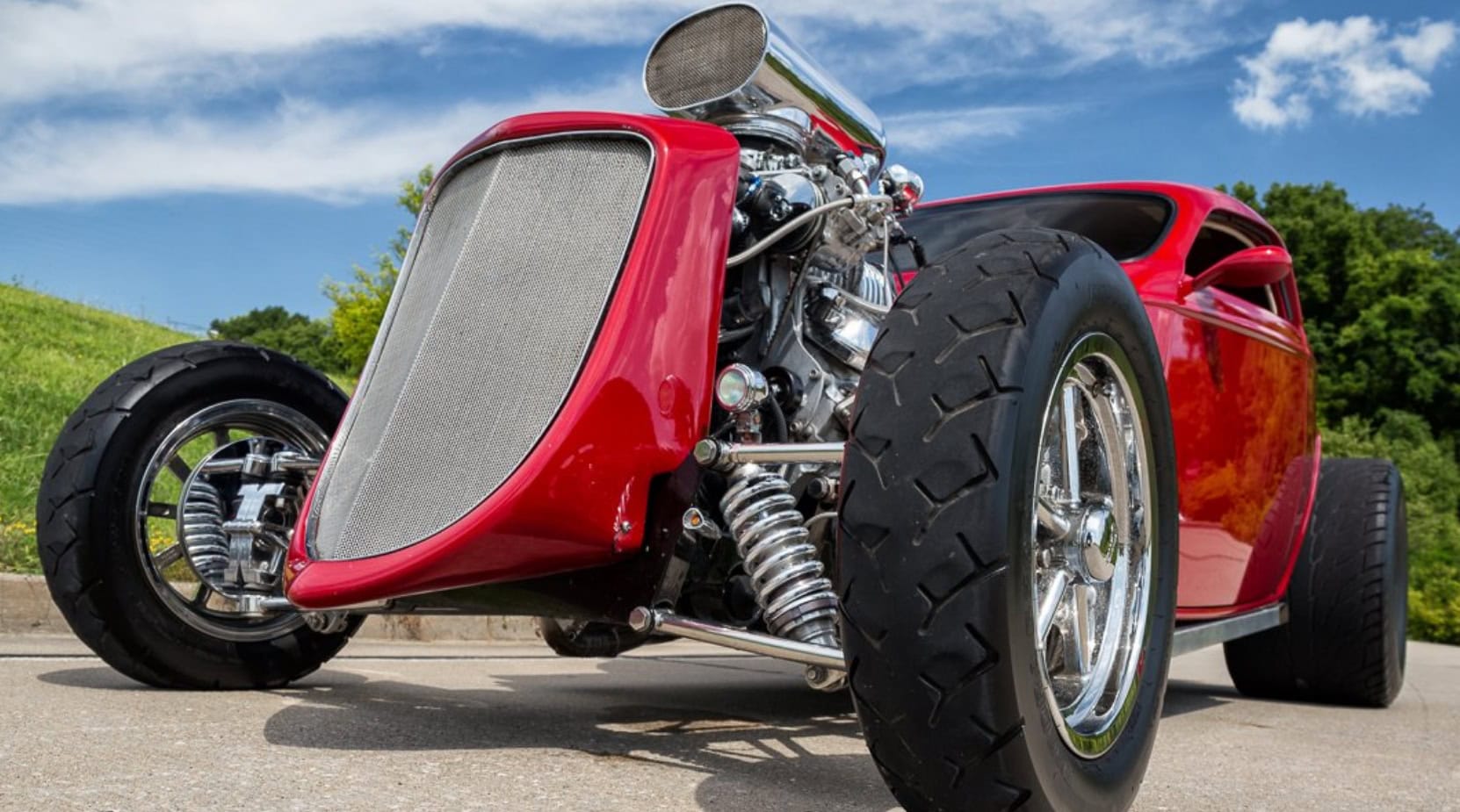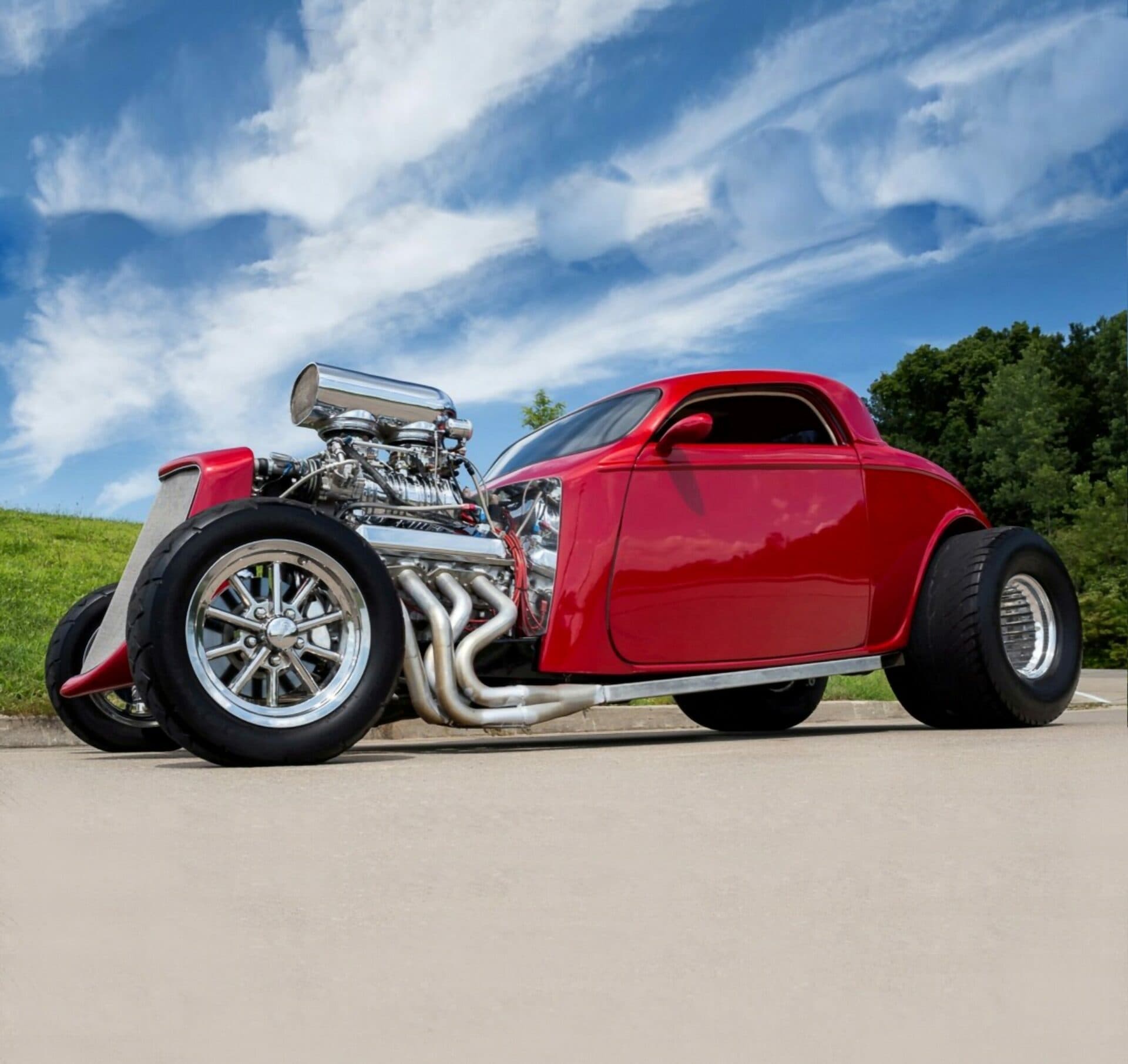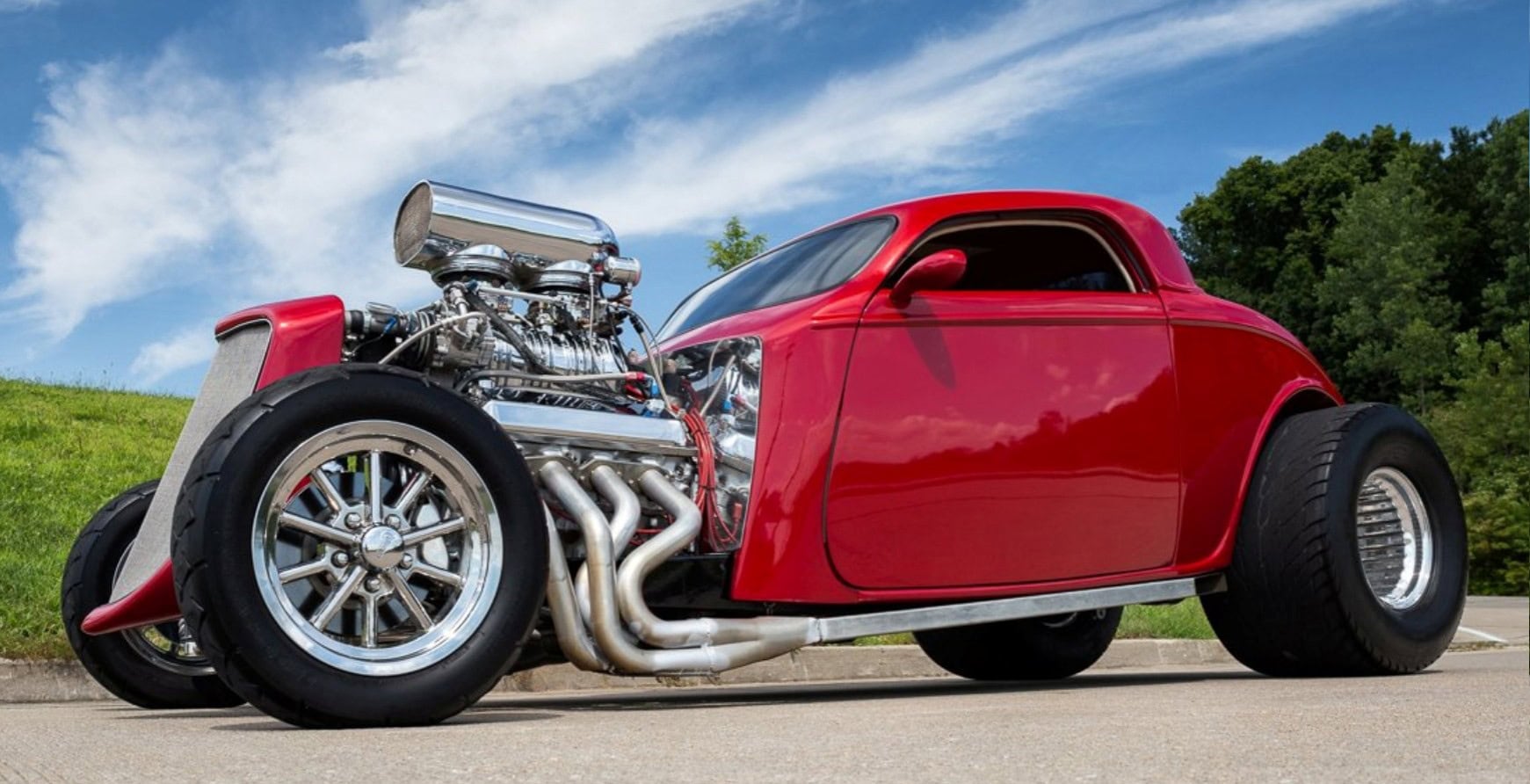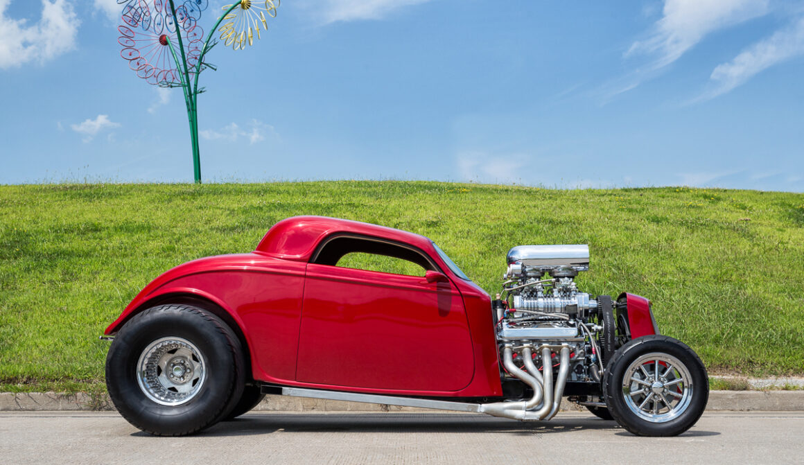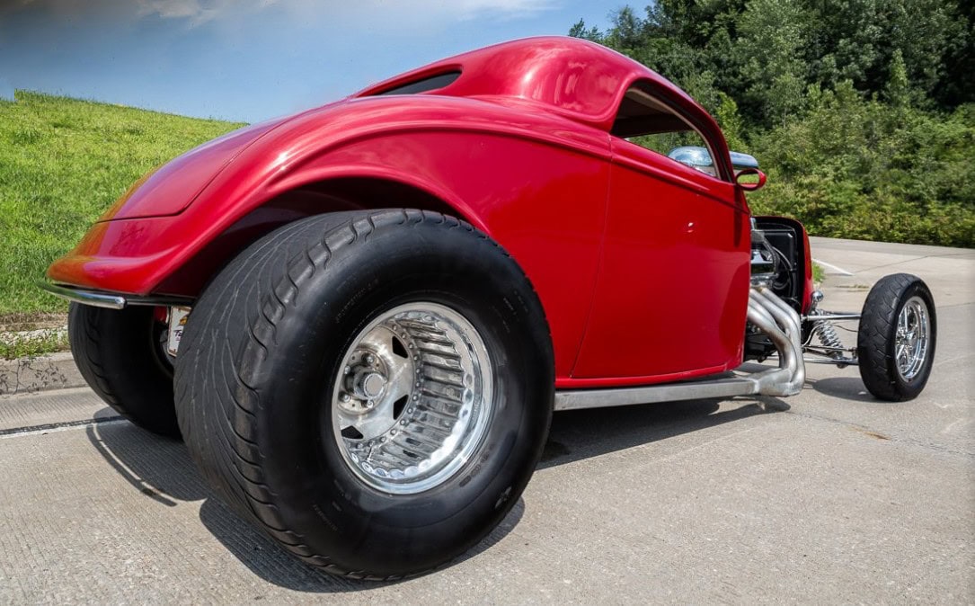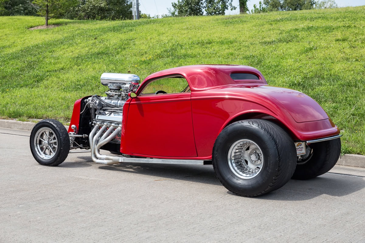 Voici une notice explicative de ce qu’est le Hot Rod qui est présenté dans cet article déjanté… Je le laisse en patois Yankee pour rester dans le style local… This 1933 Ford 3 Window Coupe has a 462 C.I. Supercharged Big Block V8, Dual Edelbrock 4BBL Carburetors, Tremec 6 Speed Manual Transmission, Rat’s Glass Body, Rear End has been Tubbed 6”, Ford 9” Rear w/ 3.00:1 Ratio, B & M Polished Blower, Air Conditioning, Electric Trunk & Windows…