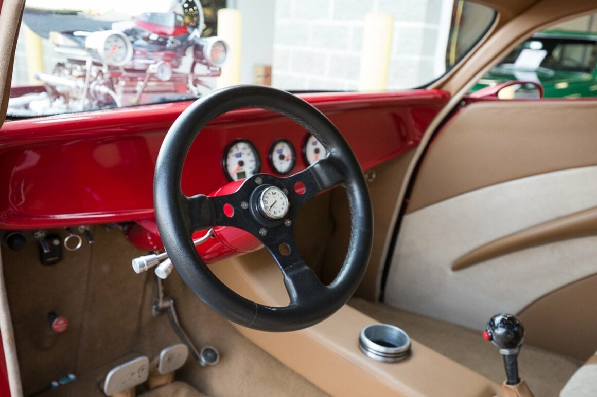 Il reste ceci : 1 of a Kind Blown ’33 Coupe w/ 6 Speed Transmission & Air Conditioning ! Dernier point, le prix de vente fort attractif : For sale for 55.000$ ! Ne reste qu’à l’acheter et sur ce point, la surprise est de taille, quoiqu’il faut ajouter les frais de transport et les taxes. J’ai toutefois plus que des doutes car ce Hot Rod n’a pas du tout l’air d’une authentique Ford 1933 et le compresseur va faire bondir les douanes et gendarmes… Vivre aux USA est la seule solution…