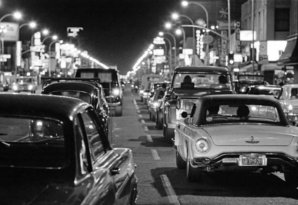 Le phénomène du Cruising remonte au début des années 1950, peut-être même à la fin des années 40. Dans la vallée de San Fernando, le restaurant drive-in “Bob’s Big Boy’s” avait ouvert ses portes le long du boulevard Van Nuys et est rapidement devenu l’attraction centrale et le point de repère et de la collecte des girl’s… C’était l’exact lieu, l’endroit où il fallait être et être vu. À la fin des années’50, de longues files d’attente se sont formées les mercredis, vendredis et samedis soirs le long du boulevard Van Nuys et de la rue Clarke cherchant un endroit où se garer pour le service de “Car-hop”…
