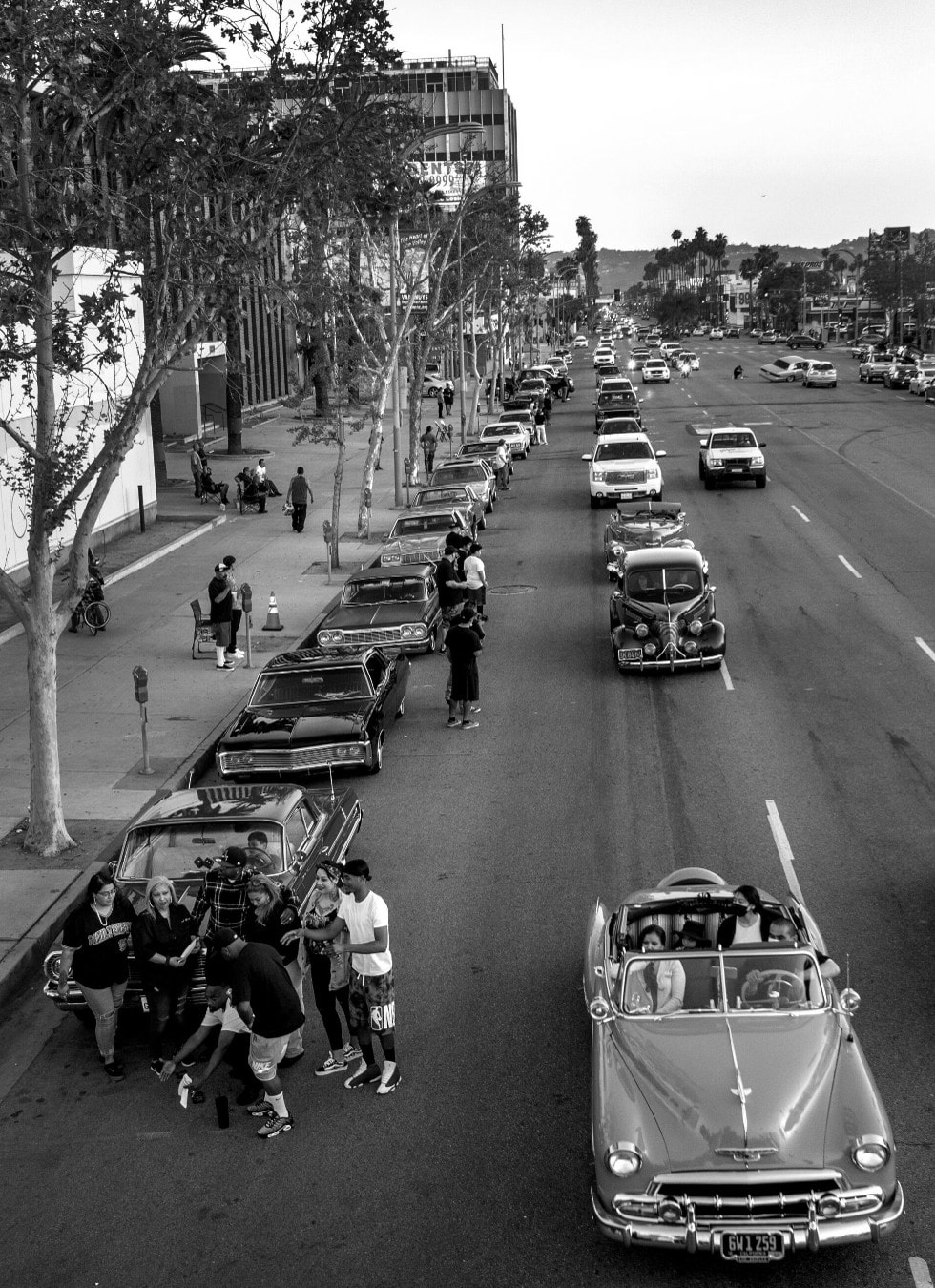 Le Cruising était de retour et par pur hasard, j’avais découvert cette nouvelle résurgence et les merveilleux niveaux d’énergie du soir sur Van Nuys Boulevard ! Juste hors de vue, le propriétaire du manège “Lonely Teardrops”, recevait une contravention d’un policier pour une infraction technique et pendant ce temps, sa petite amie, spontanément volait quelques baisers. Classique ! Flirter pendant les nuits de cruising n’était pas du tout comme la même entreprise difficile et souvent risquée de quelques années plus tard.
