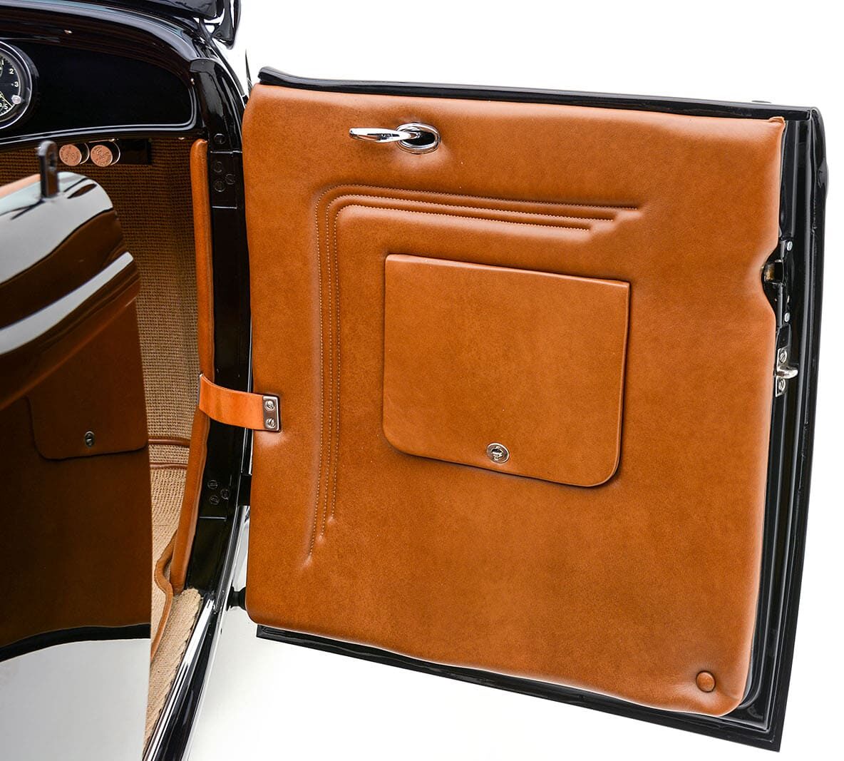 Il a également remodelé les ailes avec des courbes plus douces et éliminé la visière de pare-brise en forme de pelle. Les ingénieurs de Ford ont capitalisé sur les procédés de soudage électrique mis au point par les ingénieurs Ford pour remplacer tout le bois de structure de carrosserie par de l’acier. Cela rendait les carrosseries plus légères, plus solides, plus durables et plus faciles à produire. En fabriquant des composants clés tels que les enjoliveurs, des garnitures de calandre, les poignées de porte et même le bouchon de réservoir en acier inoxydable, ils ont réussi à minimiser les processus de placage coûteux !