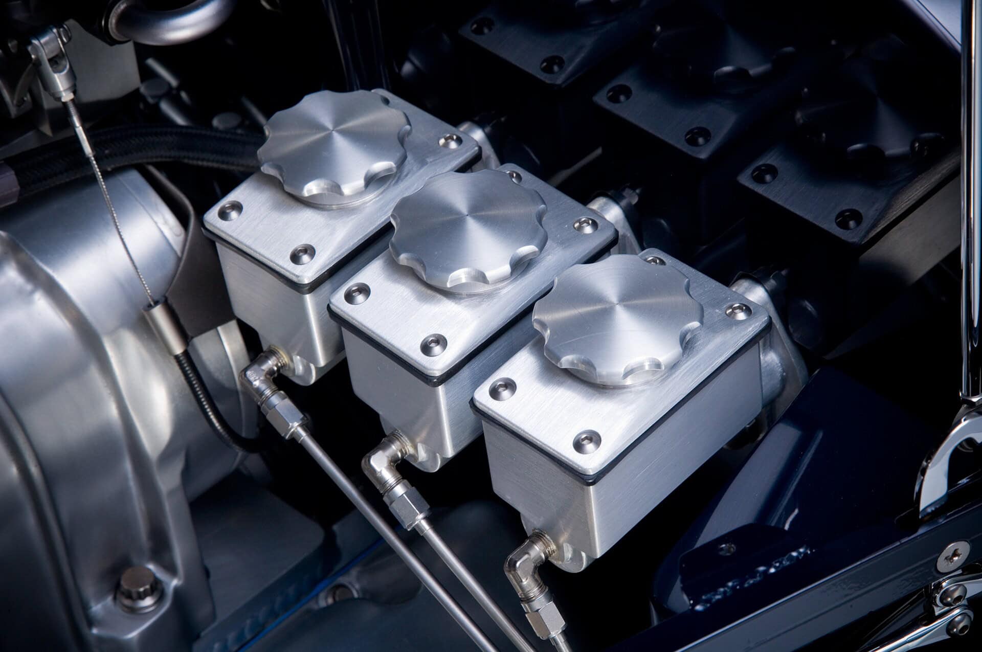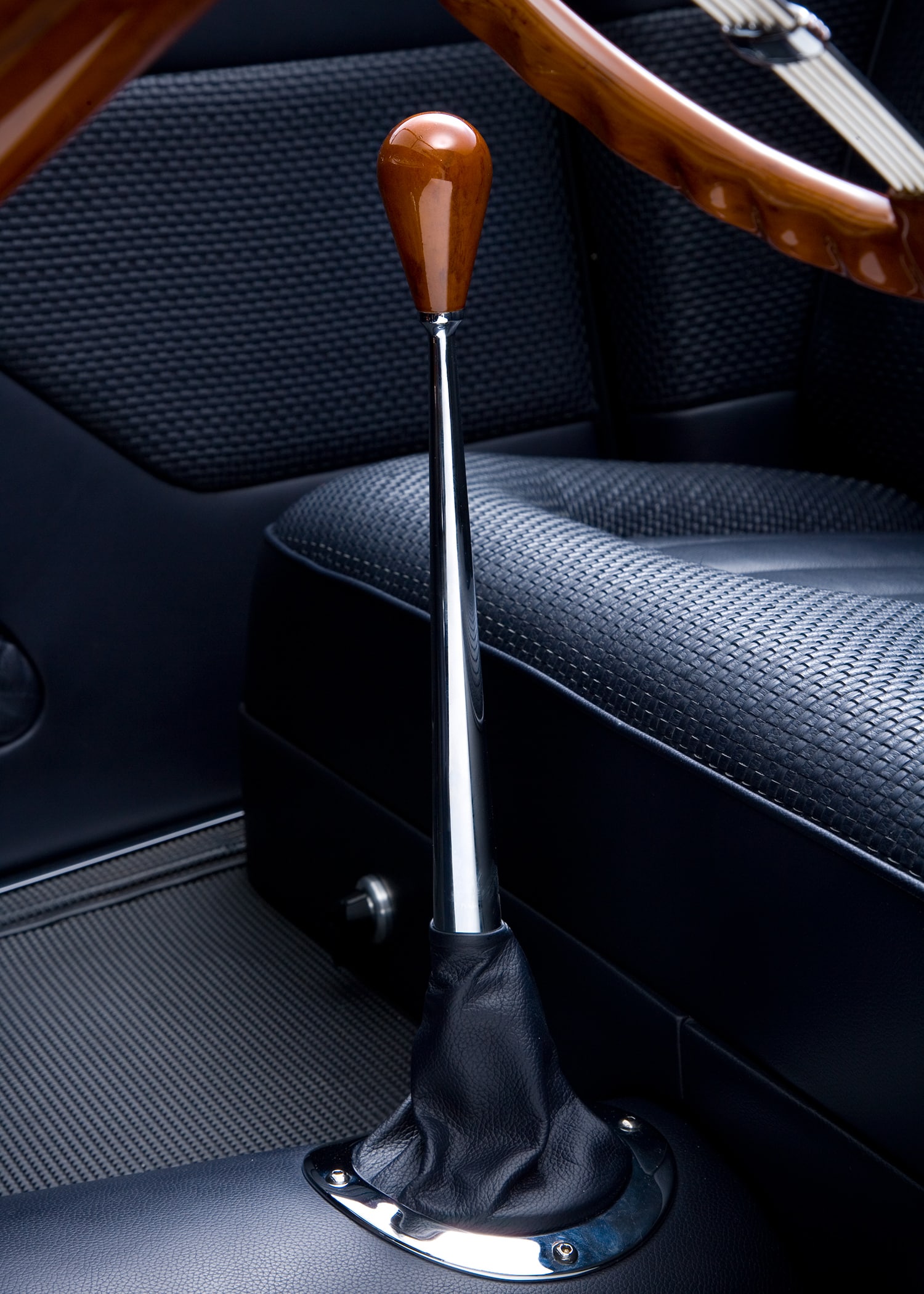 Les plus chères, ont été appelées pour la circonstance Competition Proven Black, prétenduement inspirées par la couleurnoire trouvée dans le logo CP de Holman Moody’s. Il serait difficile de calculer le nombre d’intérieurs primés que le Californien Gabe Lopez a assemblés au fil des ans, mais plusieurs centaines ne seraient probablement pas hors de propos. C’est donc ce même Lopez qui a été chargé de réaliser le job que Daryl a là aussi payé rubis sur l’ongle.Lopez a utilisé du cuir dans un pli horizontal pour les sièges baquets personnalisés et un pli diagonal dans les panneaux de porte, ce qui a ajouté selon lui un peu de sensation européenne au concept (sic !). Une combinaison de moquette allemande “à armure carrée” et de cuir a été sélectionnée au plus cher possible pour recouvrir ce qui devait l’être avec du cuir recouvrant le tunnel de transmission et la console centrale personnalisée.