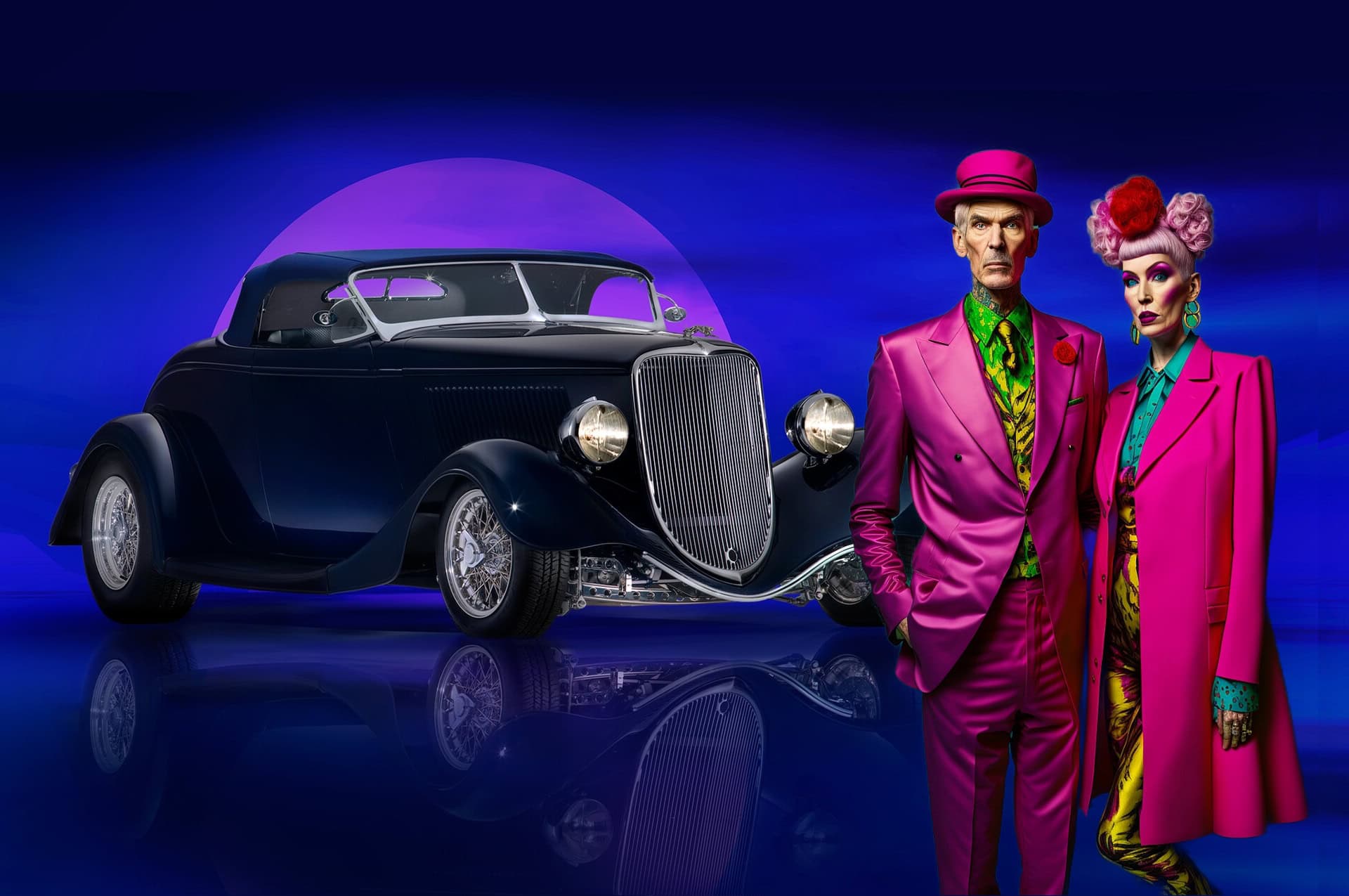 Alors, quoi donc écrire qui vous fasse palpiter à voir les photographies illustrées de couples décalés que vous ne rencontrerez jamais tout comme vous ne croiserez nulle-part le Hot Rod mis en vedette dans cette chronique… C’est ici que mes confrères survivants singent leurs confrères disparus en créant des textes débilitants et ennuyeux sur des détails inutiles, qui sont à mon sens la raison du désintérêt des masses envers le Hot Rodding classieux… Qu’un dénommé Cole, était intéressé à se faire construire un Hot Roadster alors que tout juste entré à l’université, et qu’il a conclu un accord avec son père selon lequel, s’il payait le Hot Rod dont il rêvait pour baiser les nananas, il le rembourserait une fois sa carrière lancée. Cela dénote le pourrissement de la société “supérieure” américaine qui duplique les parodies cinématographiques américaines des fifties et sixties, le style Elvis Presley guimauve…