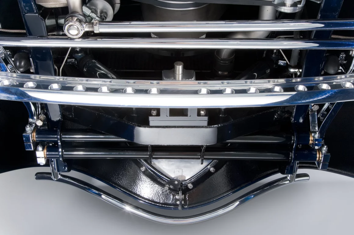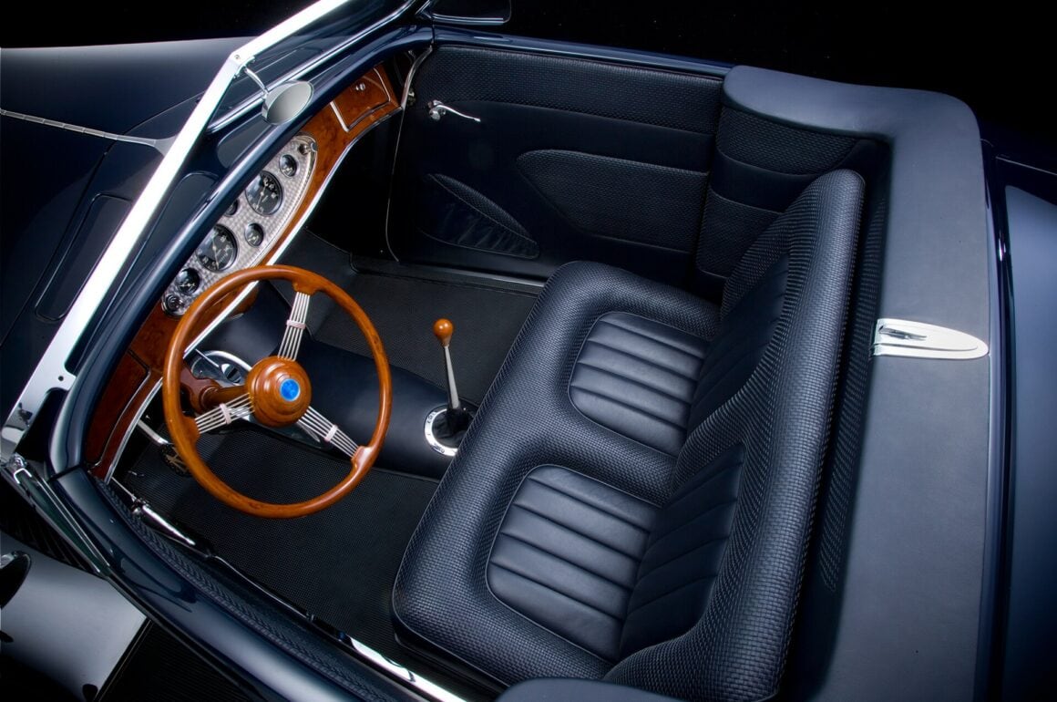 Dans les cas de ce Hot Rod classieux, c’est la norme, le père de ce Cole, qui se nomme Daryl a rencontré Drew Backlund de Drew’s Marine à Spokane USA, qui oeuvrait avec la célèbre équipe de course Holman Moody (H/M), avait encore de nombreuses pièces de moteur et pièces restantes du programme Boss 429 de H/M, qui étaient utilisés dans les courses NASCAR en 1969 et 1970. Une fois que Daryl a vu le moteur, il a su qu’il était bon pour le Hot Rod de son fils Cole, et l’étincelle du projet s’est allumée. Daryl et Cole voulaient à l’origine acheter un Hot Roadster de chez Kugel Komponents Muroc, mais ils avaient tous été vendus, alors Jerger le patron de cette société (On le surnomme “Squeeg”) a suggéré qu’ils utilisent le très connu et très cher Marcel DeLey pour construire une carrosserie de Hot Rod à partir de zéro. DeLey a accepté la construction si il serait payé 1 million de dollars plus divers frais annexes…