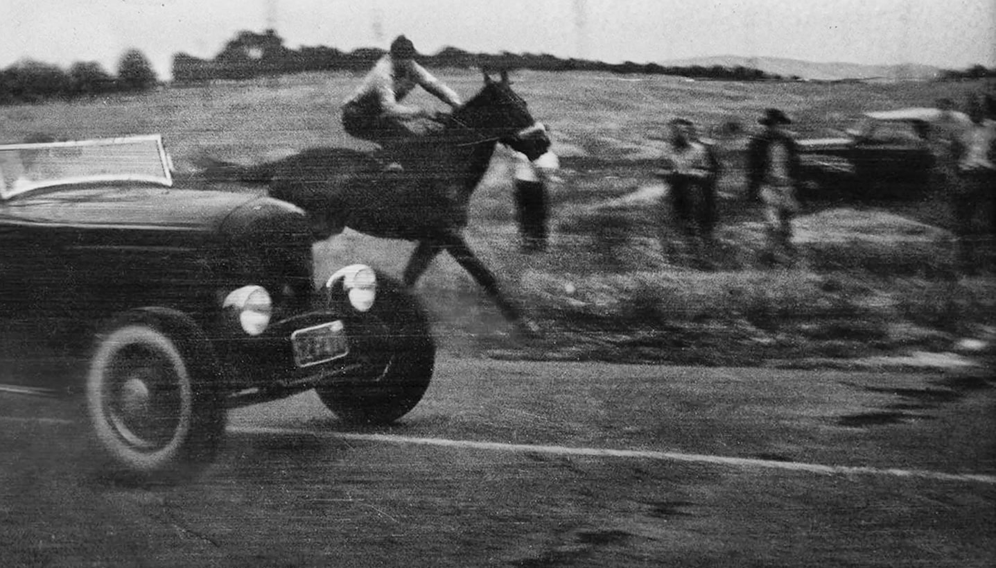 Elle montre le Hot Roadster dépassant le cheval. La photo est devenue célèbre… Le célèbre Hot roddder Ak Miller et l’écrivain fanatique des Hot Rods, Gray Baskerville, ont toujours affirmé que cette course est l’origine des courses de dragsters en 1/4 de mile (400 mètres)… Du fait de cet exploit, le Hot Rod est devenu légendaire…. Elle mérite d’être contée. Quelques mois plus tôt, Pete Henderson, âgé de 18 ans, avait acheté la Ford Speedy ’32 de Don Casselman.
