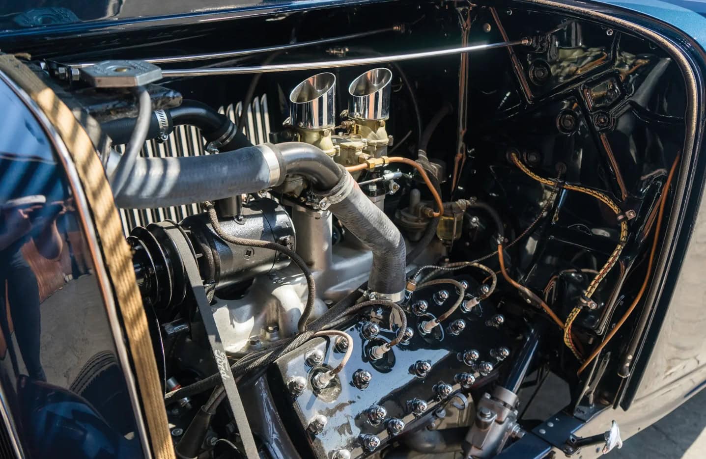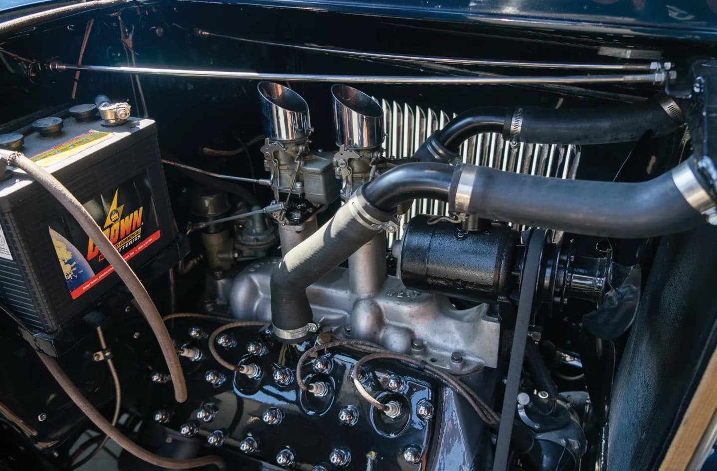 Elle était équipée d’un V8 Flathead de 296ci reconstruit par Don Blair avec des culasses “Mercury-Denver” en aluminium fraisé, un double collecteur d’admission Weiand équipé de deux carbus Stromberg 97 et d’un allumage à double bobine et double point Spaulding, complétaient les modifications du moteur. Typique des premiers Street Hot Roadsters de cette époque, il avait une capote soigneusement coupée, mais conservait les freins mécaniques.
