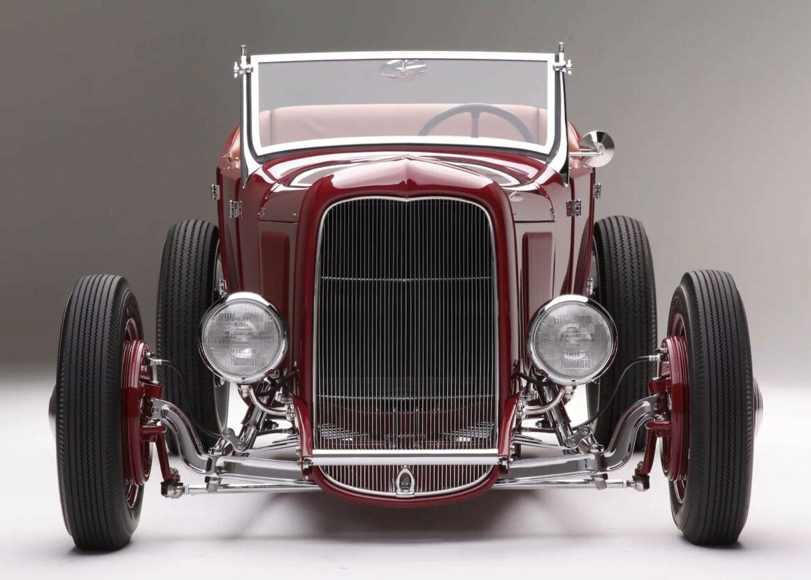 Il comprenait la carrosserie non modifiée et le châssis d’origine. Les ailes étaient également incluses, mais le plan de Jamie nécessitait un Highboy. Il avait également d’autres changements en tête, mais ils ont tous été faits avec ce qu’il appelle “un équilibre entre la simplicité et quelque chose de plus. Si les gens ne les remarquent pas, c’est ce que je voulais”… Un changement que les gens ne remarquent peut-être pas est le haut du bord arrière de la carrosserie, qui a été profilé pour s’adapter au reste de la carrosserie. Un autre est le pare-brise personnalisé, construit à l’aide de montants de roadster de 1936, et d’un châssis rétréci et modifié pour s’adapter au capot 1927 remodelé. Le haut et les côtés de la Deuce ont également été reproportionnés. Les changements les plus notables incluant la calandre de 1932 avec un insert Dale’s Manufacturing, avec des phares Guide 682 et des feux arrière Ford 1937.