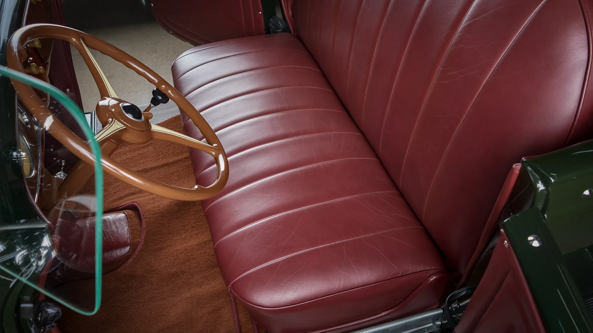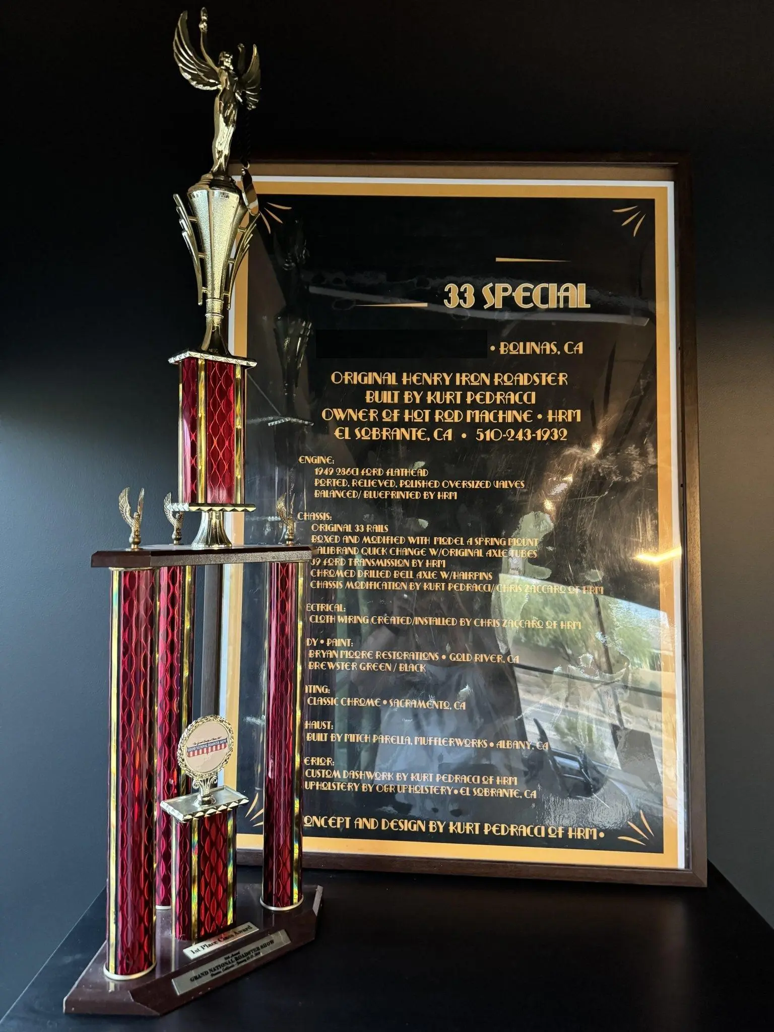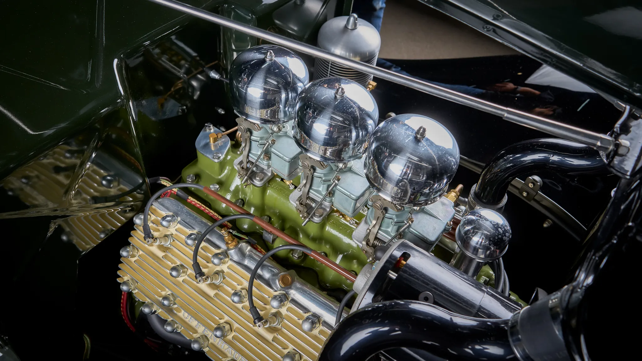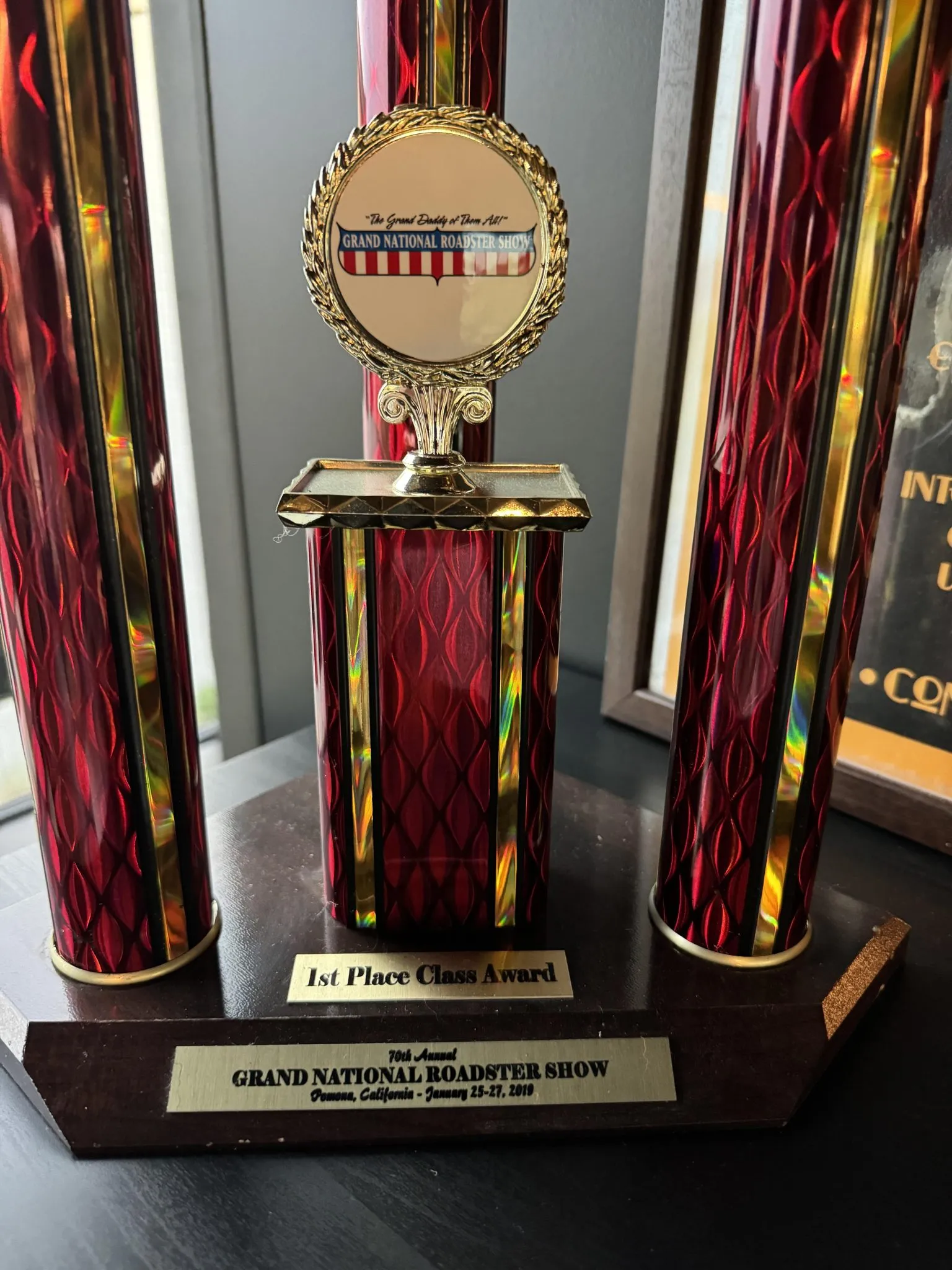 Parmi les autres détails, je vous cite une sellerie en cuir bordeaux, des jantes à rayons de 16 po décalées montés de pneus Firestone à flancs blancs de 4,50/4,75 à l’avant et de 6,50 à l’arrière, des freins à disque Wilwood avant dissimulés, un essieu arrière à changement rapide Halibrand et une transmission manuelle à trois vitesses. La voiture a reçu une 1ère place au Grand National Roadster Show 2019. Le volant peint à trois branches encadre un compteur de vitesse Peterson et des compteurs auxiliaires pour la pression d’huile, la température du liquide de refroidissement et la tension de charge. Voilà, voilou etc… L’article se termine, vous allez pouvoir y réfléchir, le relire et “en causer” avec d’autres pour savoir à quel niveau, à quel barreau de l’échelle, vous vous situez afin d’en causer encore et encore… @Pluche…