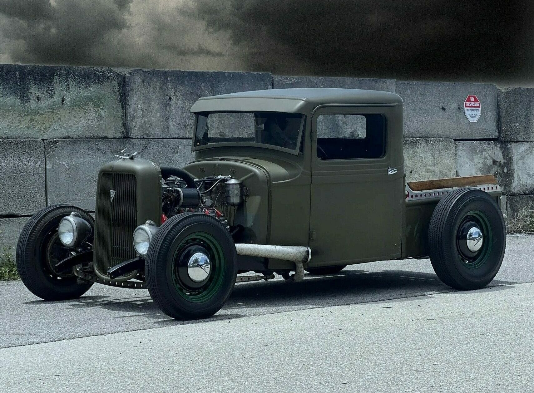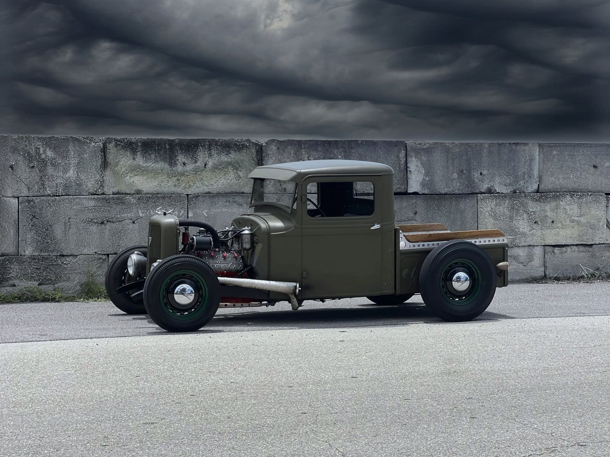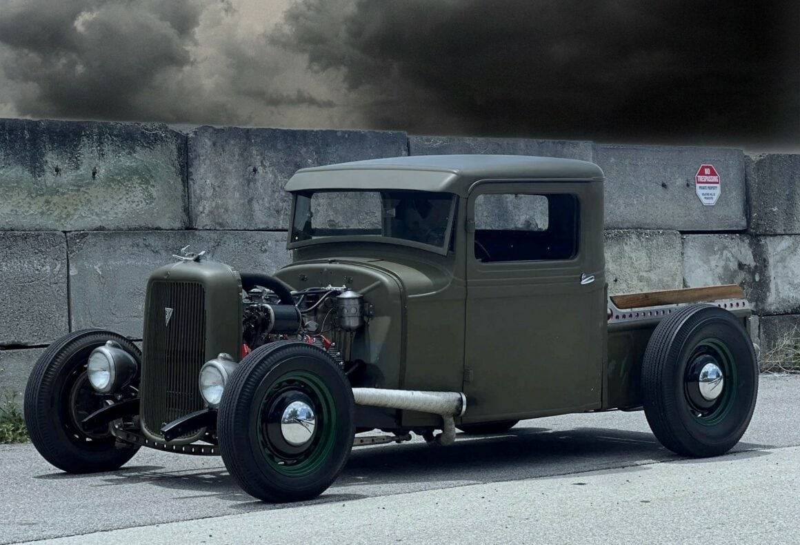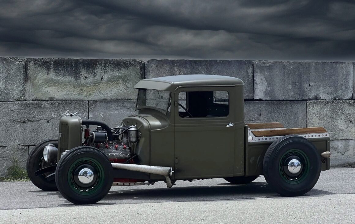 Prenez un Double Dolviran et une bouteille de Chivas et laissez vous porter par le néant : “Construit entre 2007 et 2010 et acquis par Steve Blutch en 2023, ce hot rod ’34 est maintenant en Floride avec des disques et un titre propre de l’Arizona. La carrosserie en acier haché provient d’un pick-up modèle B de 1934, haché et canalisé, et finie en vert olive. La caisse raccourcie est dotée de rails percés avec des barils peints en rouge et des accents de bois. Un radiateur personnalisé est dissimulé derrière la calandre de 1934 surmonté d’un ornement de style imitation, et des phares de style Guide ont été installés”… Ca va ? Vous tenez le coup sans vomir ?