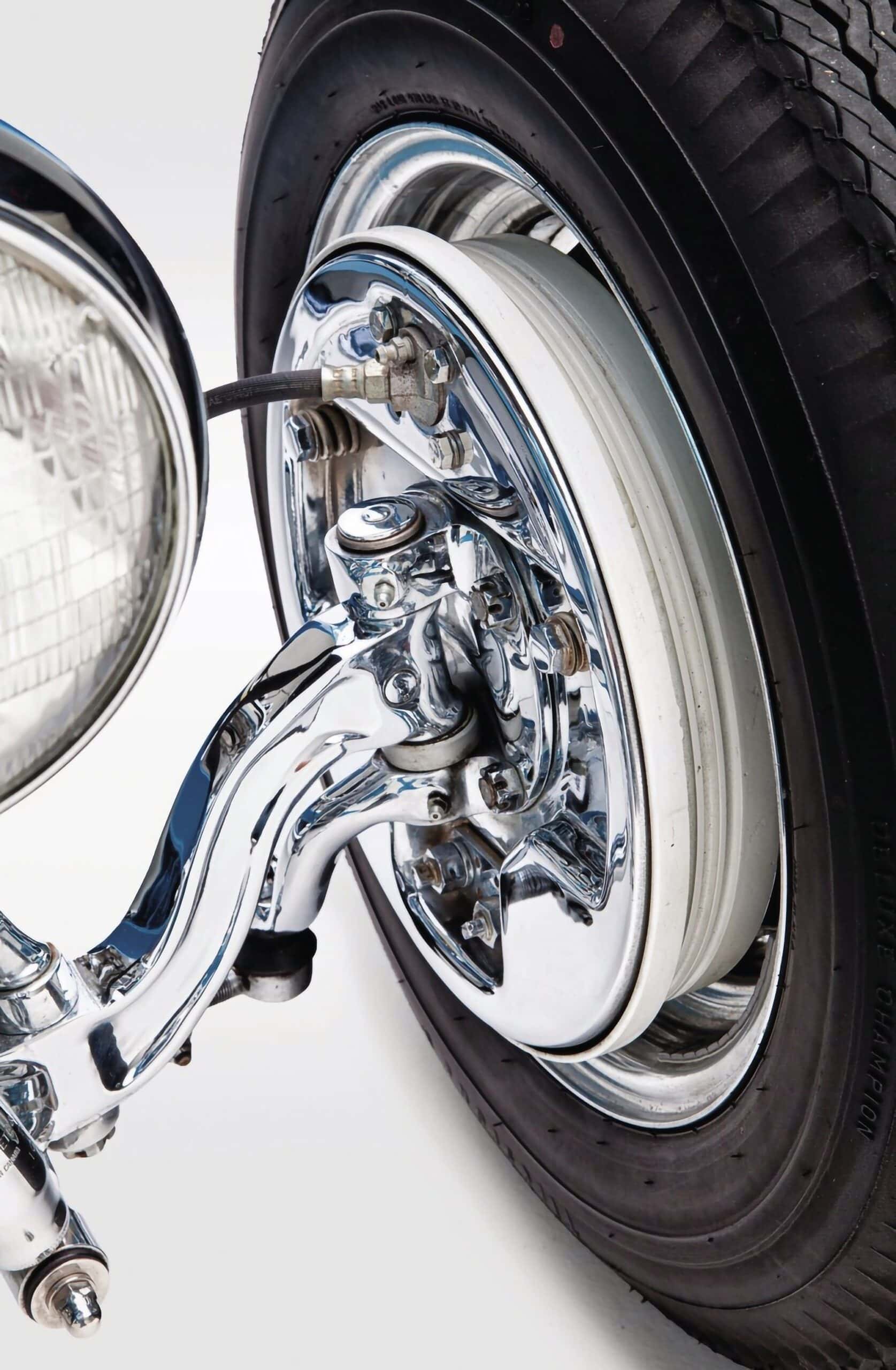 Pour commencer, un boîtier de direction F-1 a été localisé, suivi d’un Halibrand Culver Citymodel issu d’une vieille voiture de course Midget locale découverte dans la ville voisine de Manchester. Une paire de traverses de Ford model A et un tableau de bord de camion de 1933 complétaient certains des incontournables du Hot-Rod. Pour couronner le tout, Terry a négocié à vil prix un ensemble de compteurs Duplex (chéries pour les Rod’s 1931). Enfin, une paire de sièges Glide ont été découverts, ainsi que plusieurs styles de phares différents, dans un Swap-Meet de Boston. Le moteur de ce projet s’est ensuite avéré être un facteur de rupture…