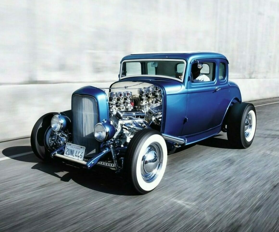 Terry a trouvé ce qu’il cherchait dans un Coupé déjà modifié de 1931 qui avait été transformé en Hot-Rod façon sud de la Californie d’une ancienne époque. Il a payé et reçu le Hot-Rod comme si c’était un gadget de manège de foire (ailes pleines, essieu “tombé” à l’avant et arborant un ensemble de “Louvers” sur les flancs des panneaux avant). Le Rod avait également subi plusieurs autres modifications typiques de l’époque, y compris des freins “à jus” de 1940 et une calandre de 1932 coupée en biais pour s’adapter. La voiture n’avait ni moteur ni transmission, ce qui était très bien pour Terry qui, de retour dans l’Est, a commencé sa recherche des pièces nécessaires pour faire avancer cette construction.