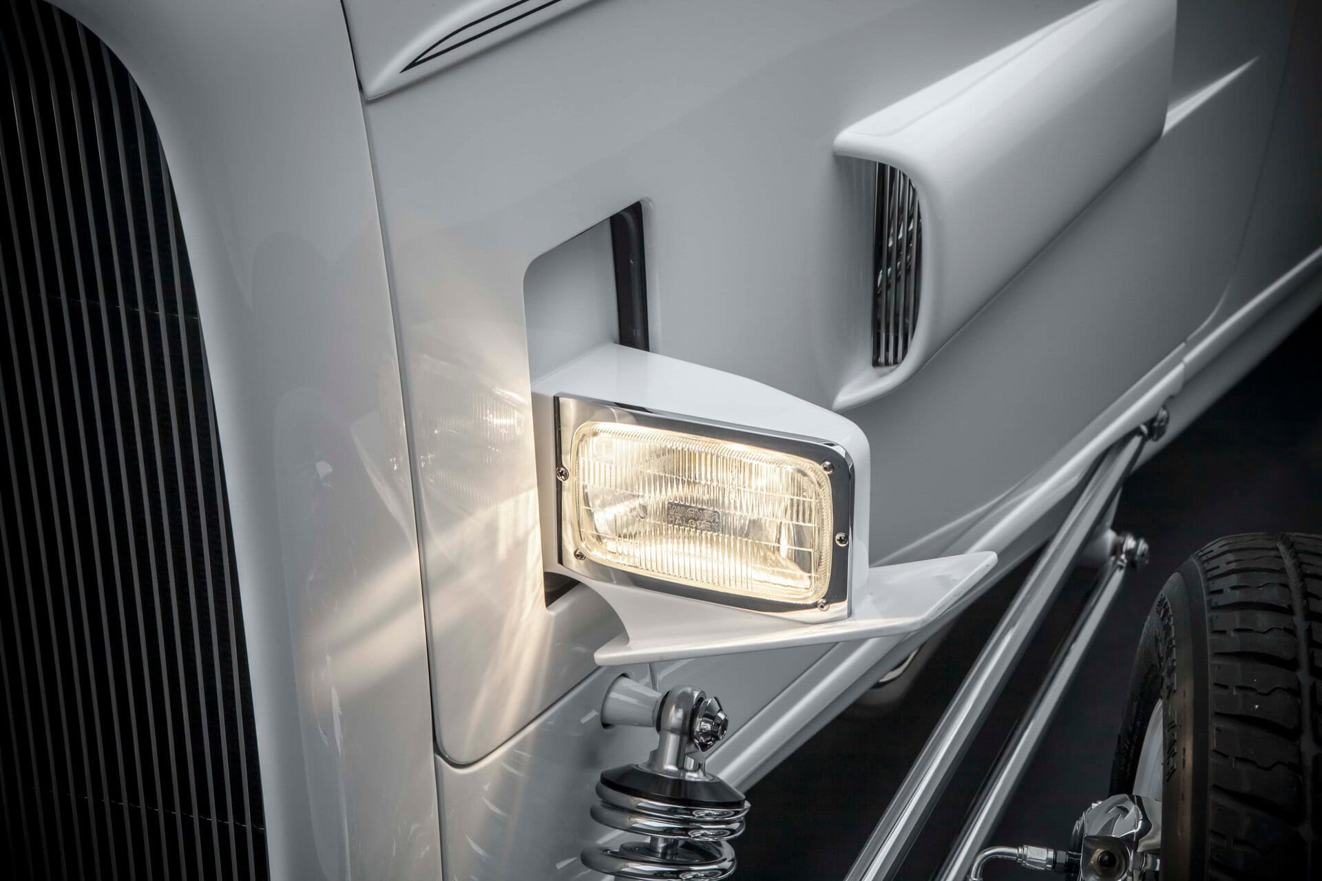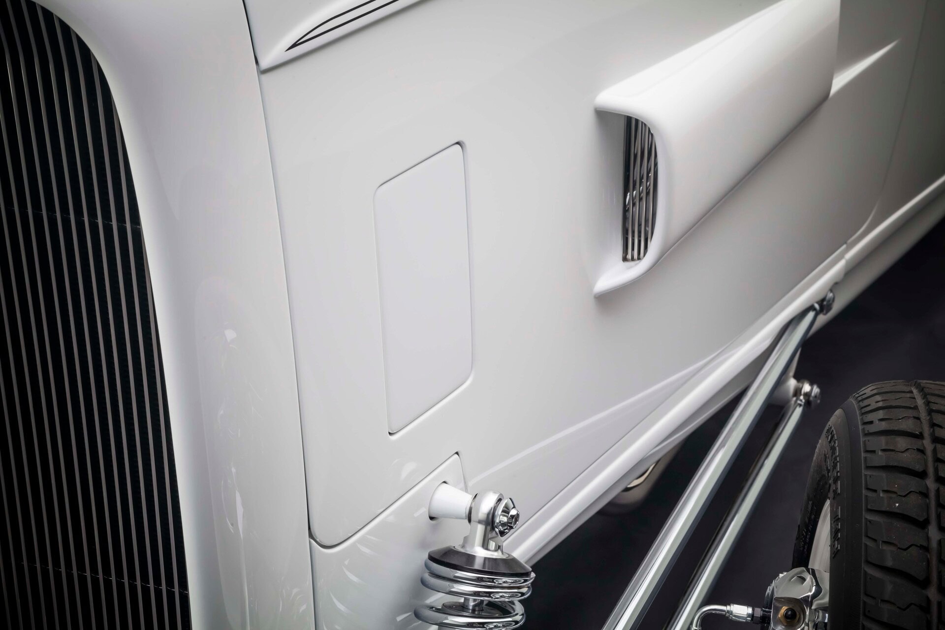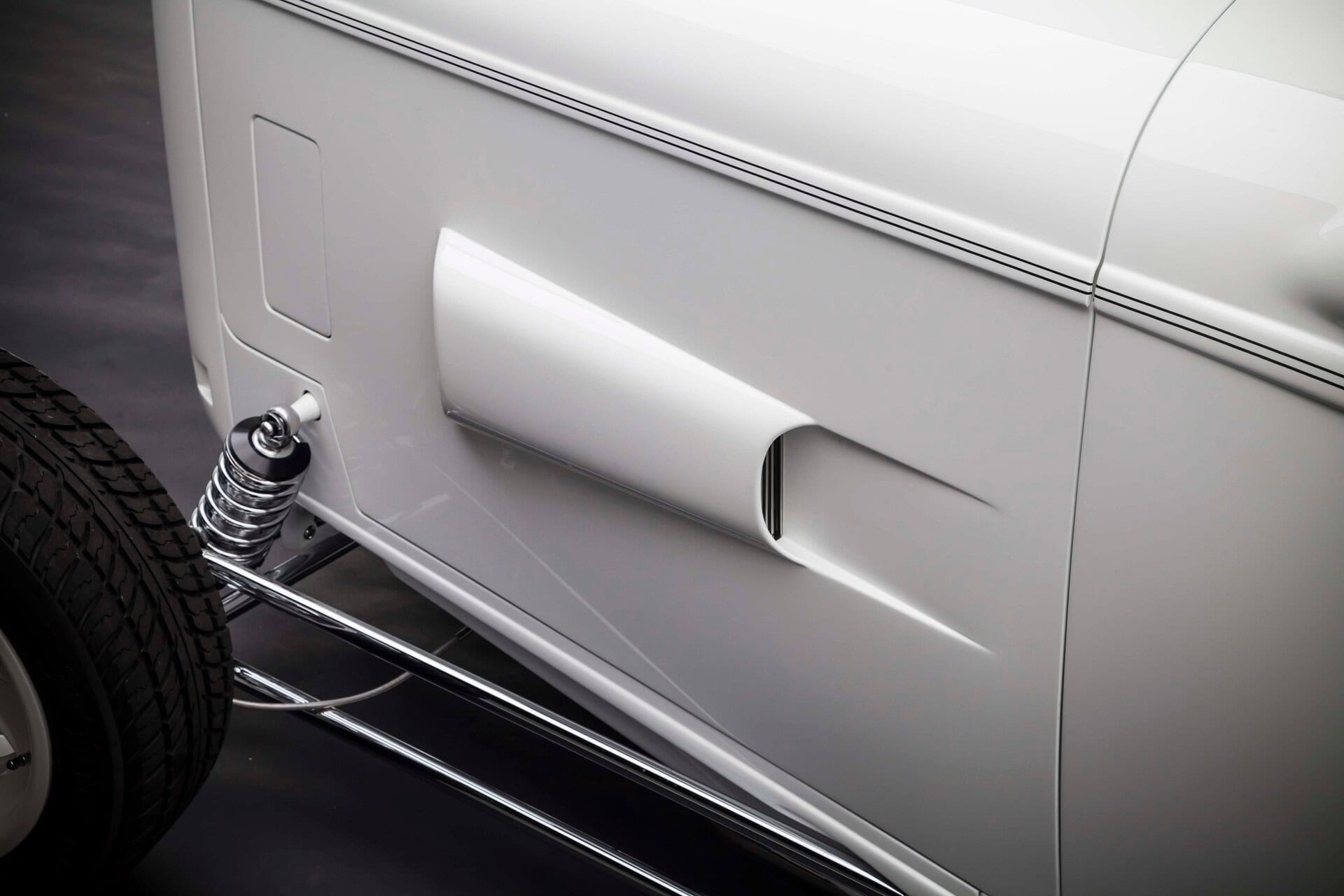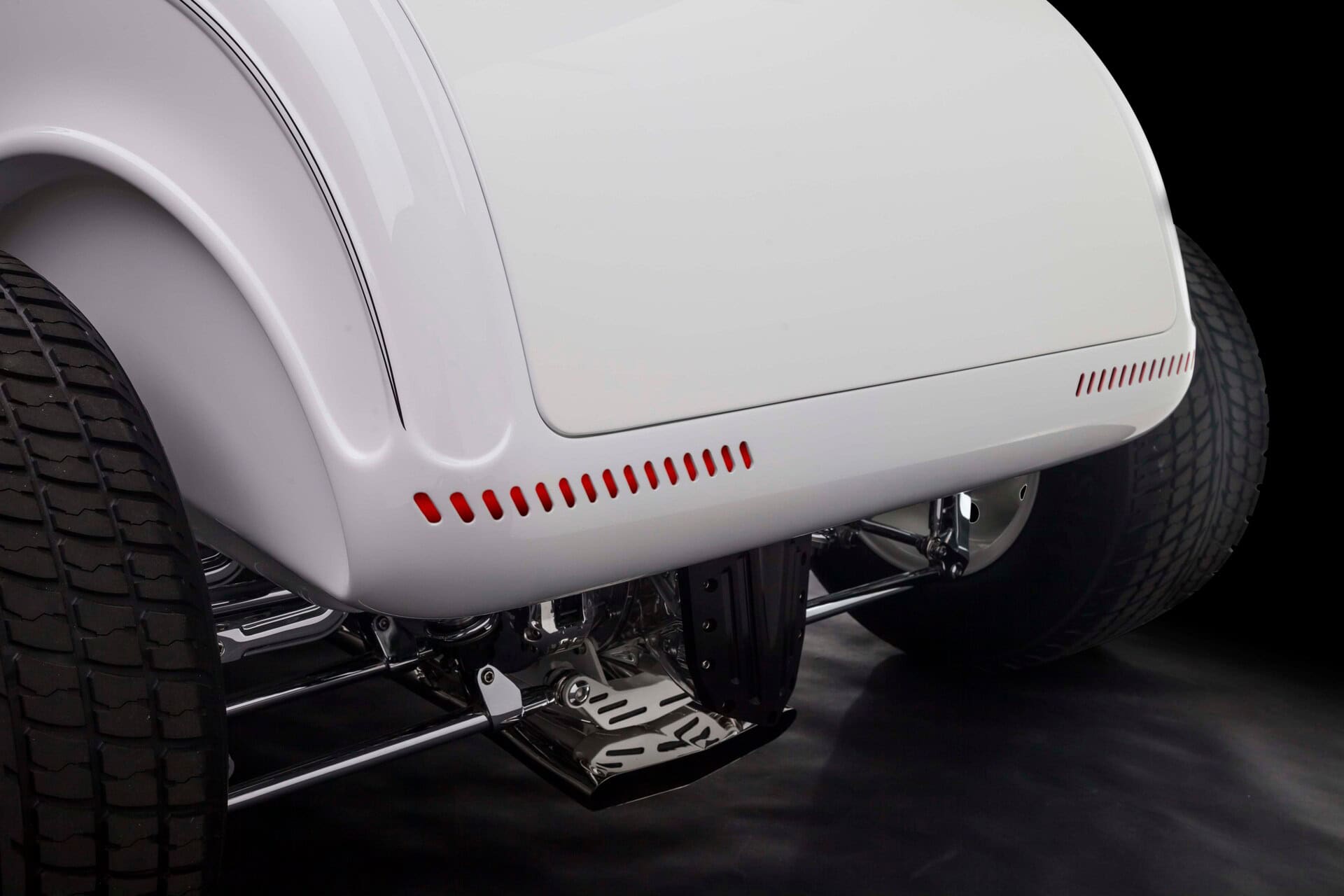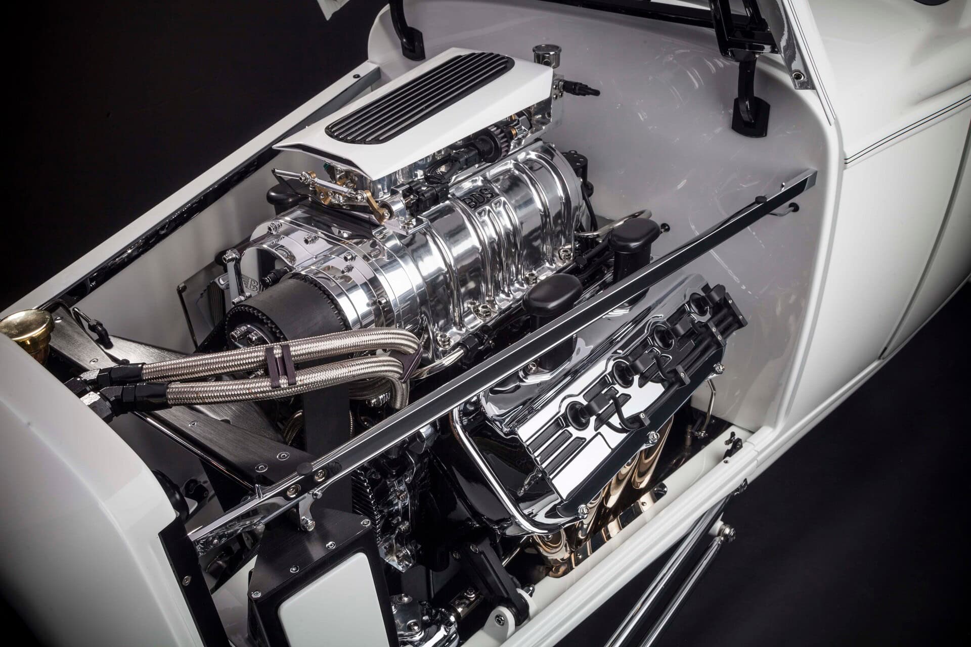 Gary a dit qu’il n’avait jamais aimé la peinture turquoise que le roadster portait lors de sa deuxième apparition en GNRS. C’était un jour heureux lorsque la voiture est sortie de la cabine de peinture de Tim’s Hot Rods, préfinie dans une peinture blanche accrocheuse, juste au moment où elle a été construite pour la première fois. La peinture est contrastée par beaucoup de chrome, réalisée chez Sherm’s Custom Plating, la société de Gary. En 2016, le Grand National Roadster Show n’était plus à Oakland depuis près de 20 ans et le roadster de Gary n’avait pas participé à l’événement depuis 25 ans.