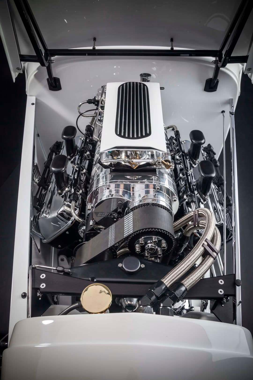 Mais lorsque Gary Matranga a conduit son Hot Rod high-tech restauré dans le Fairplex du comté de Los Angeles pour son troisième GNRS, c’était comme un retour aux sources. Aujourd’hui, la voiture est exposée dans la collection de Gary. Le moteur Hemi de 1957 a été transplanté à l’origine d’un dragster Top Fuel. Il est alimenté par un compresseur Bowers et un collecteur Weiand, avec injection Hilborn. Un allumage par magnéto Vertex donne vie au Hemi, et des collecteurs en acier inoxydable personnalisés envoient l’échappement vers des tuyaux et des silencieux personnalisés. Voilà, voilou, c’est terminé… Amen !