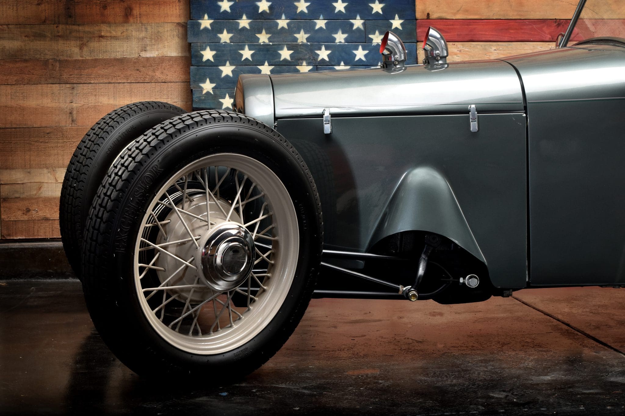 Les années ont passé et c’est maintenant Jane Berry, la fille de Steve explosé en Irak qui a hérité du Hot Rod. toujours peint dans la teinte gris métallisé réalisée par Steve qui avait placé un pare-brise fixe, des portes à charnières d’ouvertures inversées (dites “suicides”), des feux arrière à LED, des jantes à rayons beiges avec des capuchons/enjoliveurs centraux chromés montées avec des pneus Excelsior. La suspension intègre toujours des ressorts à lames transversaux avant et arrière et l’habitacle abrite les mêmes deux sièges recouverts de noir et contrastés par les panneaux latéraux (et portes) beiges.