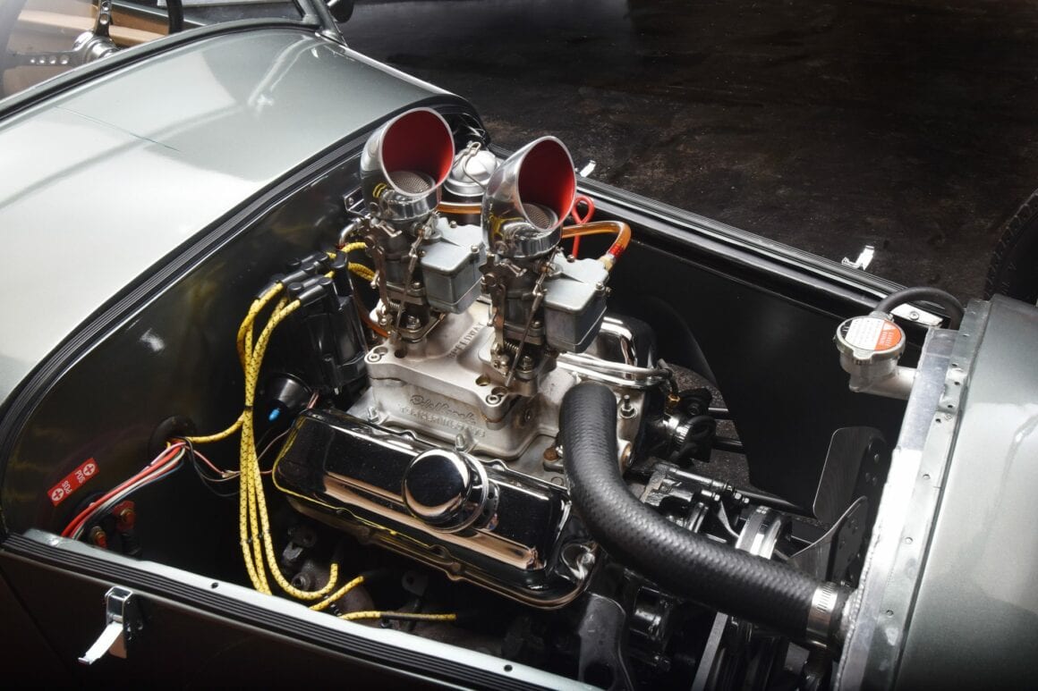 Jane regarde rêveusement, Charlie prend de belles photos et fixe le Hot-Rod hautement désirable. Il y a des jours qui ne devraient vraiment pas se terminer. Jane me dit soudain que le volant à broche démontable en un clic (pour faciliter l’accès) est à quatre branches et le tableau de bord métallique de la couleur de la carrosserie abrite un compteur de vitesse de 160 mph, un tachymètre à 8 km/min et des compteurs auxiliaires. Inutile car j’avais déjà tout vu et noté. Quoi d’autre ? “La sobriété ascétique et la philosophie du vide” me dit-elle soudain…