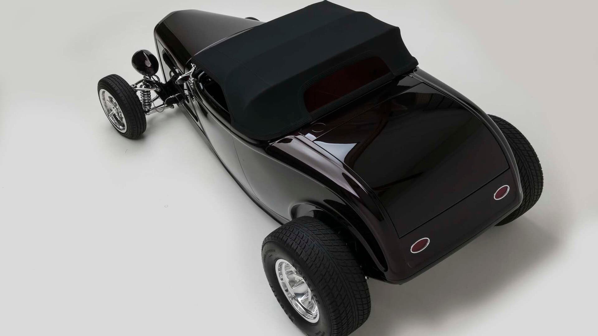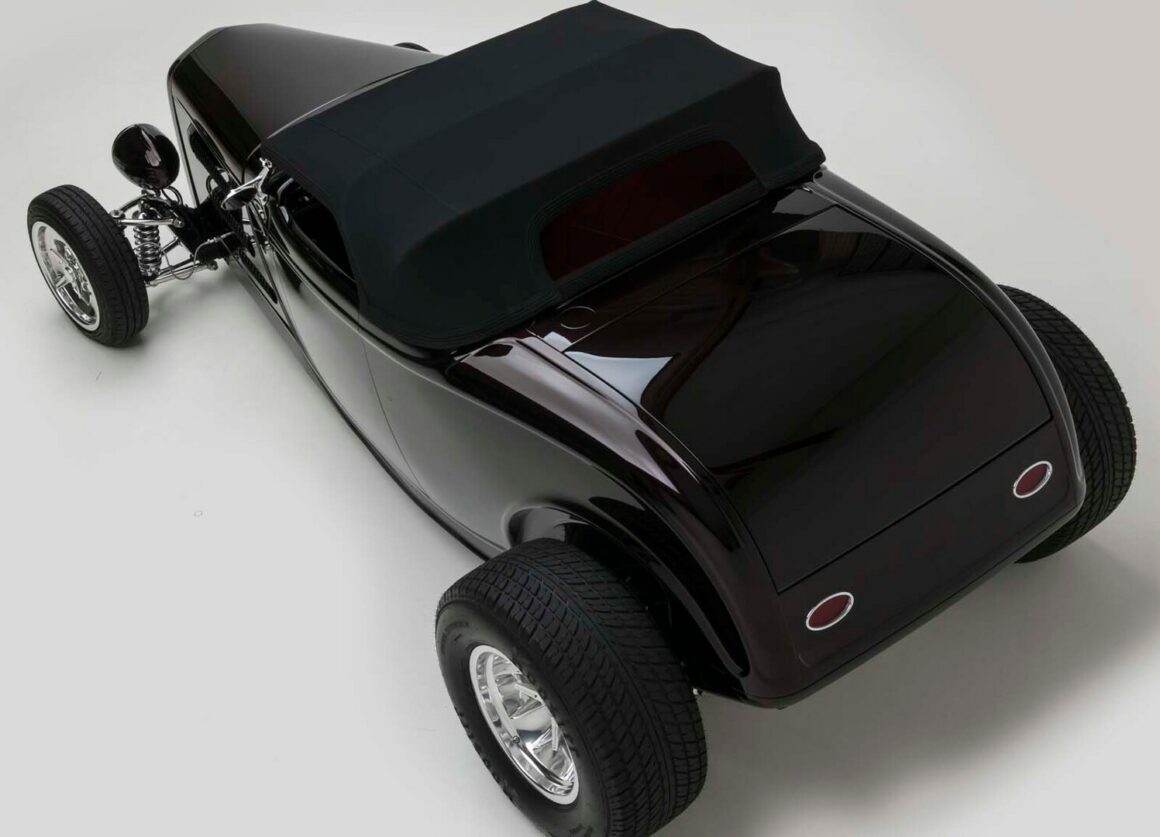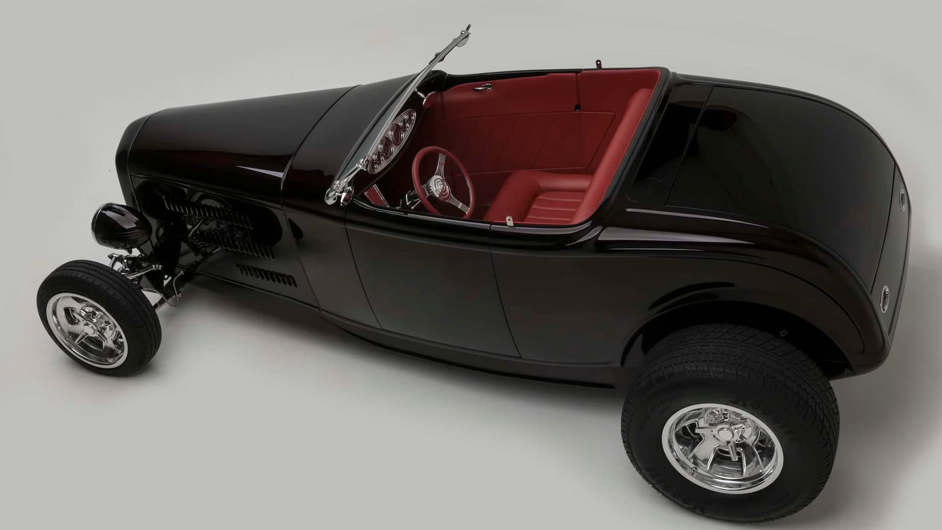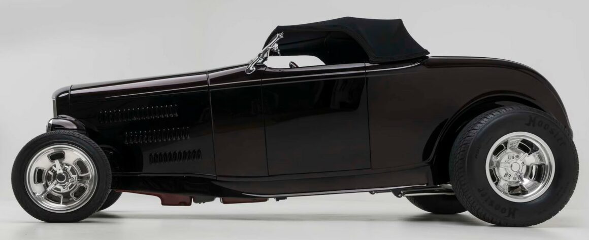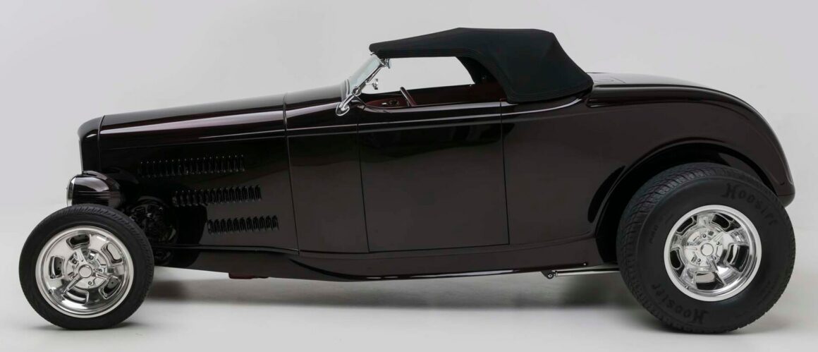 Et cela sans faire de vagues… L’arrière est un SuperMax Quick Change de Speedway Engineering avec un boîtier de style high-tech. Leonti a opté pour un combo de pneus et de jantes à l’allure agressive, en montant de gros pneus arrière Hoosier et des Continental avant de la série 155 sur des jantes American Rebel Manufacturing Sprint de 15 et 16 pouces, avec des imitations à entraînement par goupille pour compléter le look de course vintage. Leonti a ensuite rencontré Dick Rodwell, également envoyé par l’AMBR qui a contribué au pare-brise et au toit décontractés du roadster et a été la force motrice pour s’assurer que le roadster avait la bonne position, ce qui fait ou défait un Hot Rod Ford’32.