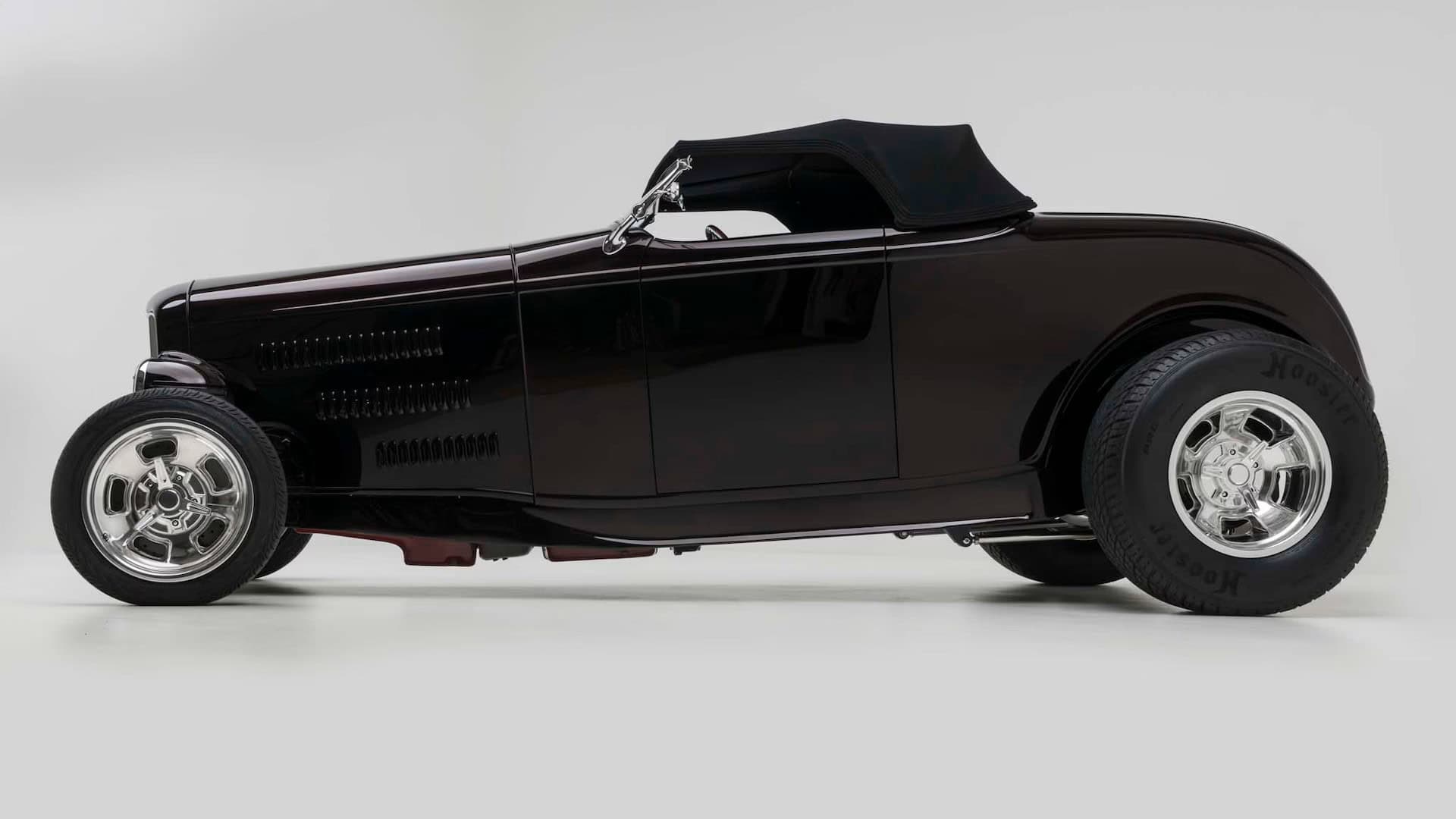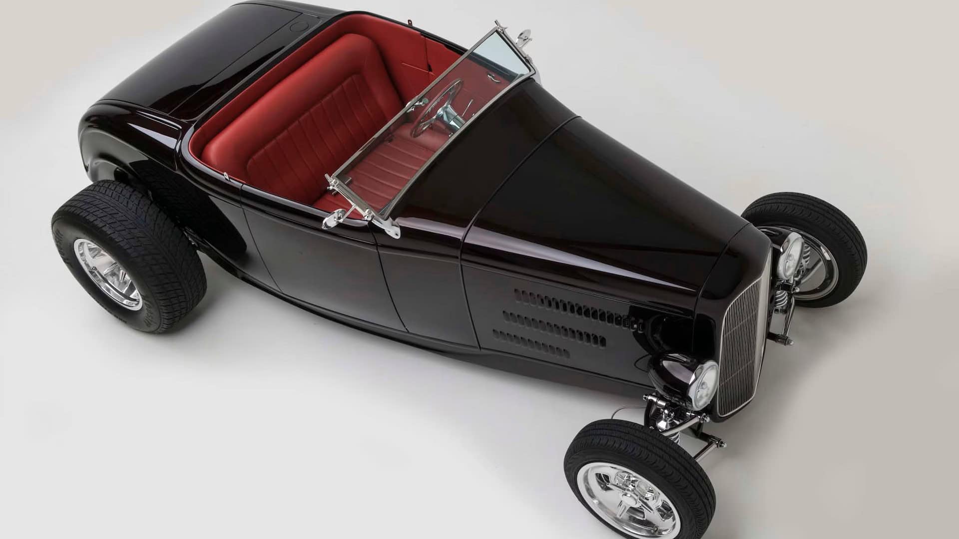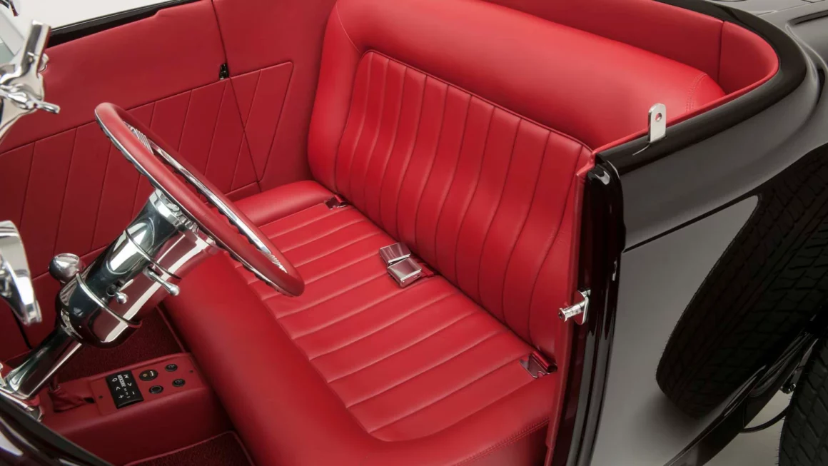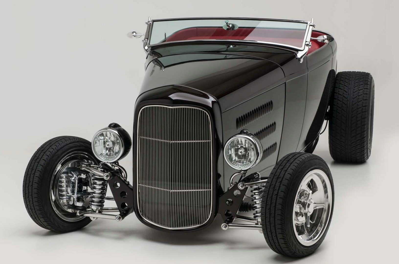 Et cela sans faire de vagues… L’arrière est un SuperMax Quick Change de Speedway Engineering avec un boîtier de style high-tech. Leonti a opté pour un combo de pneus et de jantes à l’allure agressive, en montant de gros pneus arrière Hoosier et des Continental avant de la série 155 sur des jantes American Rebel Manufacturing Sprint de 15 et 16 pouces, avec des imitations à entraînement par goupille pour compléter le look de course vintage. Leonti a ensuite rencontré Dick Rodwell, également envoyé par l’AMBR qui a contribué au pare-brise et au toit décontractés du roadster et a été la force motrice pour s’assurer que le roadster avait la bonne position, ce qui fait ou défait un Hot Rod Ford’32.