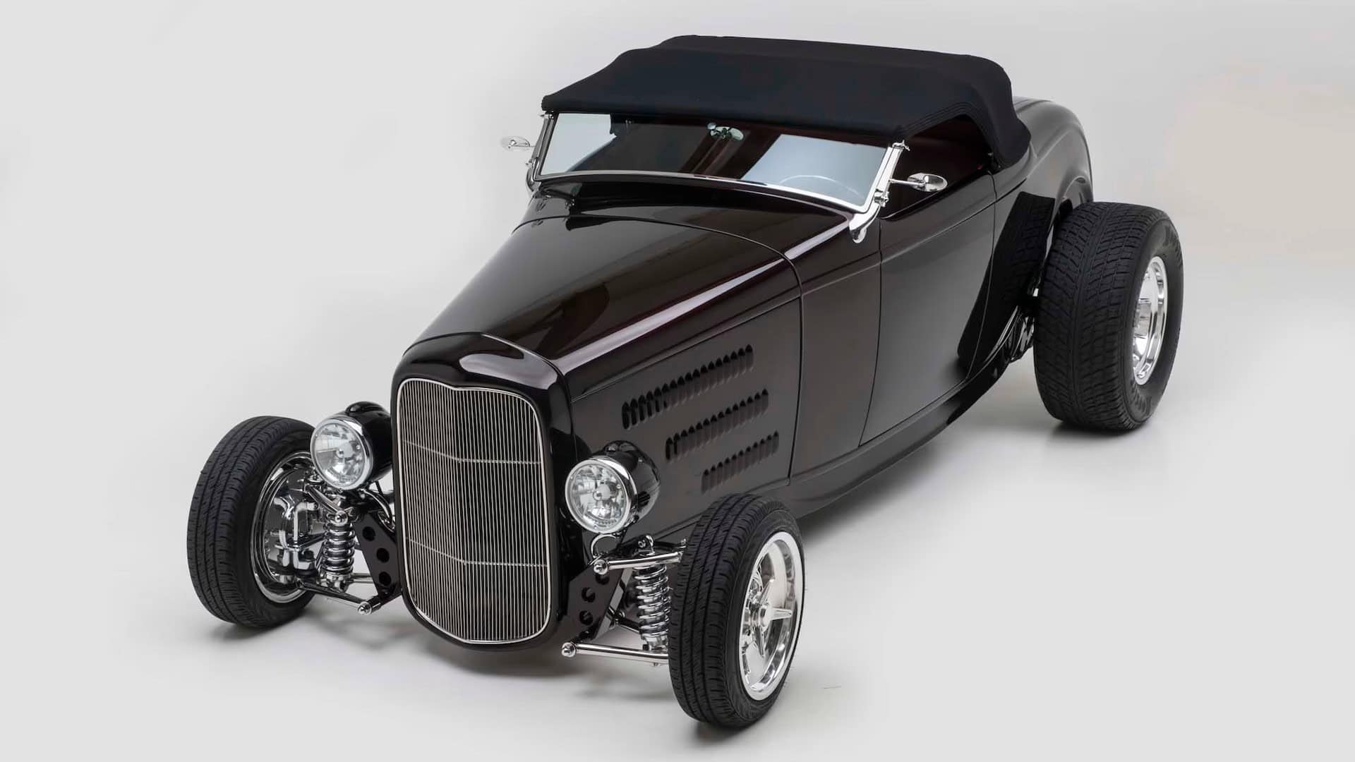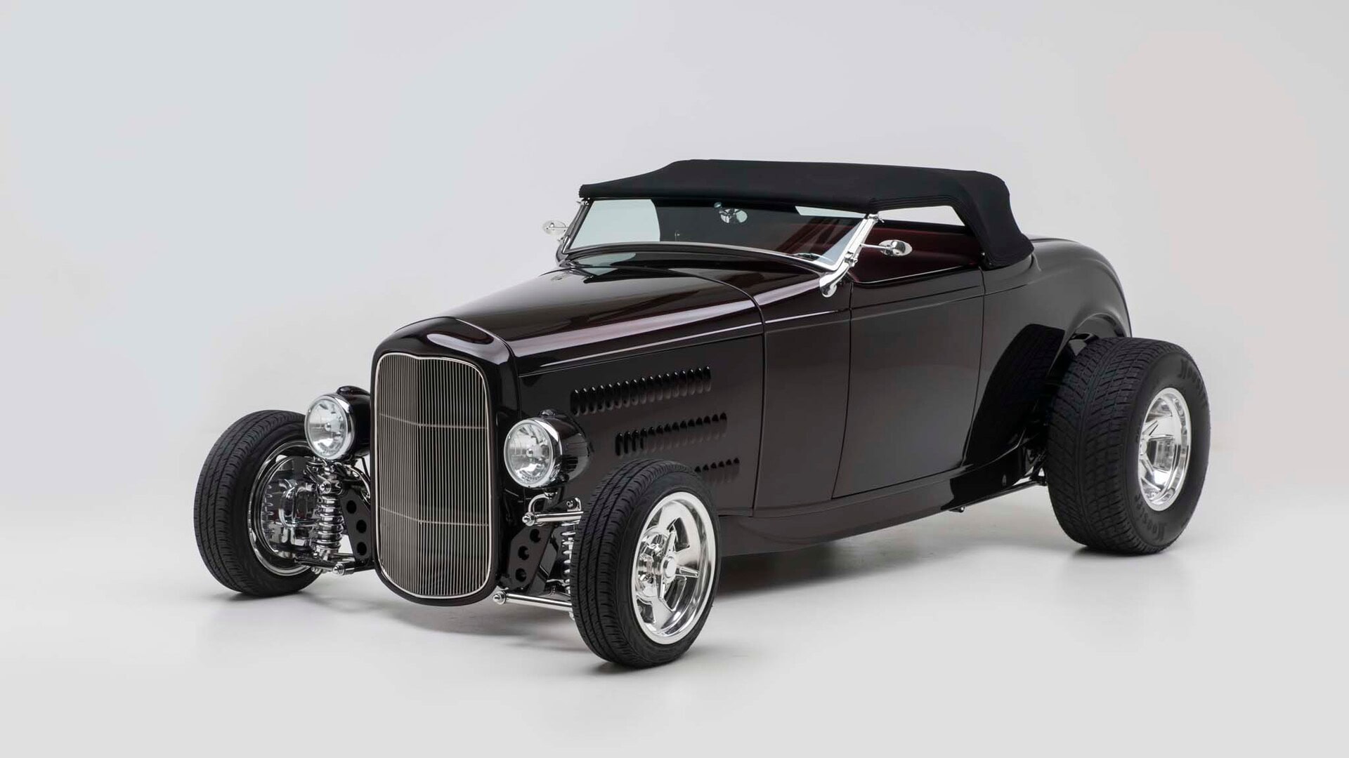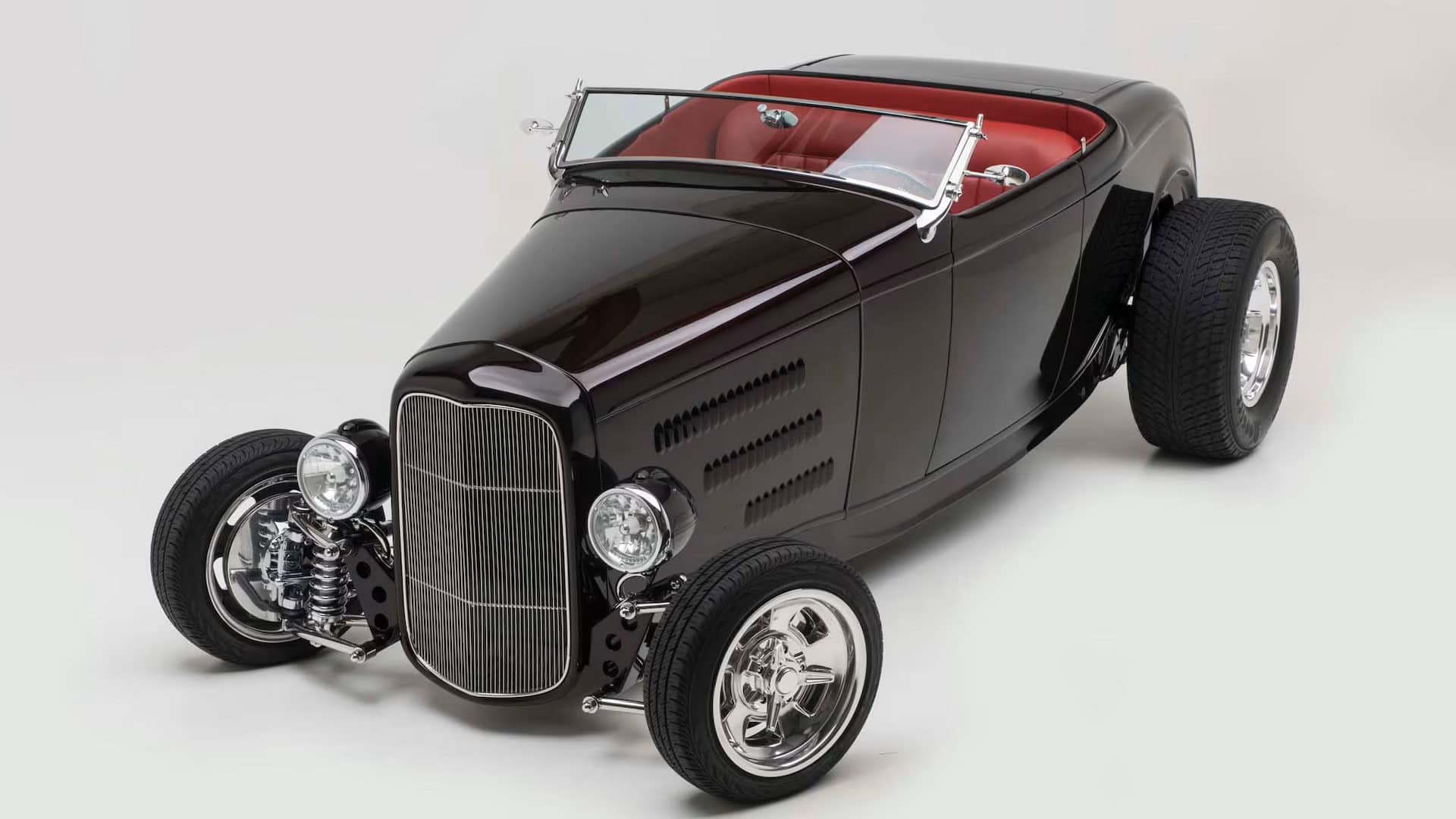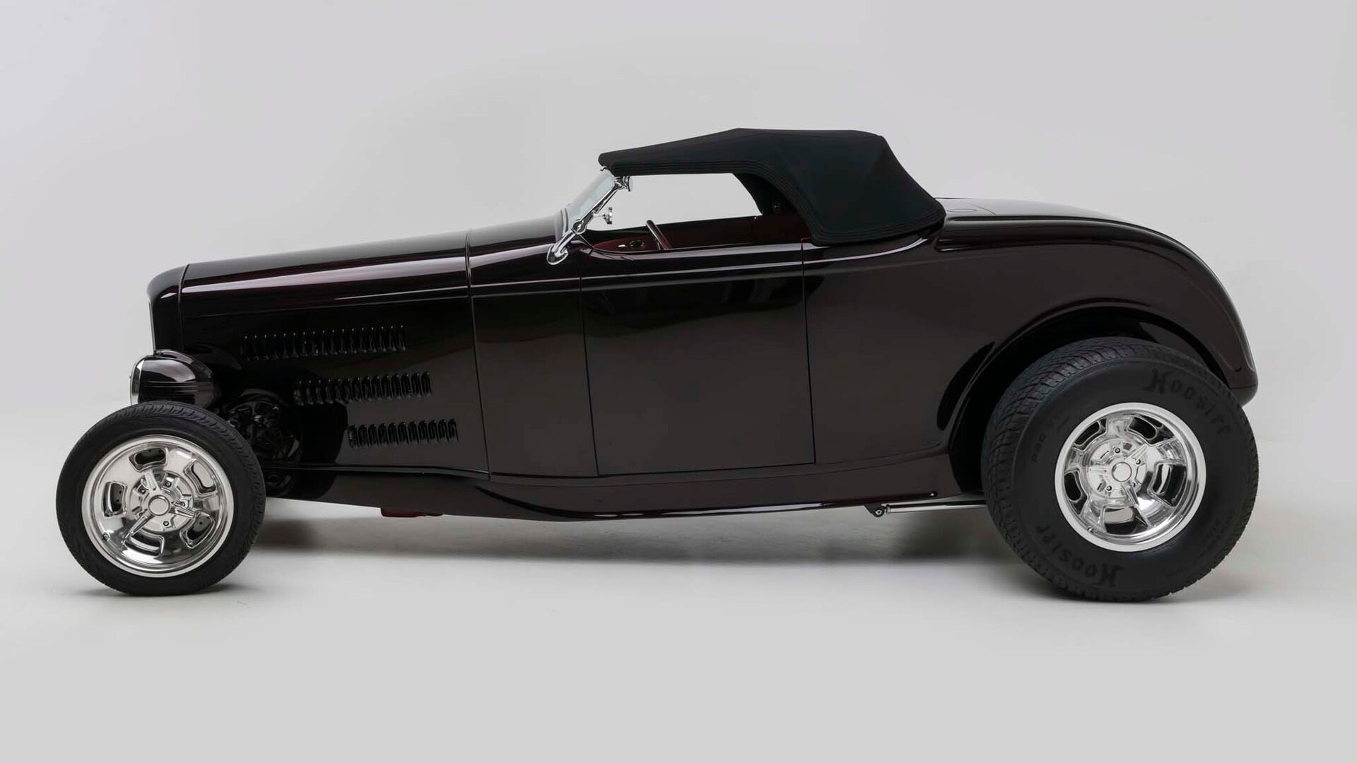Et cela sans faire de vagues… L’arrière est un SuperMax Quick Change de Speedway Engineering avec un boîtier de style high-tech. Leonti a opté pour un combo de pneus et de jantes à l’allure agressive, en montant de gros pneus arrière Hoosier et des Continental avant de la série 155 sur des jantes American Rebel Manufacturing Sprint de 15 et 16 pouces, avec des imitations à entraînement par goupille pour compléter le look de course vintage. Leonti a ensuite rencontré Dick Rodwell, également envoyé par l’AMBR qui a contribué au pare-brise et au toit décontractés du roadster et a été la force motrice pour s’assurer que le roadster avait la bonne position, ce qui fait ou défait un Hot Rod Ford’32.