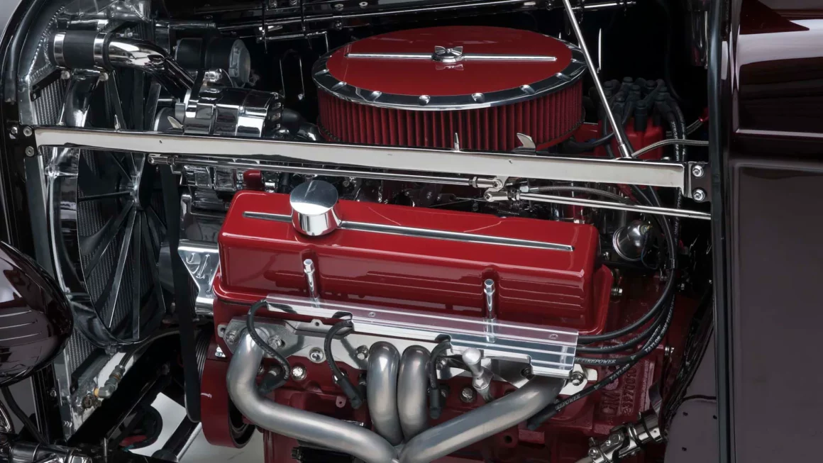 Le filtre à air et les couvercles de soupape de la série Streamline de Billet Specialties ont été peints en conséquence. Leonti quand même un peu contribué à l’affaire pour au moins avoir des photos formant preuve, il a ainsi modifié les collecteurs Sanderson, coupant la bride à trois boulons, et quoiqu’un soudeur compétent a refabriqué l’échappement à partir de tubes en acier inoxydable de 2 1/2 pouces, installé des découpes d’échappement et une paire de silencieux SpinTech 3000XL…. Bowtie Overdrives à Hesperia, en Californie, a assemblé la transmission GM TH700R4 qui soutient le moteur. L’intérieur de niveau AMBR est simple mais méticuleusement fini. Ron Mangus Hot Rod Interiors ont fait un travail extraordinaire.