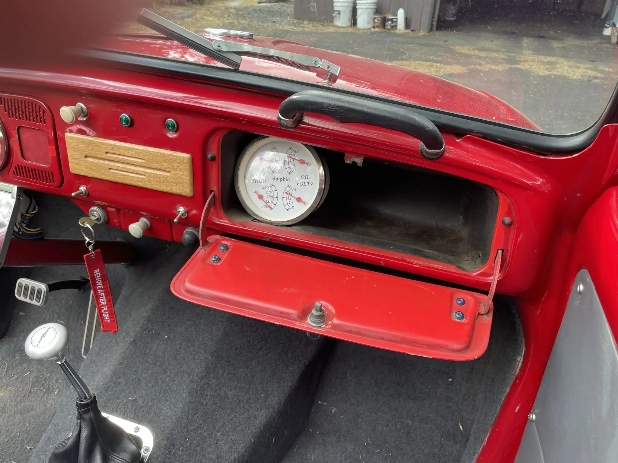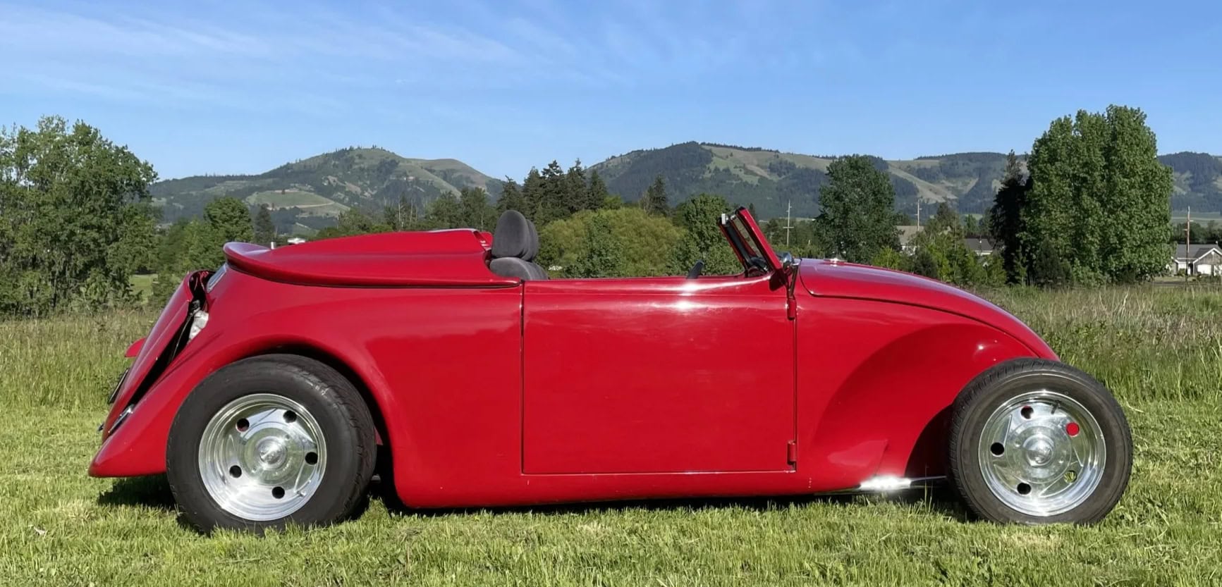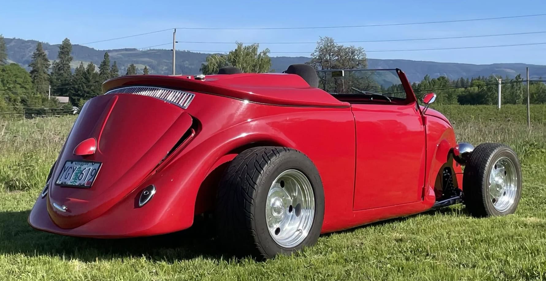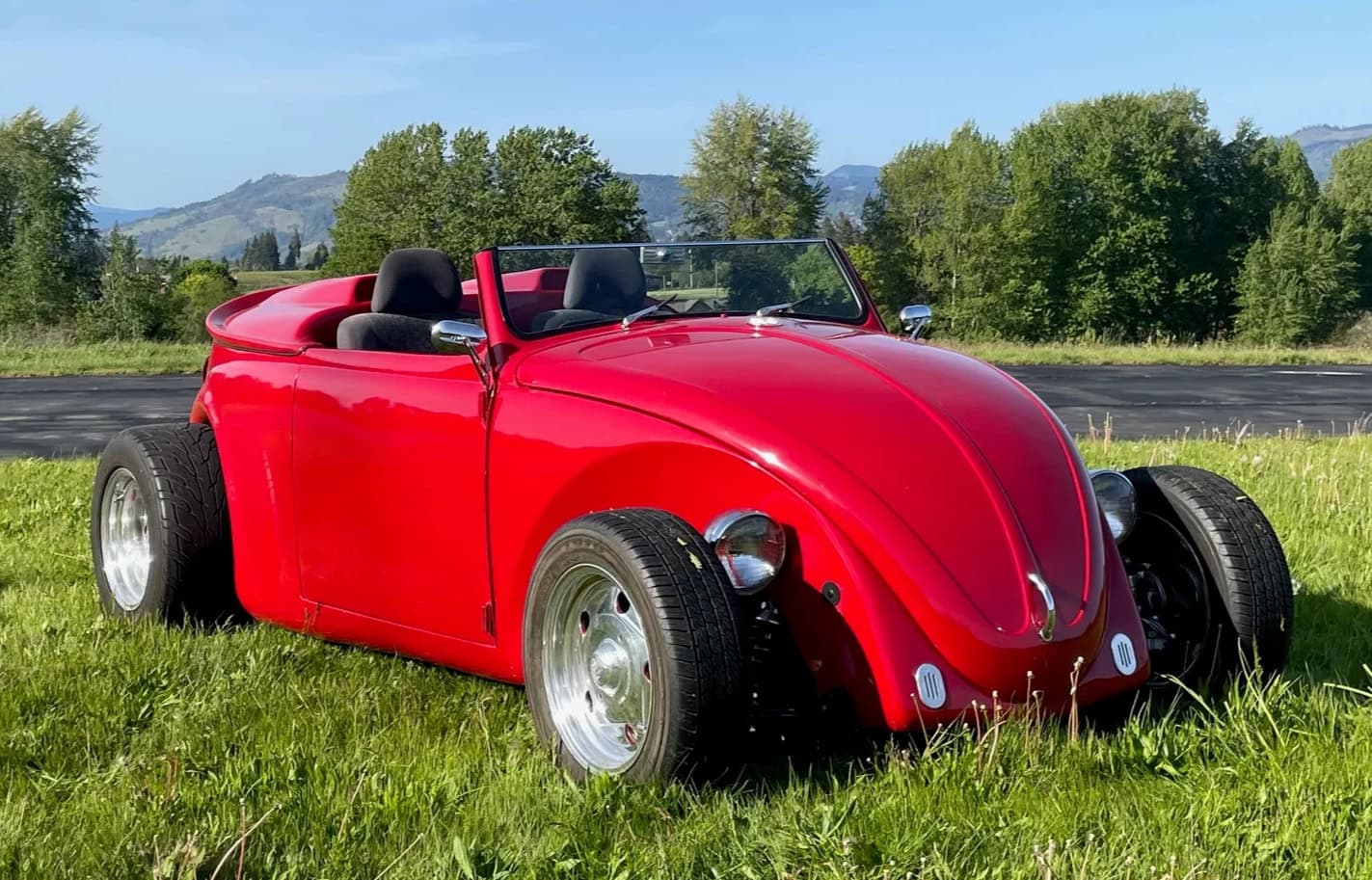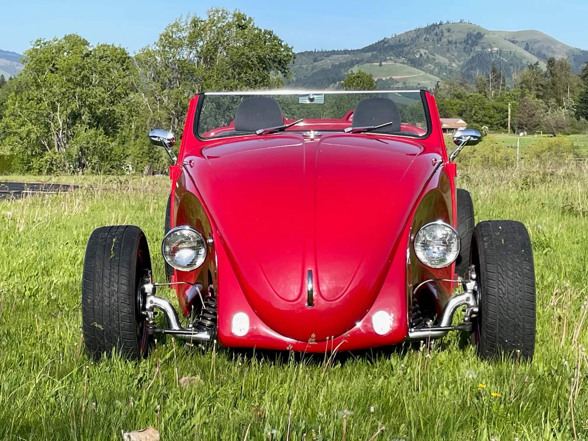 Celle-ci, comme les autres sont de marque Lokar et pour les manœuvrer avec un V8 situé plein avant, cela a nécessité de minimiser l’espace pour les jambes rendant la position de conduite “Cramped”... C’est une bagnole pour déviant sexuel masochiste… Les jantes sont des Center Line de 15po. Ce Hot Roadster Beetle est muni d’un titre de propriété de l’Oregon au nom du vendeur, stipulant que l’engin est une VW qui est détenue par son concepteur depuis 1990.