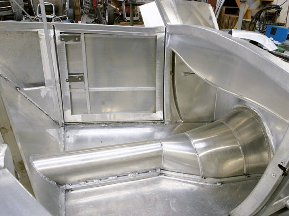 Et cela nous amène à une des dernières œuvres de Boydd : l’Aluma-Tub, qui est une synthèse à la fois de l’Aluma-Coupe et de l’Aluma-Truck. Ces trois “Aluma” représentant la “tri-puissance en aluminium” sur lequel Boyd et son équipe ont commencé à travailler au début des années ’90, espérant ouvrir de nouvelles perspectives dans la conception des Hot-Rod’s. Il y a d’abord eu l’Aluma-Coupé, suivi 10 ans plus tard par l’Aluma-Truck et deux ans après l’Aluma-Tub. Puisque succès engendre succès, Boyd comptait sur plusieurs des mêmes membres de l’équipe de l’Aluma-Coupe et Truck pour travailler sur l’Aluma-Tub.
