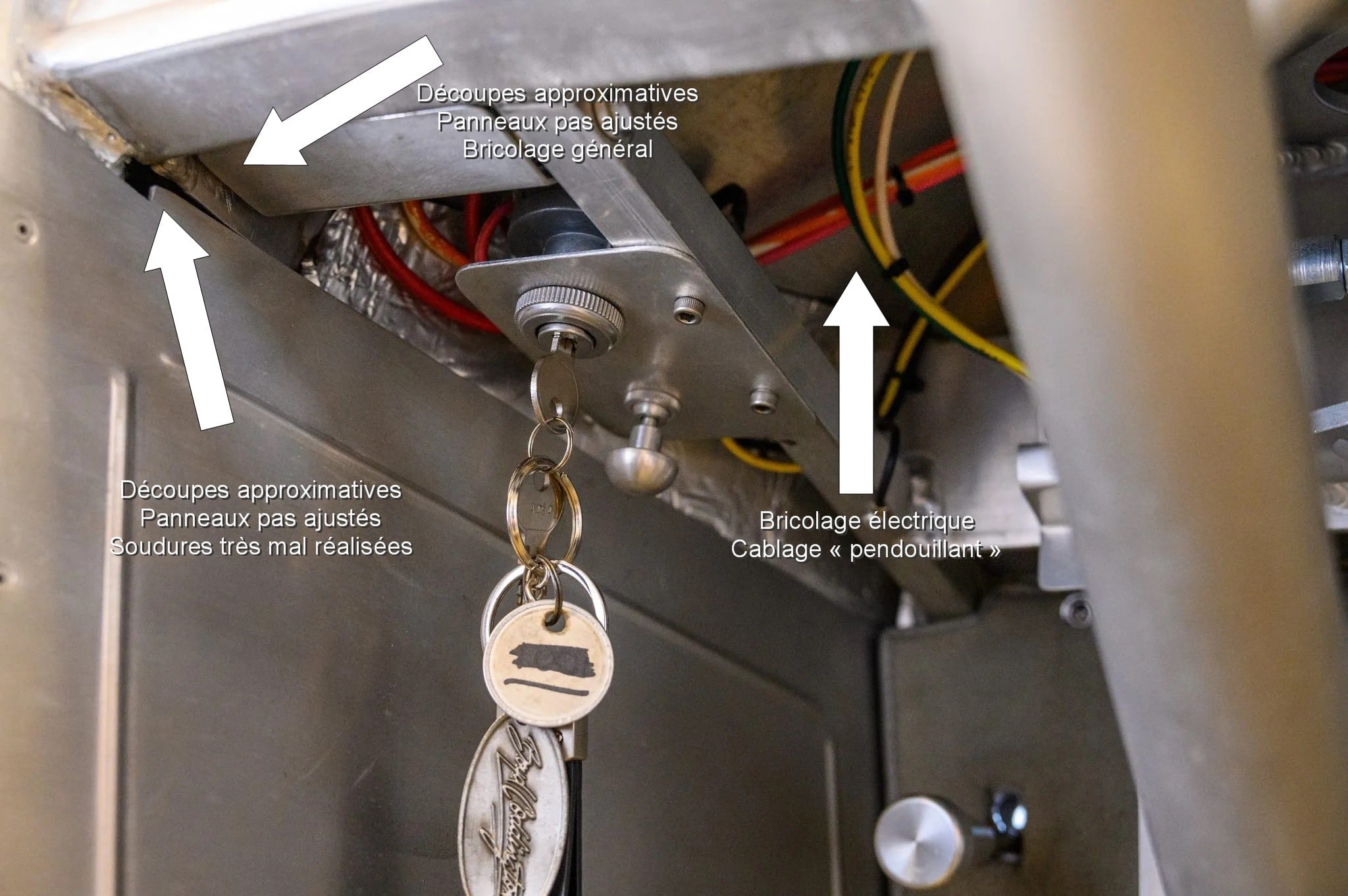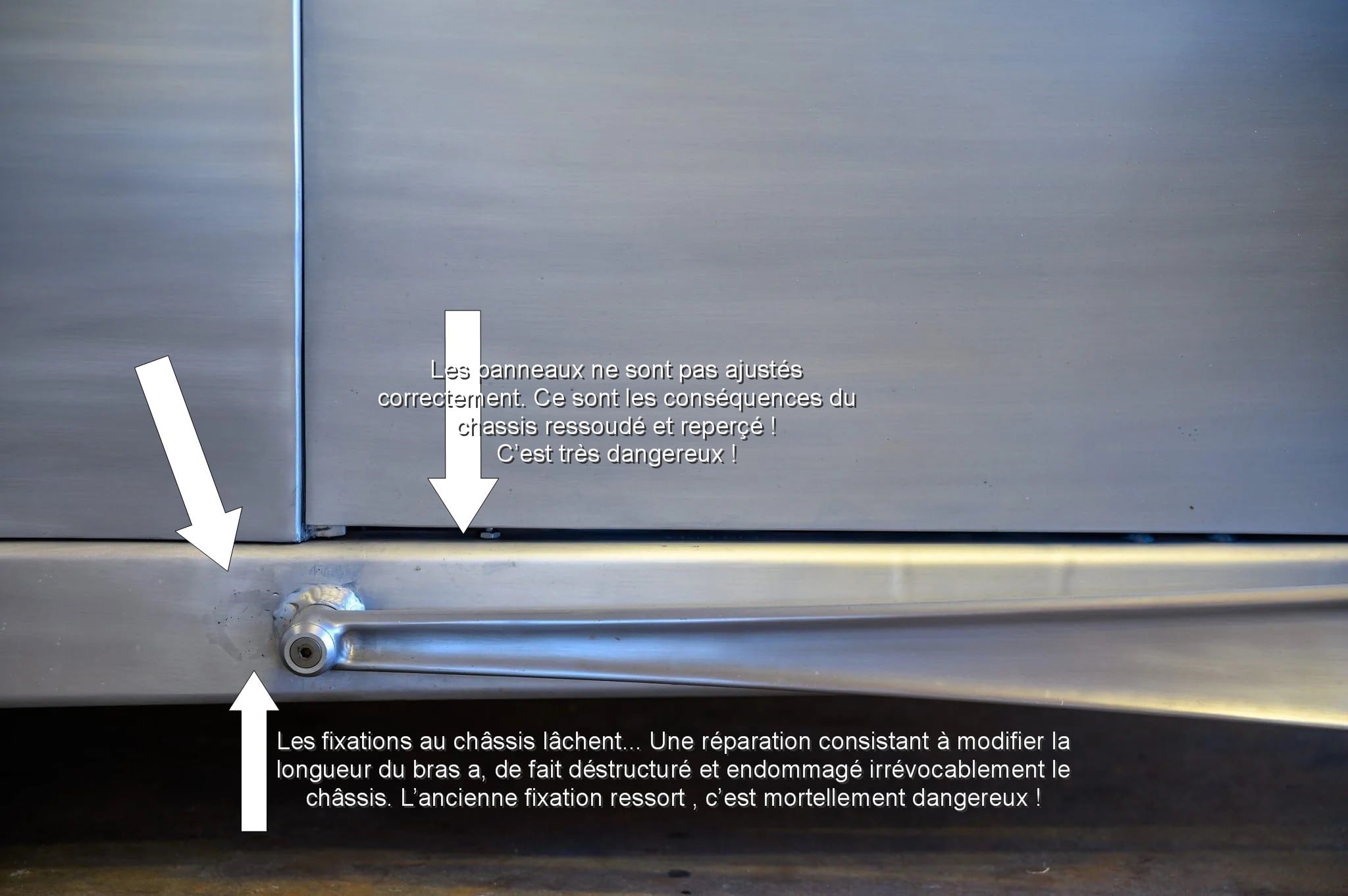 Second coup de poignard dans le dos des fanatiques de Boydd Coddingtton, après savoir que “Le Maître” pouvait s’accaparer de la création d’autres, se rendre compte que la finition était assez loin de la perfection, particulièrement les détails, jointures, soudures et aussi plus particulièrement une détérioration des points de construction.va suffire à se rendre compte que la tromperie n’est jamais loin des louanges…. Il suffit de regarder divers éléments repris sur ces photos pour s’apercevoir que c’est pas loin du misérable… Indigne de la réputation de Boydd Coddington.