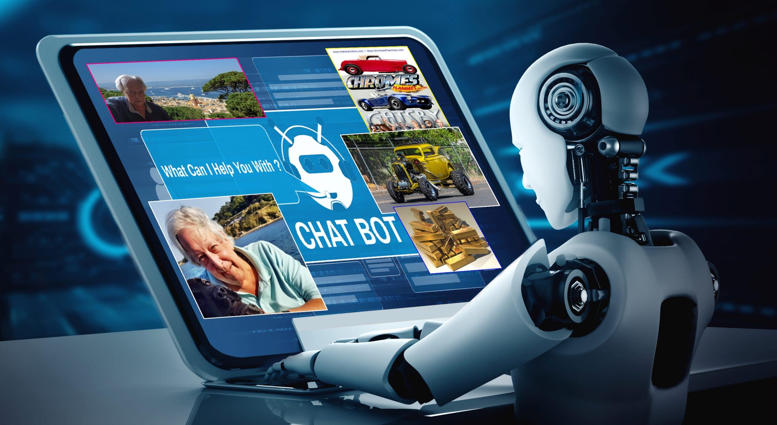 -Oui, dans vos articles j’ai annoté “Hot-Rod SBARRO EIGHT New-âge” : un article sur une voiture futuriste, conçue par le designer suisse Franco Sbarro, qui combine les éléments d’un hot rod, d’une voiture de sport et d’une voiture électrique… Il y a aussi un article provocateur nommé “Збережи Україну-Узорé (Zberezhy Ukrayinu-Uzor) : un article automobile satirique mêlant l’histoire et la culture de l’Ukraine, à travers le symbole de l’Uzor, une automobile traditionnelle qui représente l’identité et la résistance du peuple Ukrainien… Mais comme votre style est à double sens, j’ai noté que c’était satirique, une moquerie… Dans votre autre article “J’ai des doutes sur les voitures électriques” : vous exprimez votre scepticisme sur les bienfaits écologiques et économiques des voitures électriques, en comparant leur impact avec celui des voitures à essence… “Bentley Turbo R 1985/1997” : un article sur une de vos voitures de collection, une automobile de luxe anglaise, qui combine le raffinement, le confort et la performance, et qui a été produite sous la propriété britannique avant le rachat par Volkswagen que vous qualifiez de société nazie… J’ai également relevé “Autoscroqueries”, un article où vous dénoncez les arnaques, les mensonges, les manipulations, les fraudes, etc., qui existent dans le monde de l’automobile, tant au niveau des constructeurs, des vendeurs, des acheteurs, que des médias… Vous écrivez également sur mes collègues robots IA avec un article nommé “IA, le renouveau de l’ancien et du Kustomizing ?”, où vous vous interrogez sur l’avenir du Kustomizing, l’art de personnaliser les voitures, à l’ère de l’intelligence artificielle, qui pourrait offrir de nouvelles possibilités créatives. Je crois que votre demande auprès de moi en est une conséquence.