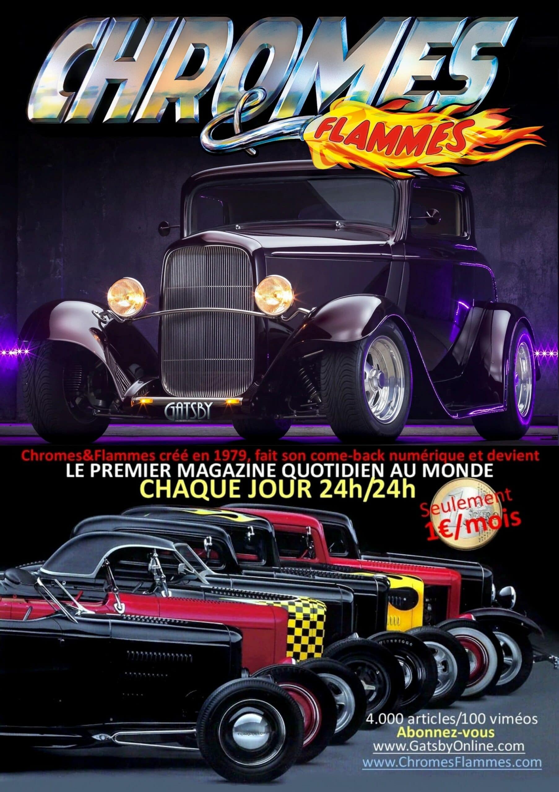 -Vous contez bien, mais ce n’est pas assez long pour en faire un film. Vous deviez me causer du Hot-Rod puisque c’est le fond de mes titres Web : GatsbyOnline + ChromesFlammes. Une histoire trash si possible !