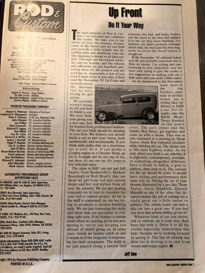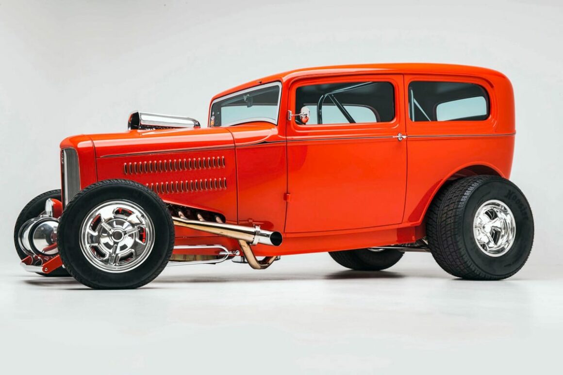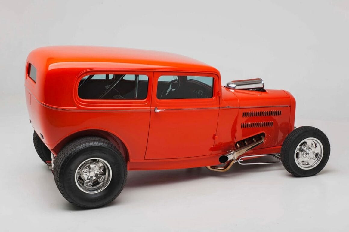 Pouvez-vous blâmer ce partisan de longue date des Goodguys qui a amassé une grande collection de Hot-Rods ? Le Coupé Deuce illustrant cet article, avait été construit par Roy Brizio et gagné la grande-finale du Hot-Rod de l’année 2019 ! Yeahhhhhhh ! Croyez-le ou non, cette Berline orange vif a été construite par Roy Brizio au milieu des années 90 ! C’était une voiture destinée pour la promo de la société B&M et conçue par Thom Taylor !