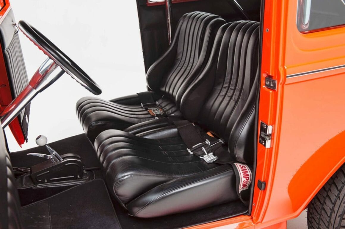 Son Big-bloc 512ci a été construit par le légendaire Bill Mitchell et est alimenté par un 8-71 B&M Mega Blower. La peinture orange “Hémicuda” de Darrell Schneider met en valeur le coupé Deuce, tandis que l’intérieur est en cuir noir (sièges baquets), bien sûr. C’est un emballage dur et intemporel, peu importe l’année ! Ce n’est pas souvent qu’une opportunité comme celle-ci se présente pour l’acquérir, c’est comme si la foudre frappait deux fois à la même place.