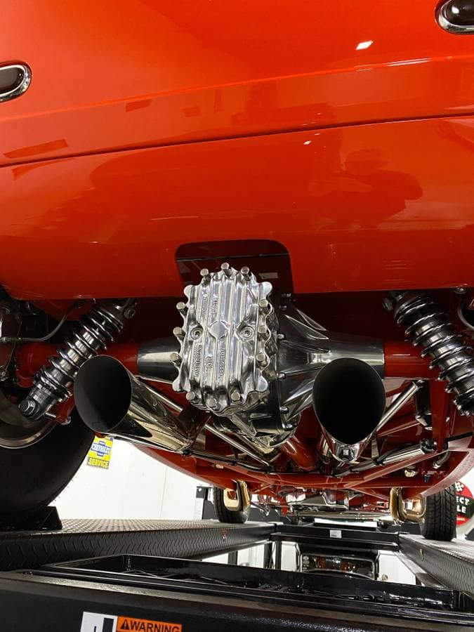 Il comporte un nombre inouï de modifications, d’altérations et de détails, c’en est absolument fou, mais atteste de la qualité, du temps et de l’argent dépensés pour le construire ! Cela commence avec un moteur V8 Chevrolet Big-Bloc Mark V 502ci construit sur mesure par Bill Mitchell, qui a été testé “au banc” à 700cv avant d’être positionné sur le châssis avec un compresseur B&M “Mega”, un système de courroie 3 pouces et deux carbs Holley quadruple corps.