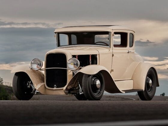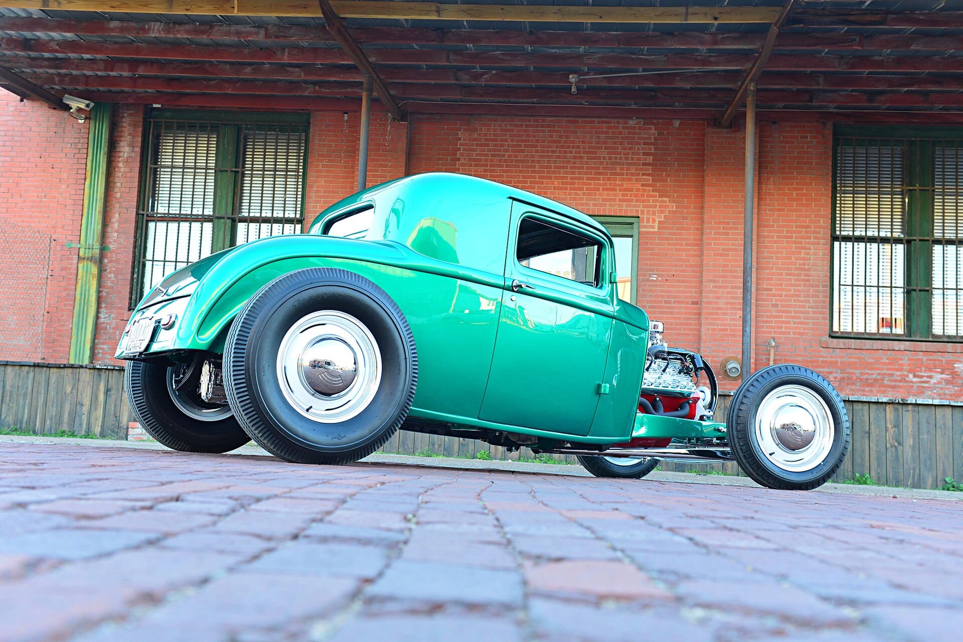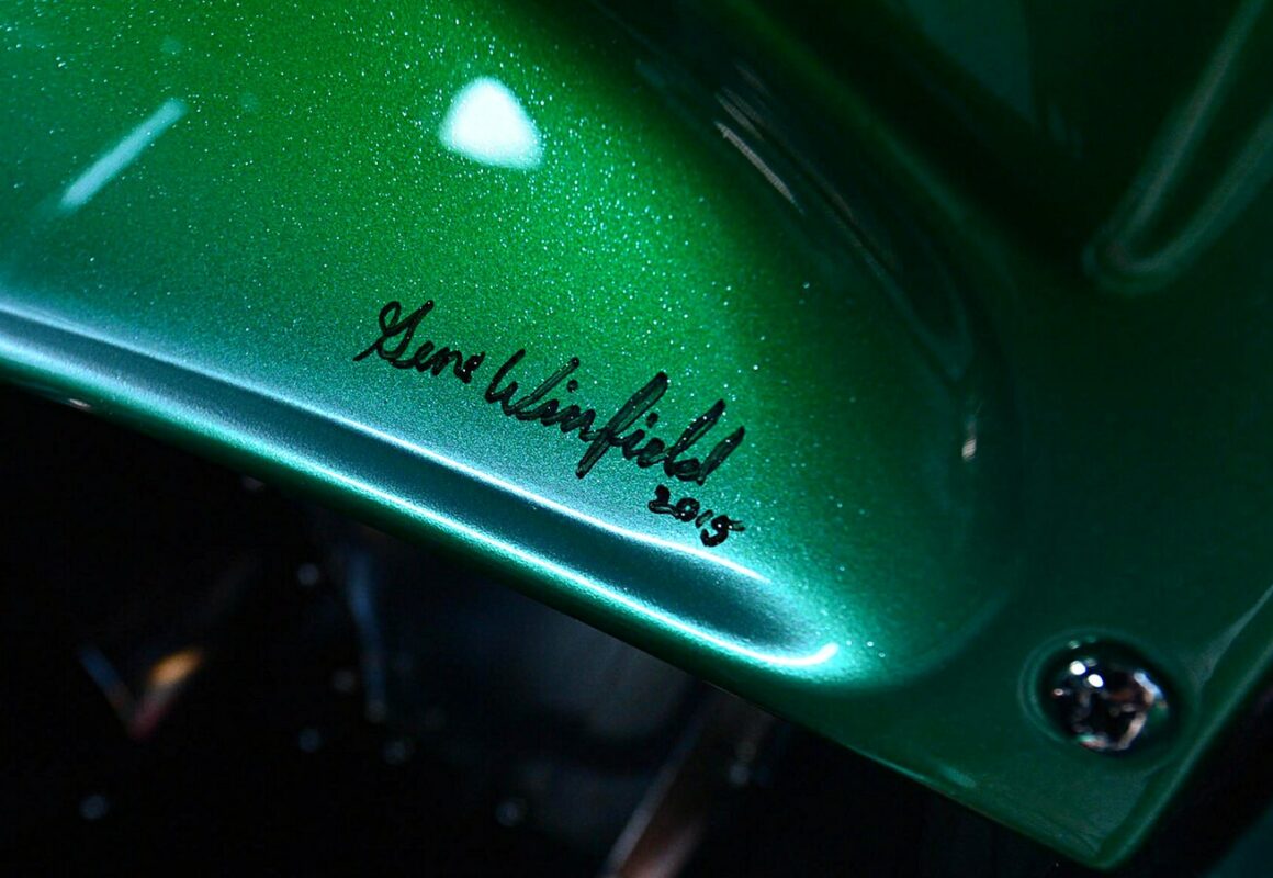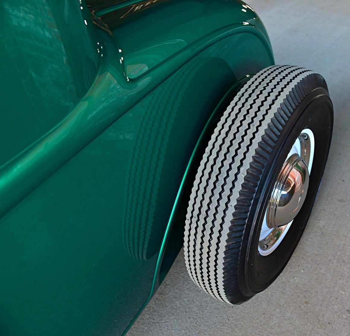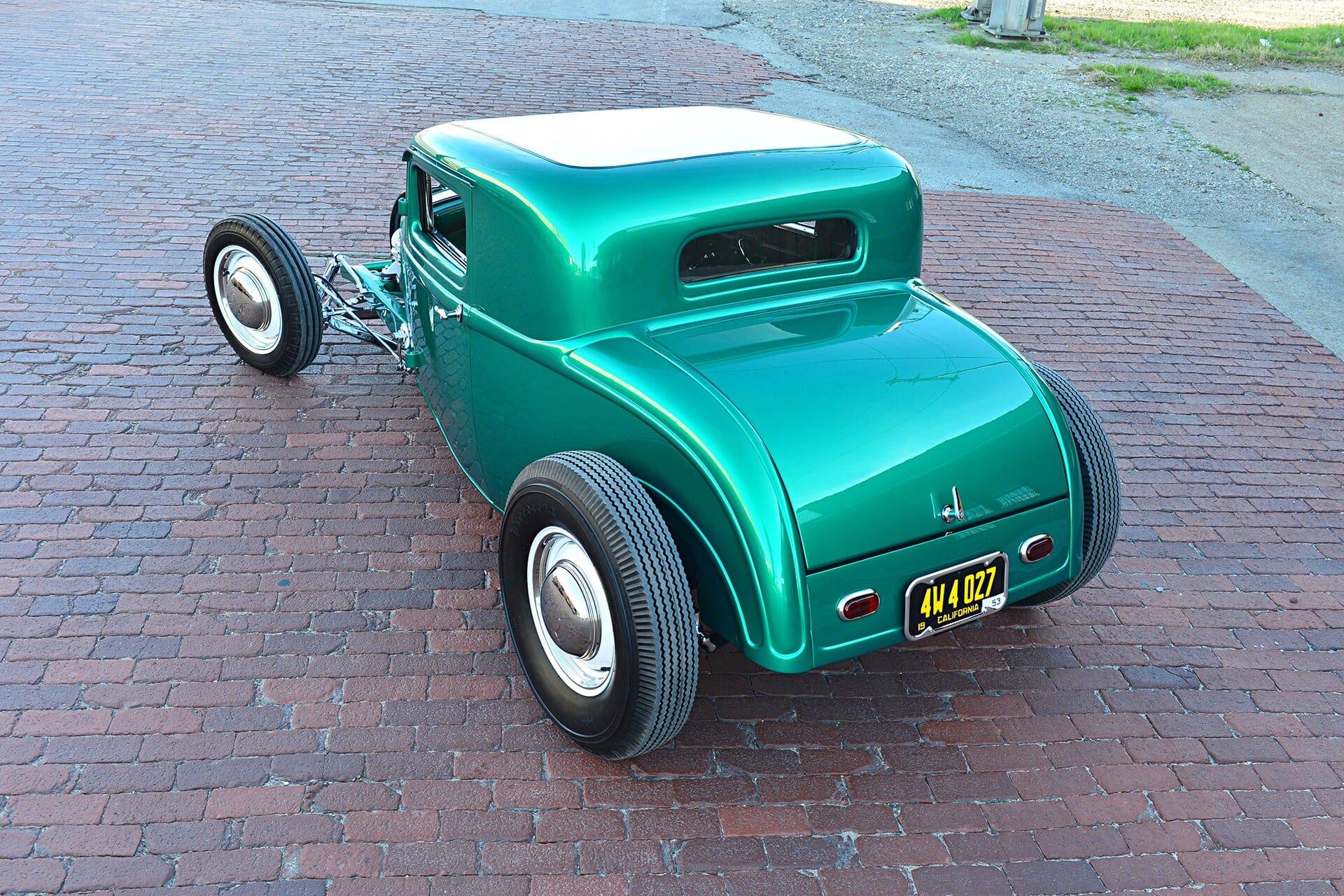 Lew Thompson a signé et donné à Eric Arnette le pistolet à peinture Binks, qu’il a utilisé pour peindre son ’32 en 1952. Incroyablement, Thompson n’avait pas utilisé le pistolet à peinture depuis ce travail de pulvérisation, et la peinture verte séchée est restée dans le pistolet. Arnette a conservé l’aspect original de la restauration, y compris le clapot de 3 pouces et le canal de 7 pouces du coupé. “Nous avons fait reproduire un radiateur tout comme Lew, donc en mettant le radiateur et les tuyaux, le ’32 peut être rendu utilisable dans la rue”. Ce qui sépare cette ’32 des versions actuelles, c’est l’histoire. Ce vieux Hot Rod était la construction de rêve d’un lycéen à la fin des années 1940, a vu des courses de nuit sur des routes secondaires du centre de la Californie et était un dragsters du week-end à Kingdon Dragstrip près de Lodi. Trouver et restaurer ce ’32 à ses racines vintage a été une expérience incroyable, a déclaré Eric…